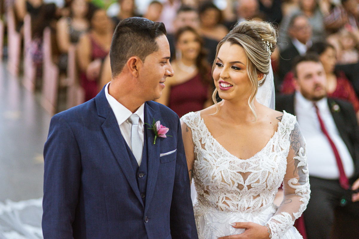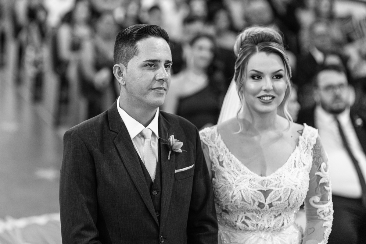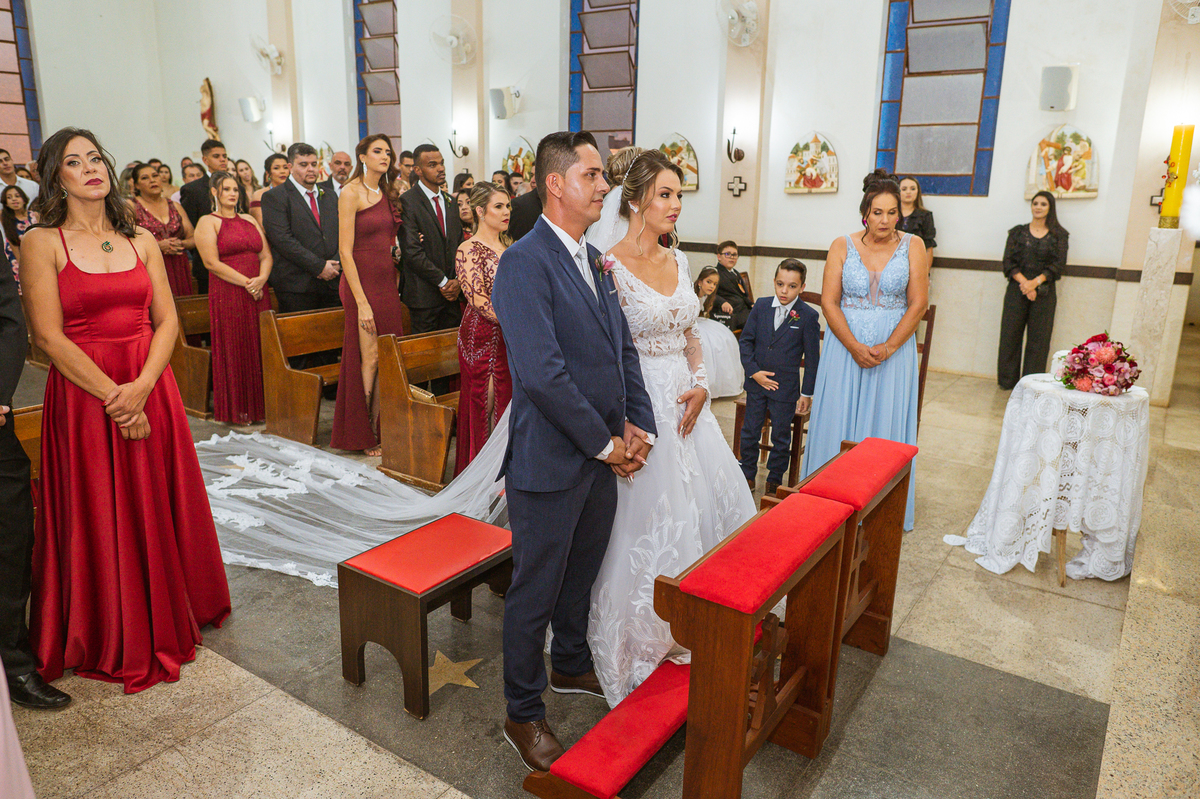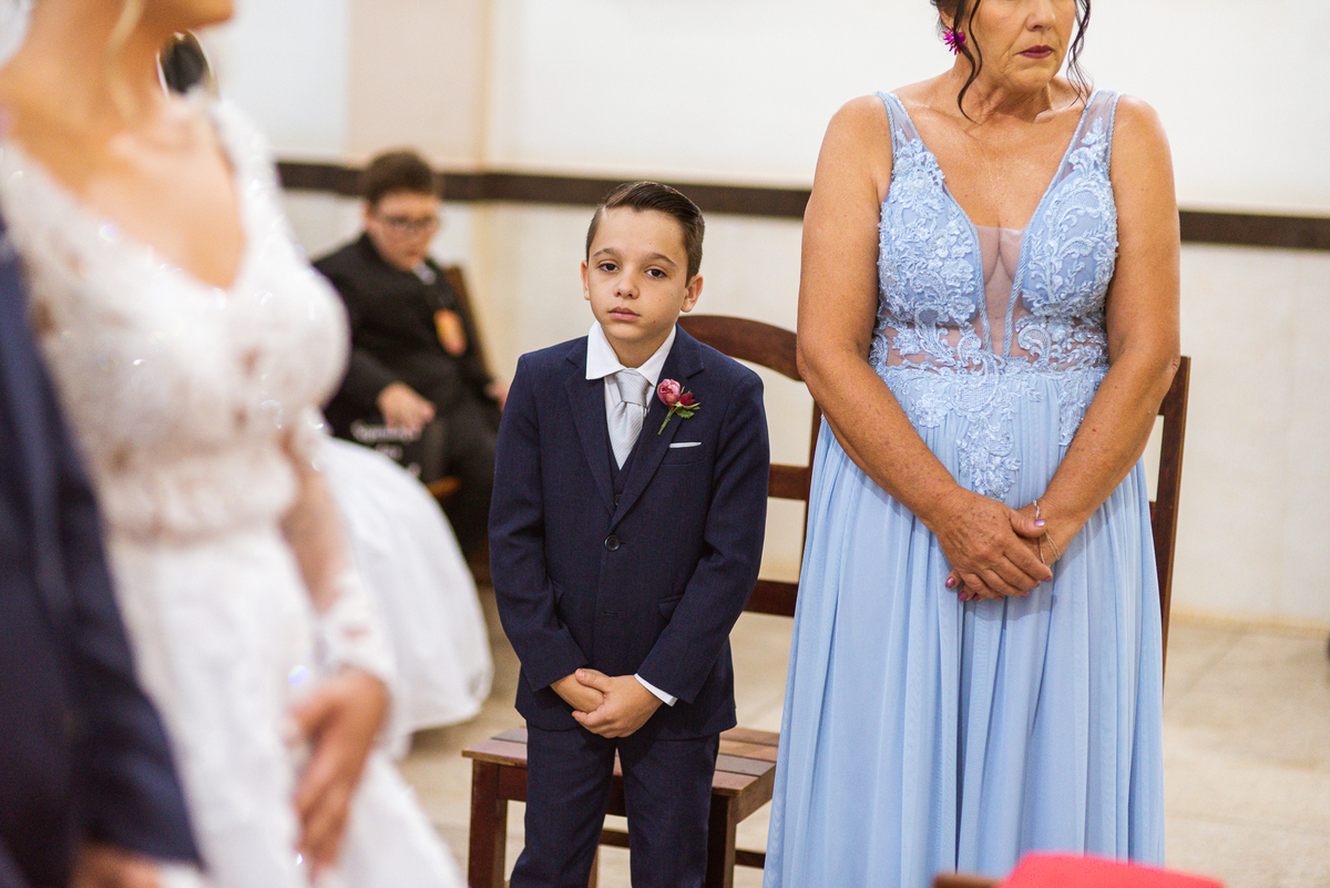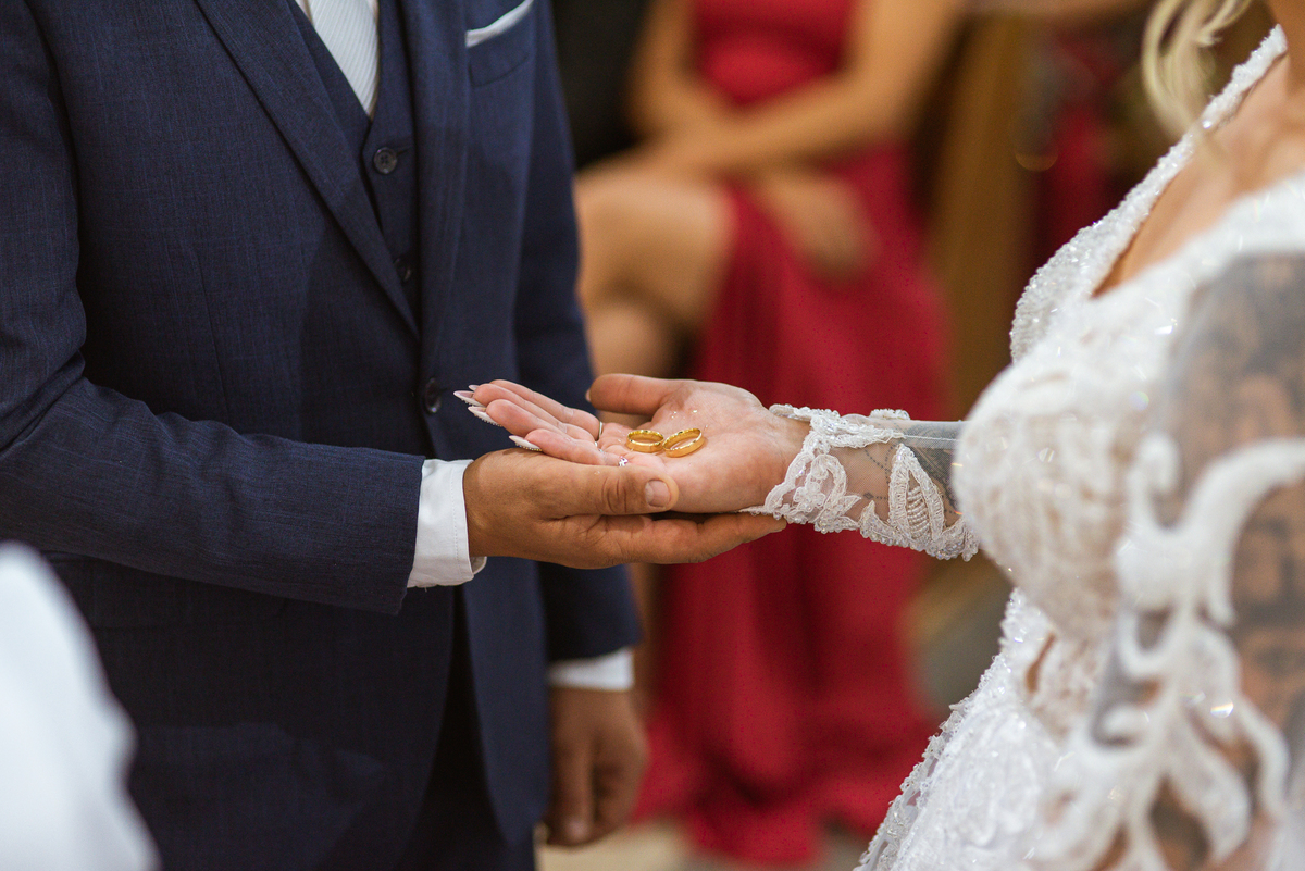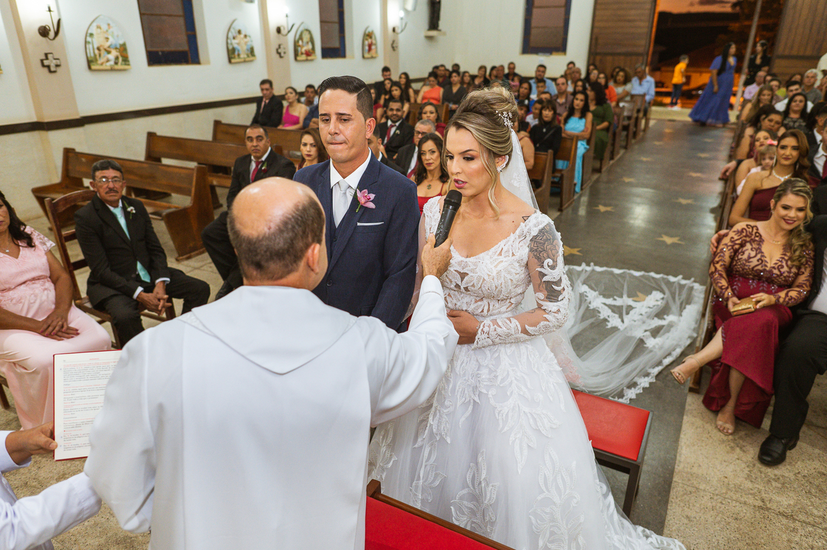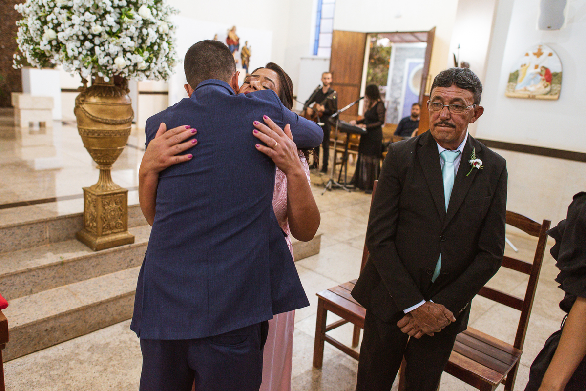 Bruna, agora de mãos dadas com seu filho, caminhou rumo ao encontro do seu noivo. Os dois caminharam lentamente, desfilando e curtindo aquele momento super especial. Agora, frente a frente com Edwards, ele fez questão de cumprimentar seu enteado, despedir-se dele e só depois receber a mão de sua noiva. Após um beijo respeitoso na testa, os dois caminharam juntinhos rumo ao altar, para receber ali a bênção de Deus sobre o casamento dos dois. A celebração foi rápida e edificante. Os noivos fizeram seus votos e juras de amor, tiveram as alianças abençoadas e também foram abençoados, trocaram as alianças e foram declarados casados perante Deus e as testemunhas que ali estavam.