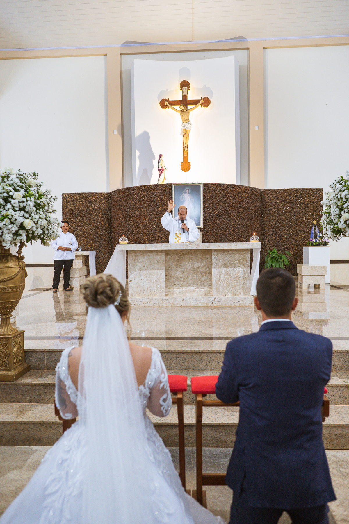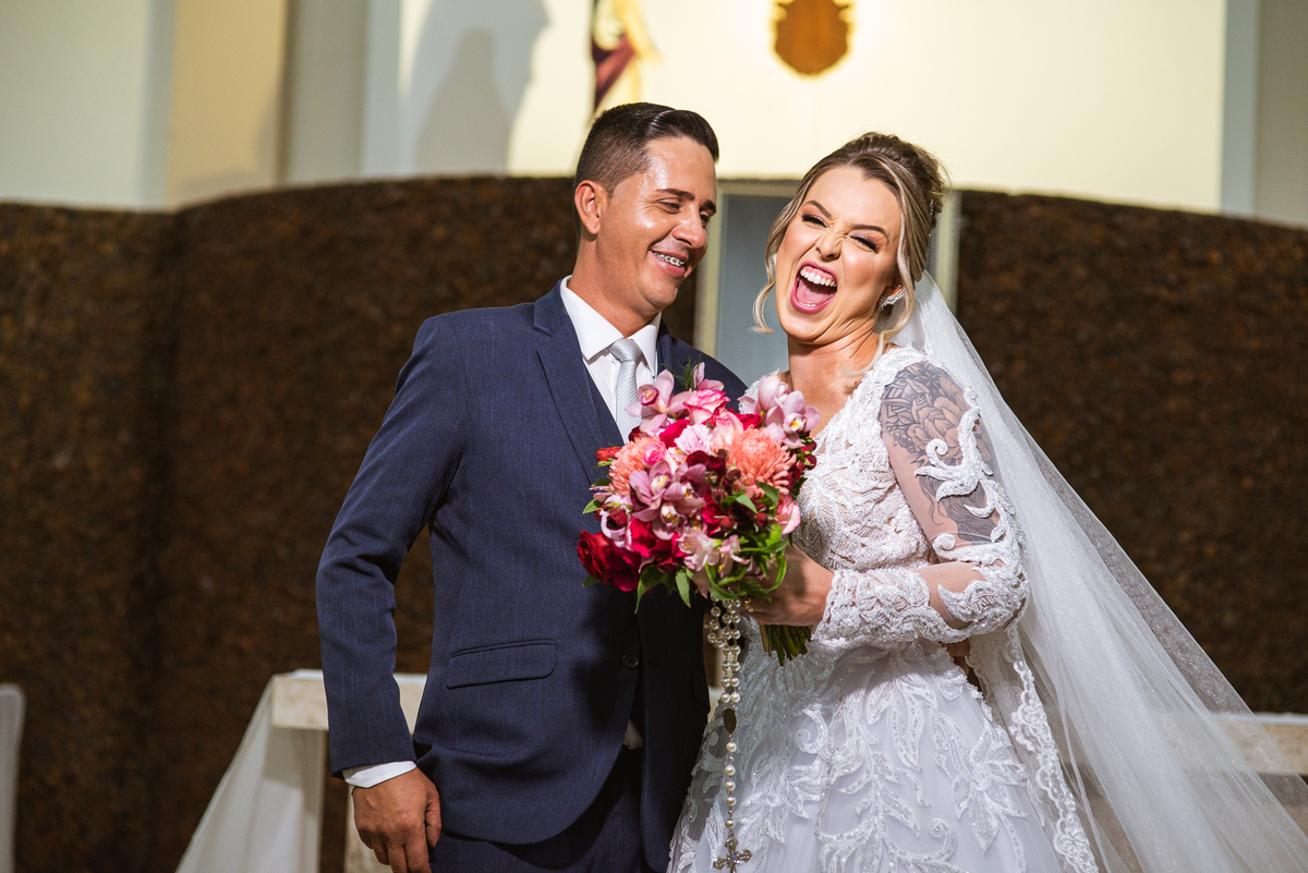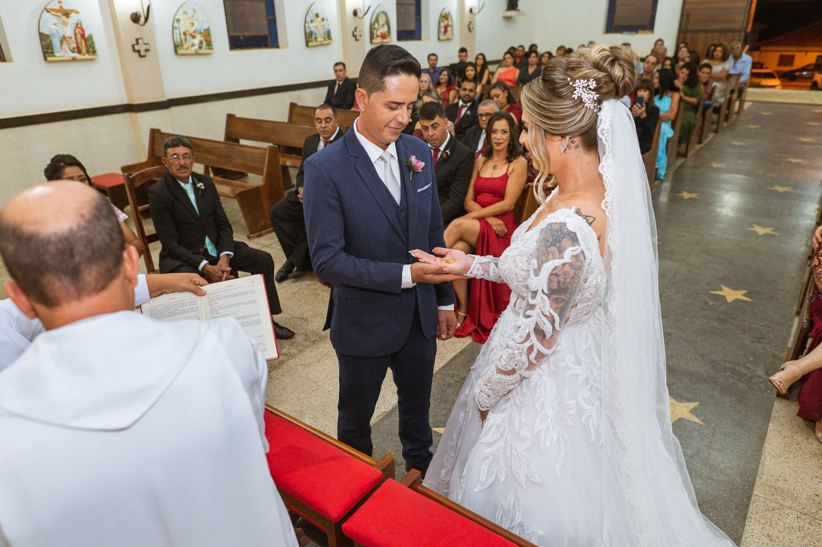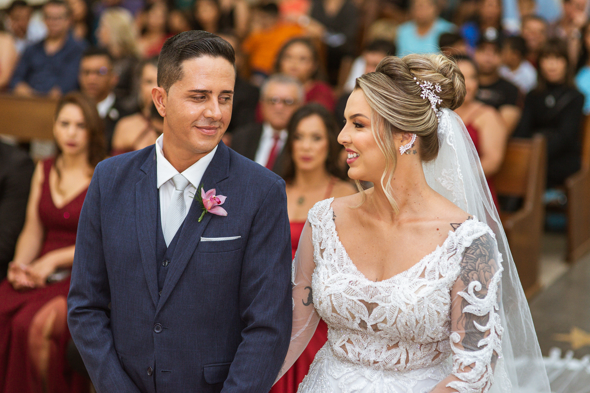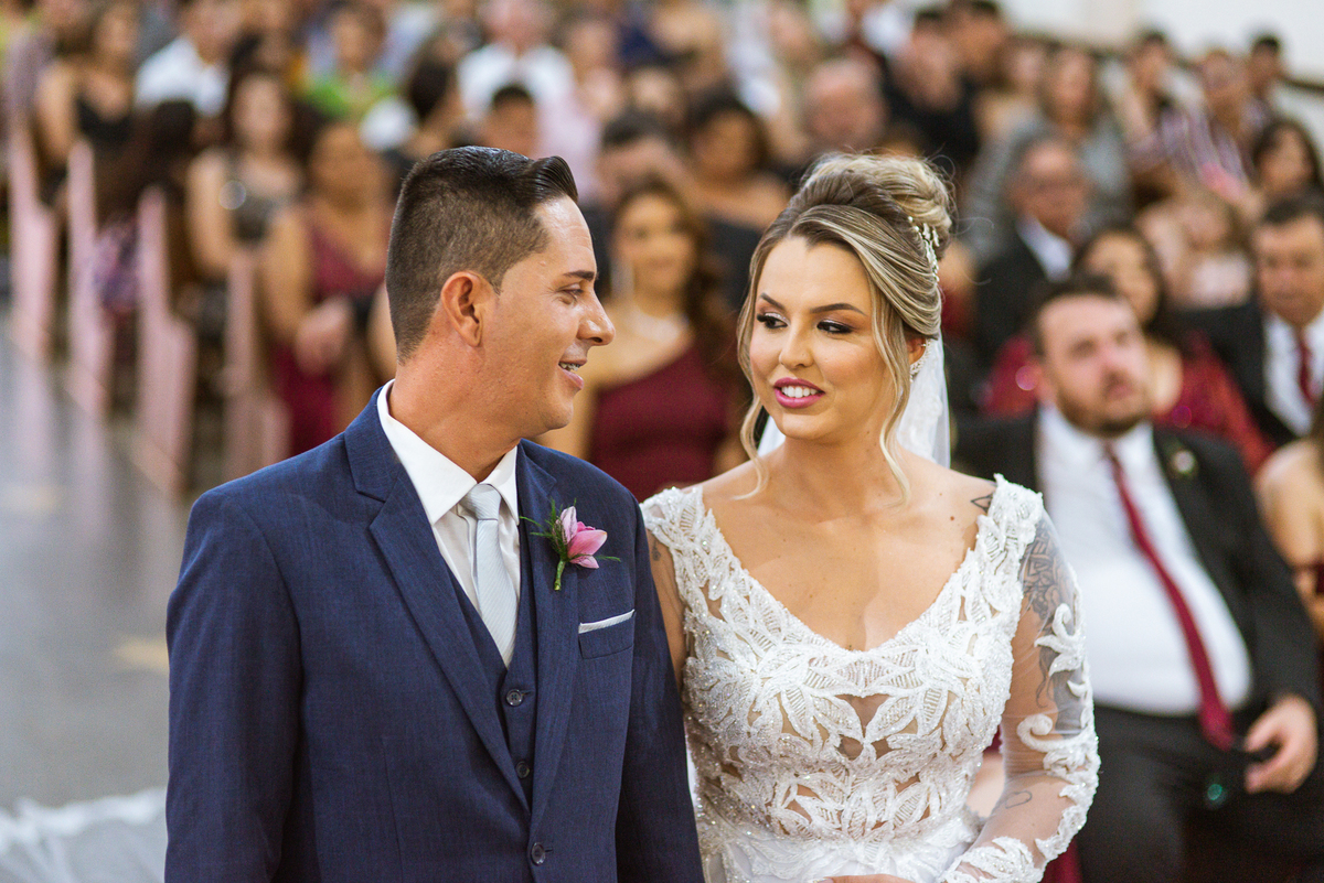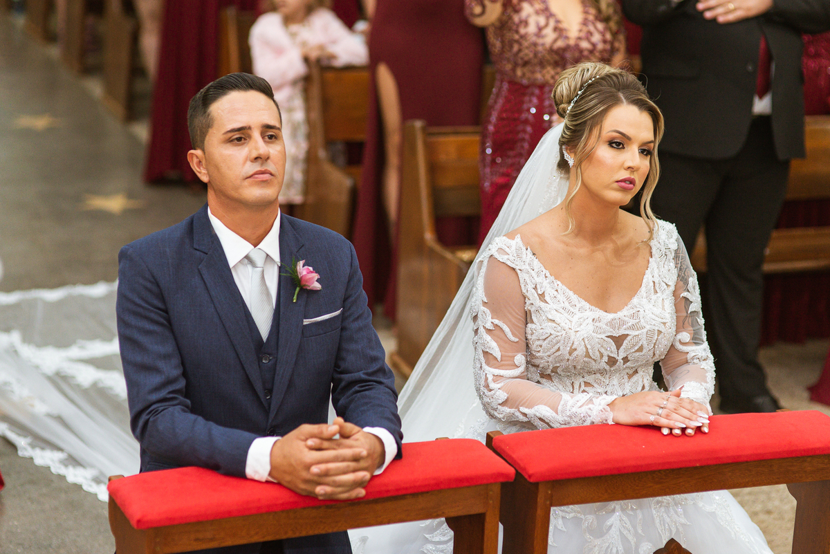 Bruna, agora de mãos dadas com seu filho, caminhou rumo ao encontro do seu noivo. Os dois caminharam lentamente, desfilando e curtindo aquele momento super especial. Agora, frente a frente com Edwards, ele fez questão de cumprimentar seu enteado, despedir-se dele e só depois receber a mão de sua noiva. Após um beijo respeitoso na testa, os dois caminharam juntinhos rumo ao altar, para receber ali a bênção de Deus sobre o casamento dos dois. A celebração foi rápida e edificante. Os noivos fizeram seus votos e juras de amor, tiveram as alianças abençoadas e também foram abençoados, trocaram as alianças e foram declarados casados perante Deus e as testemunhas que ali estavam.