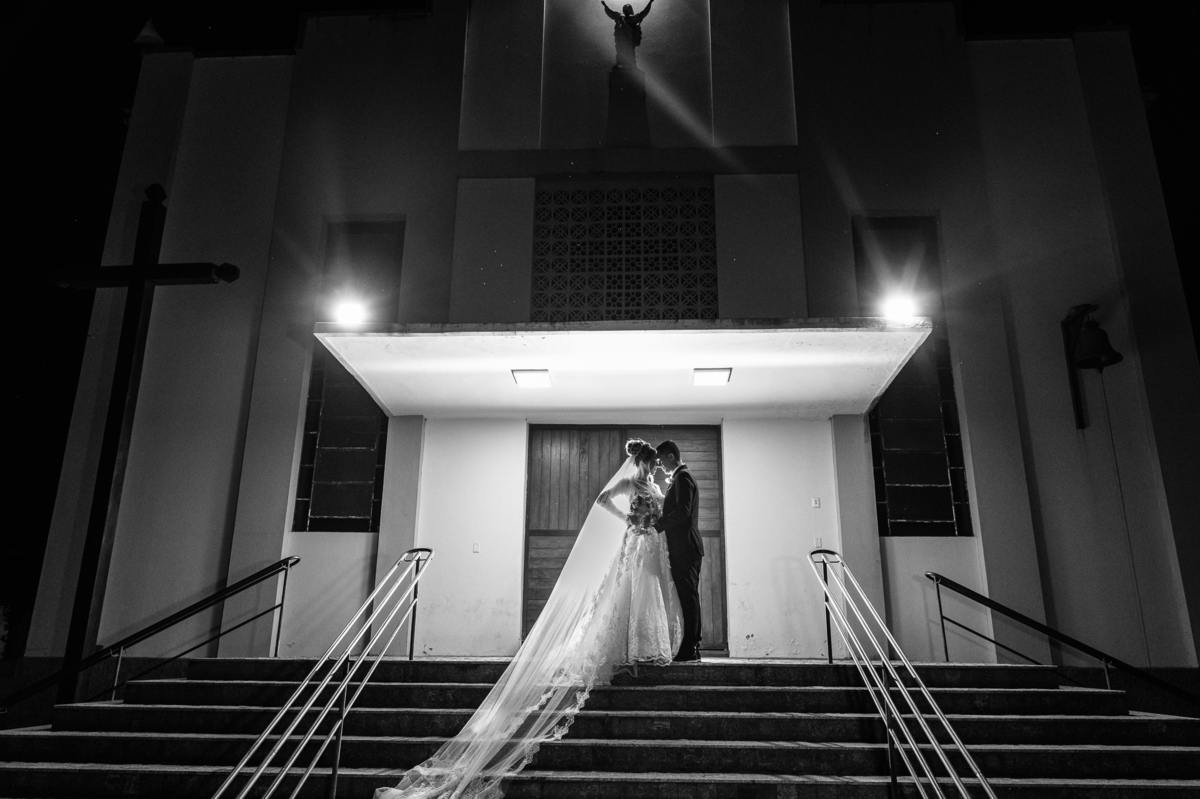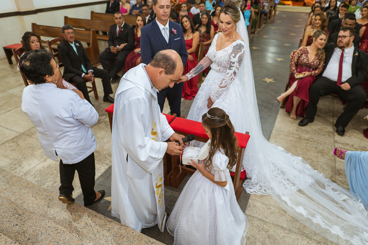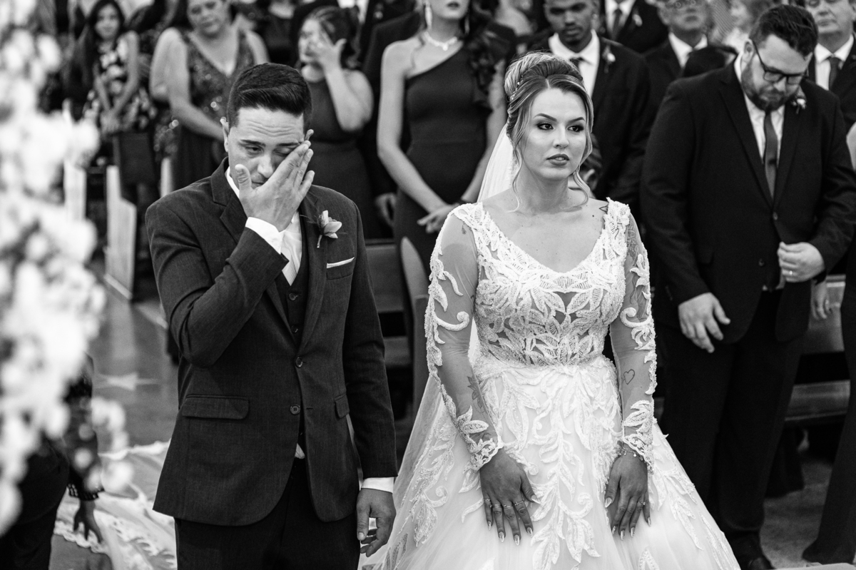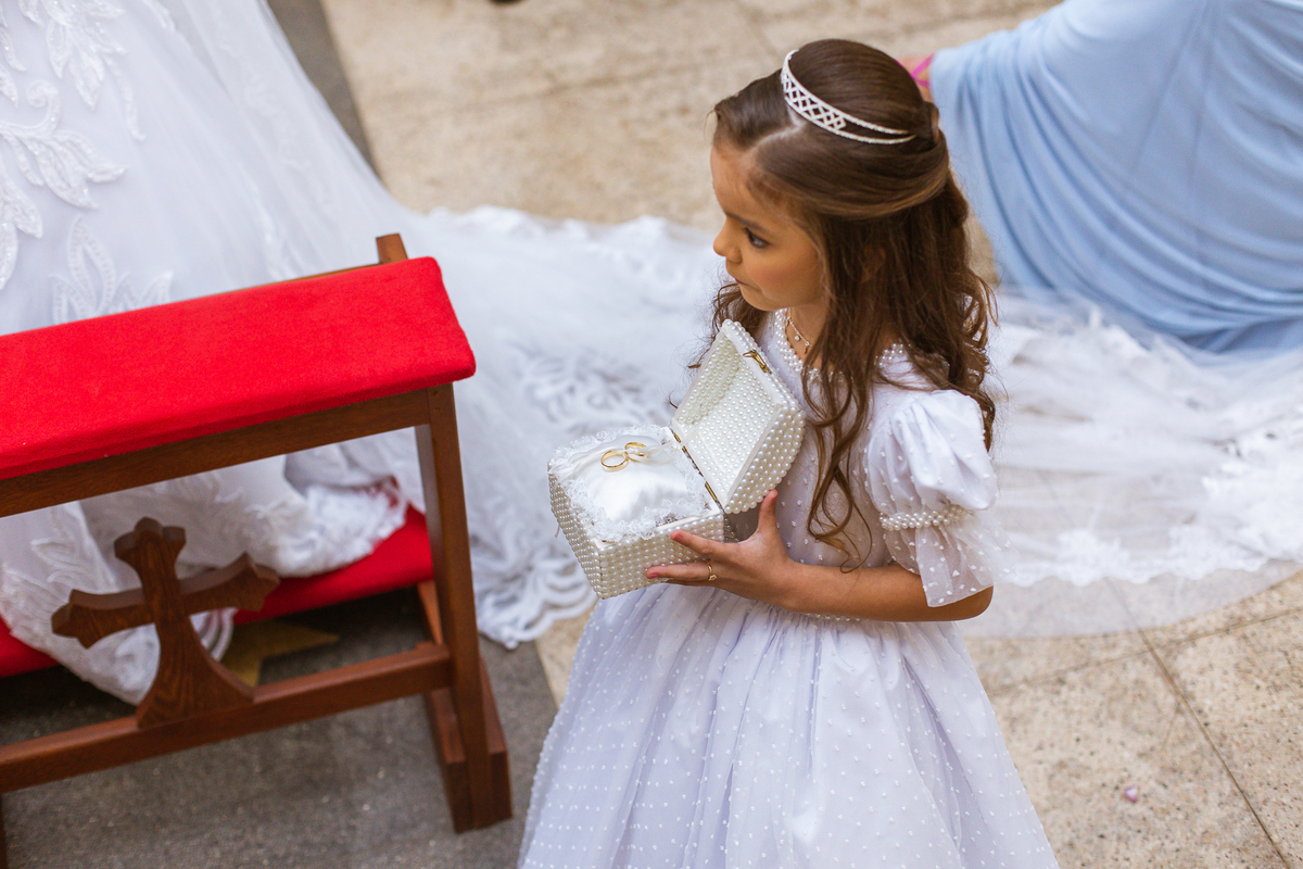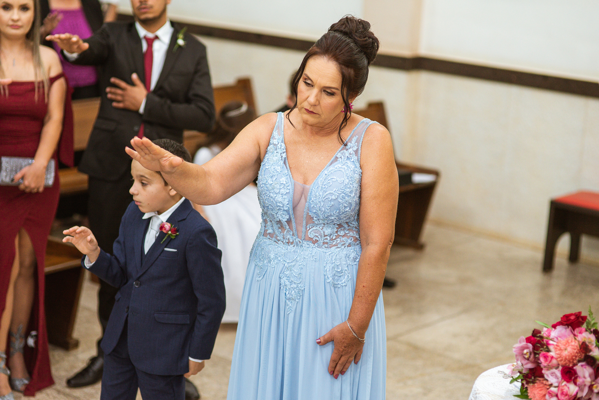 Bruna preparou uma homenagem linda para seu pai. Era surpresa pra todos. Enquanto o noivo entrava e os padrinhos iam se acomodando, os pajens também entraram. Quando as portas da Igreja se fecharam, ela organizou a surpresa. Com um balão em formato de coração e com a escrita "PAI" nele, as portas se abriram e ela diante de todos beijou o balão como se representasse ali a presença de seu Pai. Após o beijo, ela soltou o balão como forma de despedida e como se lá de cima ele estivesse olhando e sorrindo pra ela. Por mais singelo que possa parecer esse ato, ele representou muito e emocionou à todos os presentes, incluindo o fotógrafo. Quando virei pra olhar a reação do noivo, vi tantos rostos emocionados que mal poderia contar.