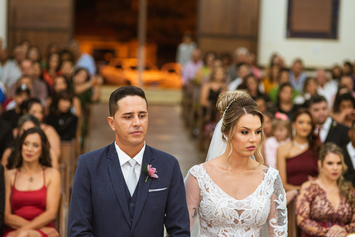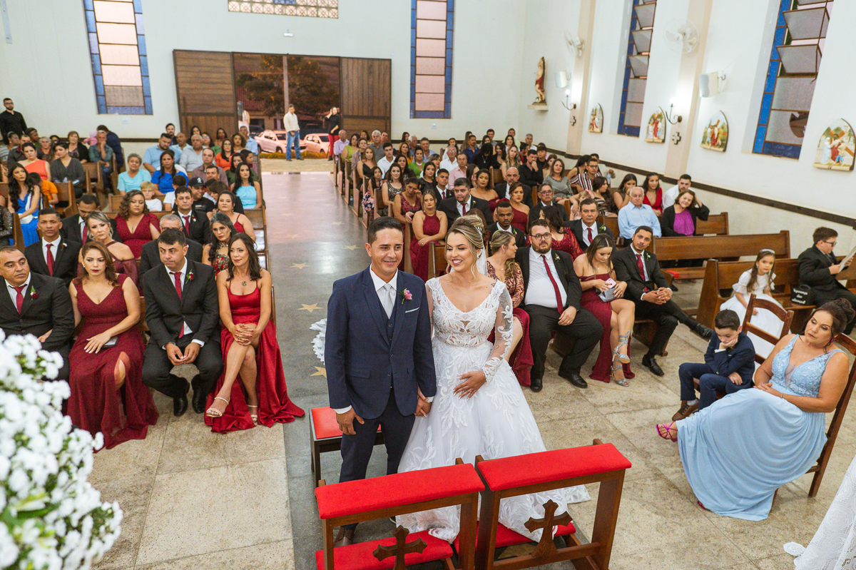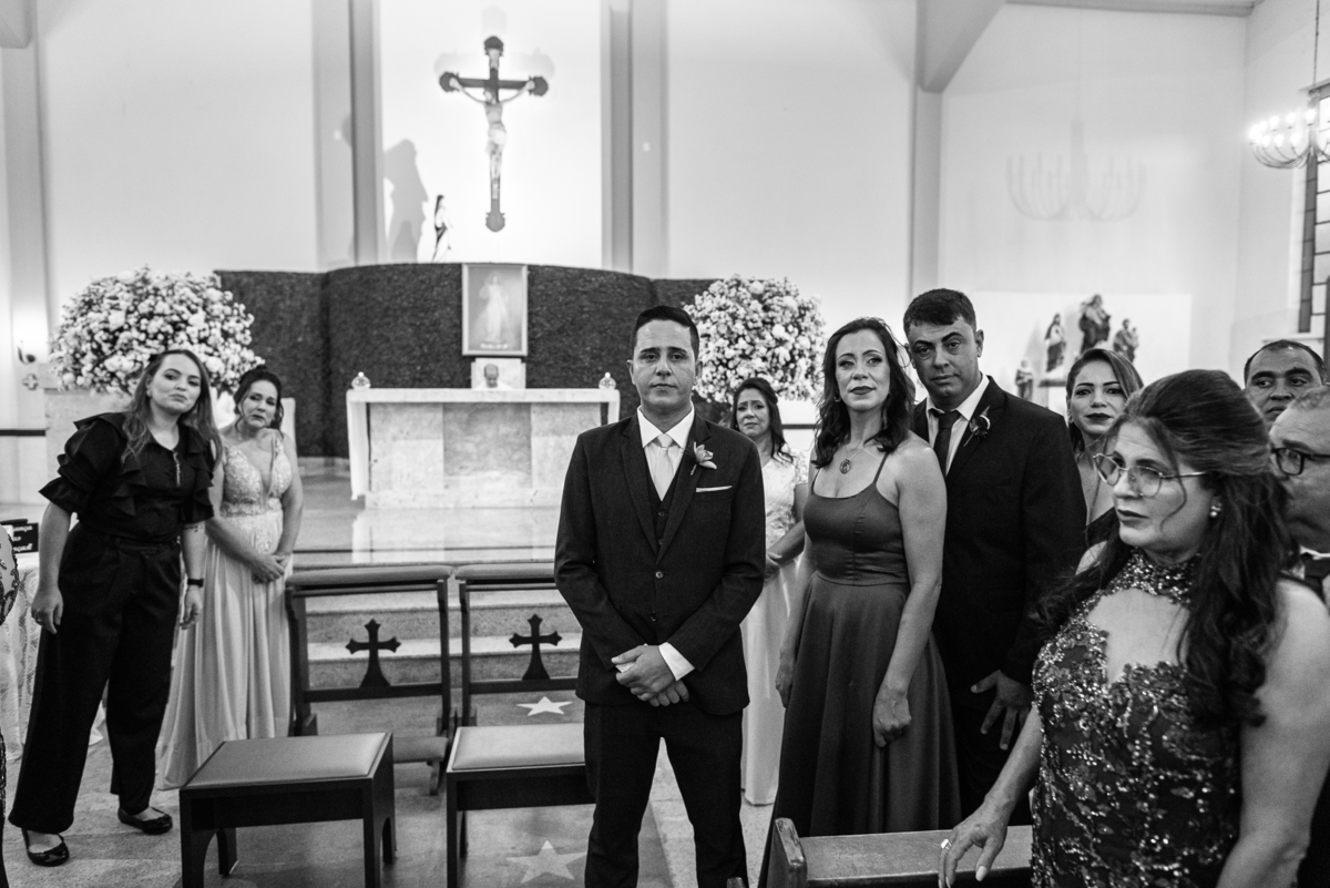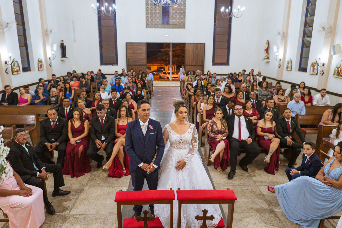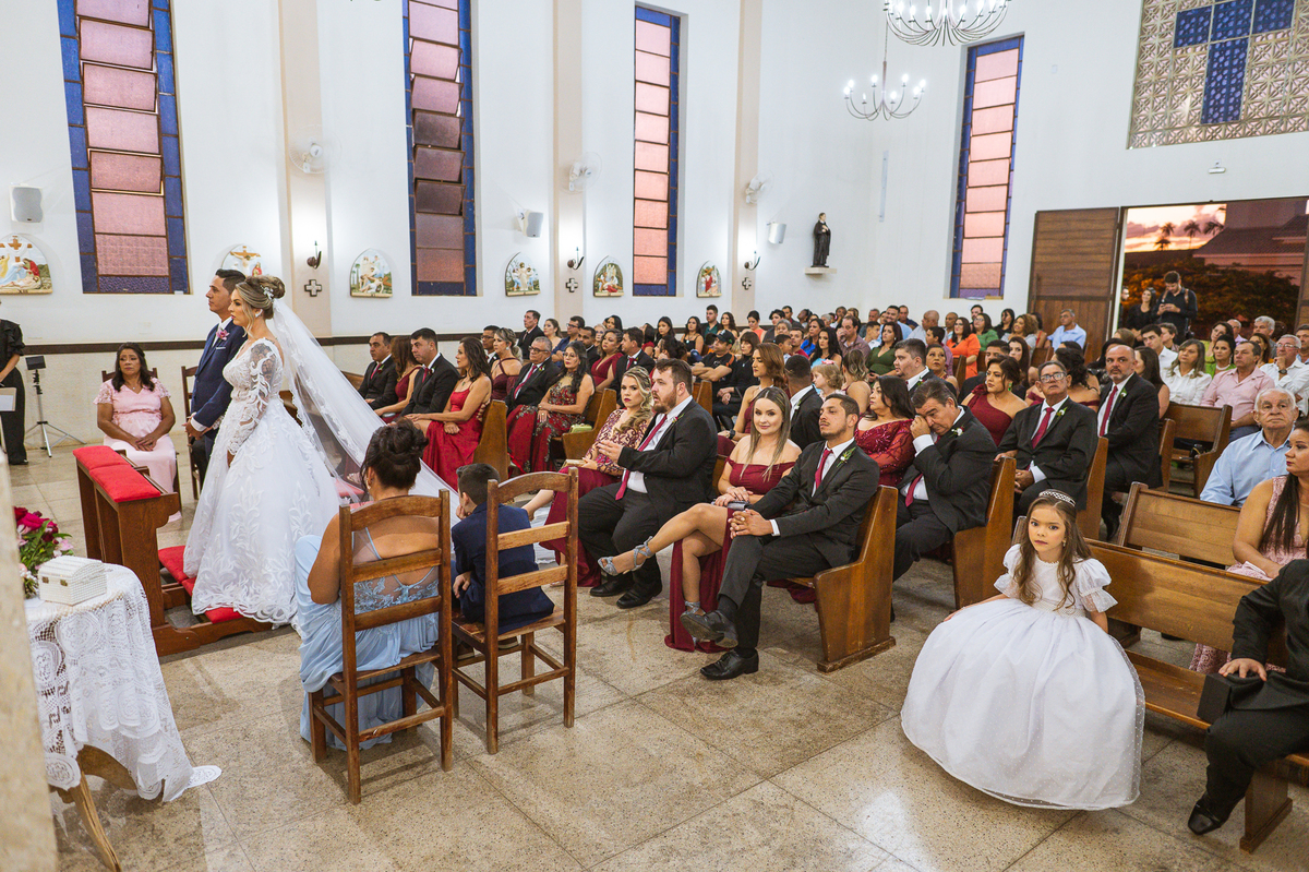 Tudo estava pronto, fizemos nossas fotografias de praxe e caprichando nos detalhes. Depois de tudo encerrado, partimos para Major Porto. A distância é de cerca de uma hora de carro, indo a uma velocidade razoável. Chegando lá, Edwards já estava na porta da Igreja com a ansiedade daquele jeito. Os padrinhos e convidados foram chegando e aos poucos o clima de casamento pairava no ar. A Igrejinha linda e charmosa foi decorada para receber os noivos e seus pais. Fizemos algumas fotos com o noivo e logo a fila dos padrinhos já estava sendo organizada pela equipe do cerimonial Sara Moreira. Fizemos as fotos da noiva no carro e partimos para a cerimônia.