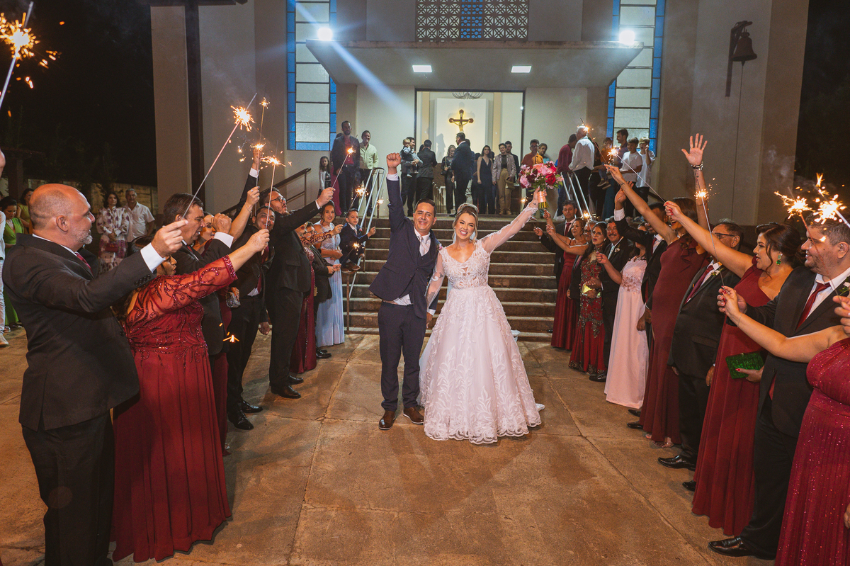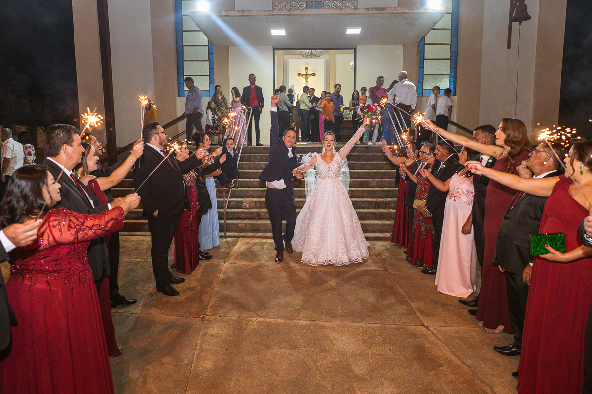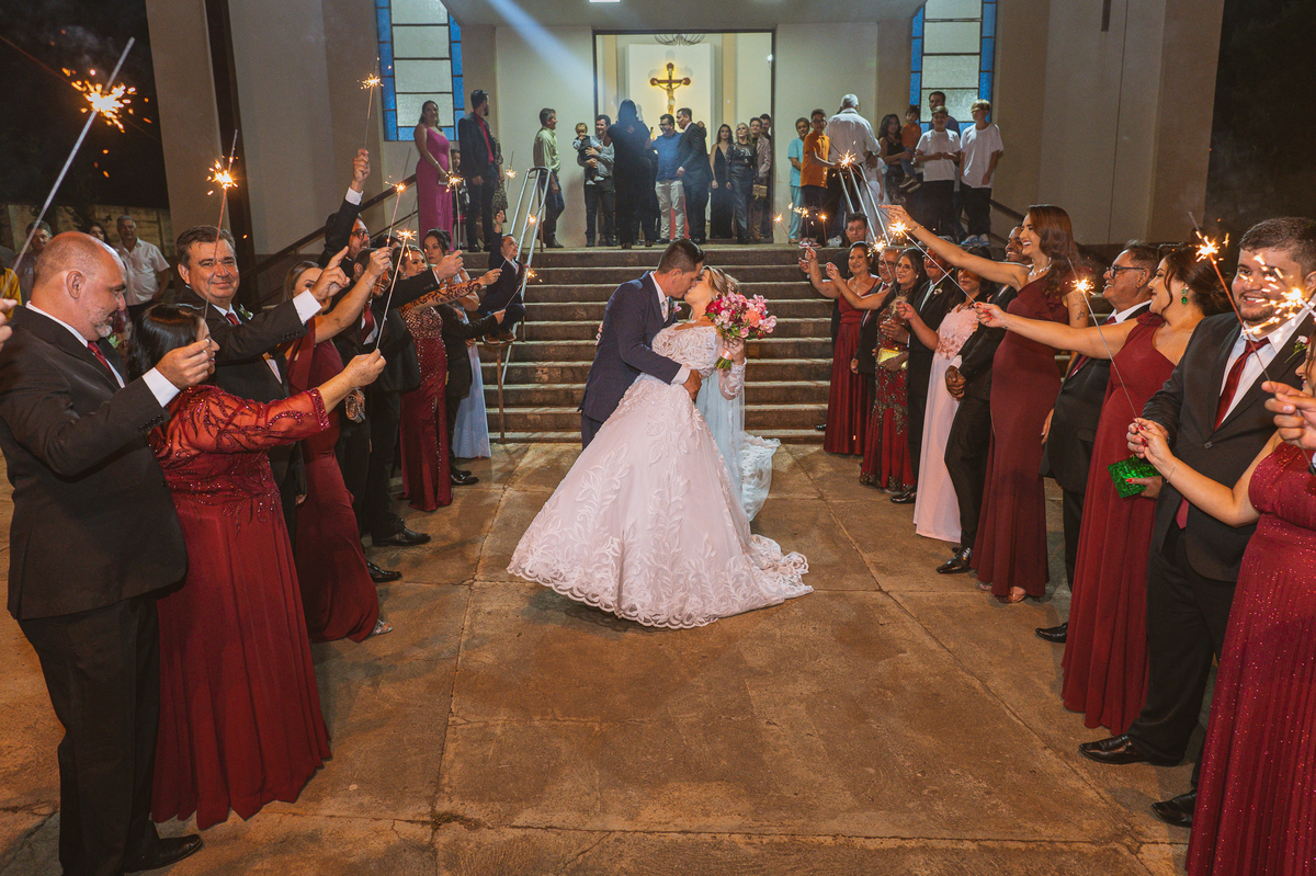 Fizemos nossas tradicionais fotos no altar e finalizamos a celebração. Os noivos foram recebidos com muita festa e os sparkles do lado de fora da Igreja. Com aquele beijo de cinema, Edwards selou aquele momento pra sempre e os padrinhos festejaram muito com os recém-casados. Fizemos algumas fotos com os padrinhos na porta da Igreja e partimos para a recepção. Lá chegando, a decoração enchia os olhos de quem quer que fosse. Flores e vasos ornamentaram todo o local. O bolo estava envolvo em tantos docinhos que acho que sobraram alguns logo após a festa. A pista de dança estava super chamativa e o bar com os drinks especiais estava a todo vapor.