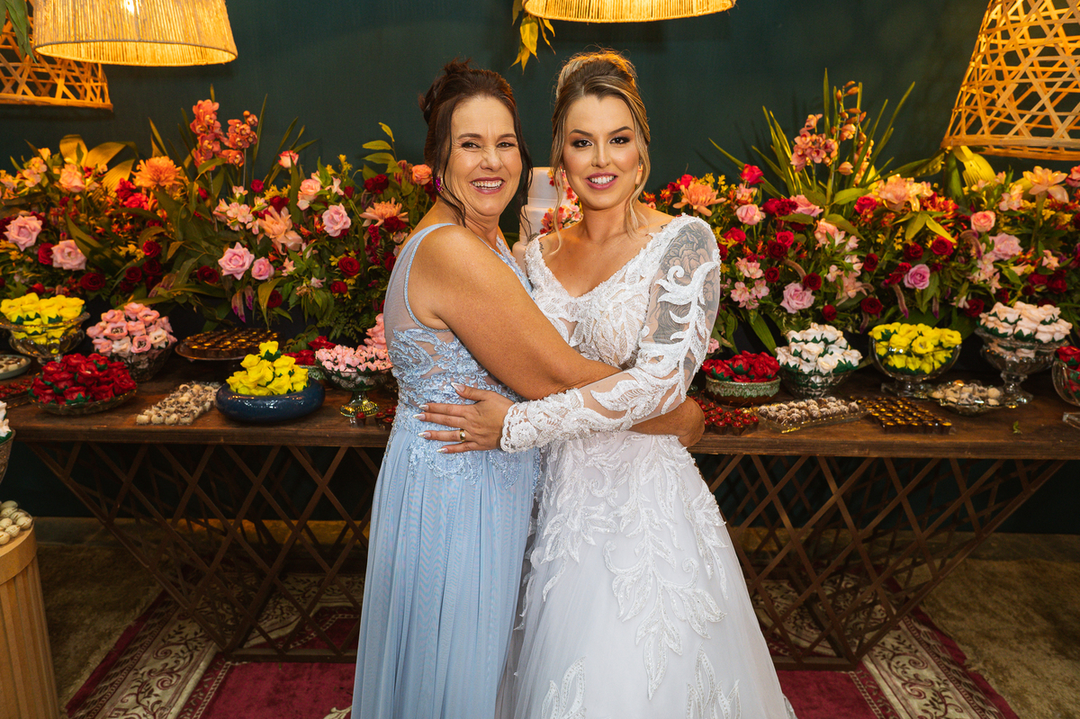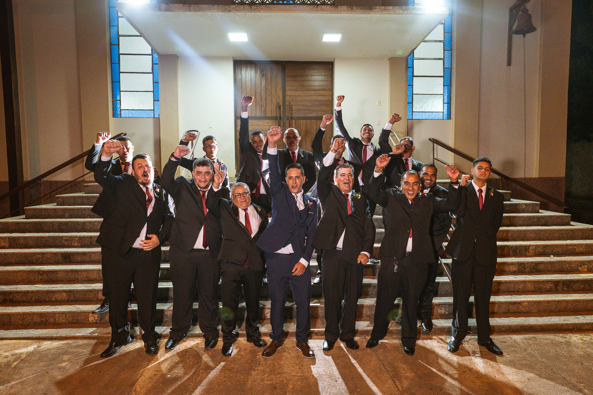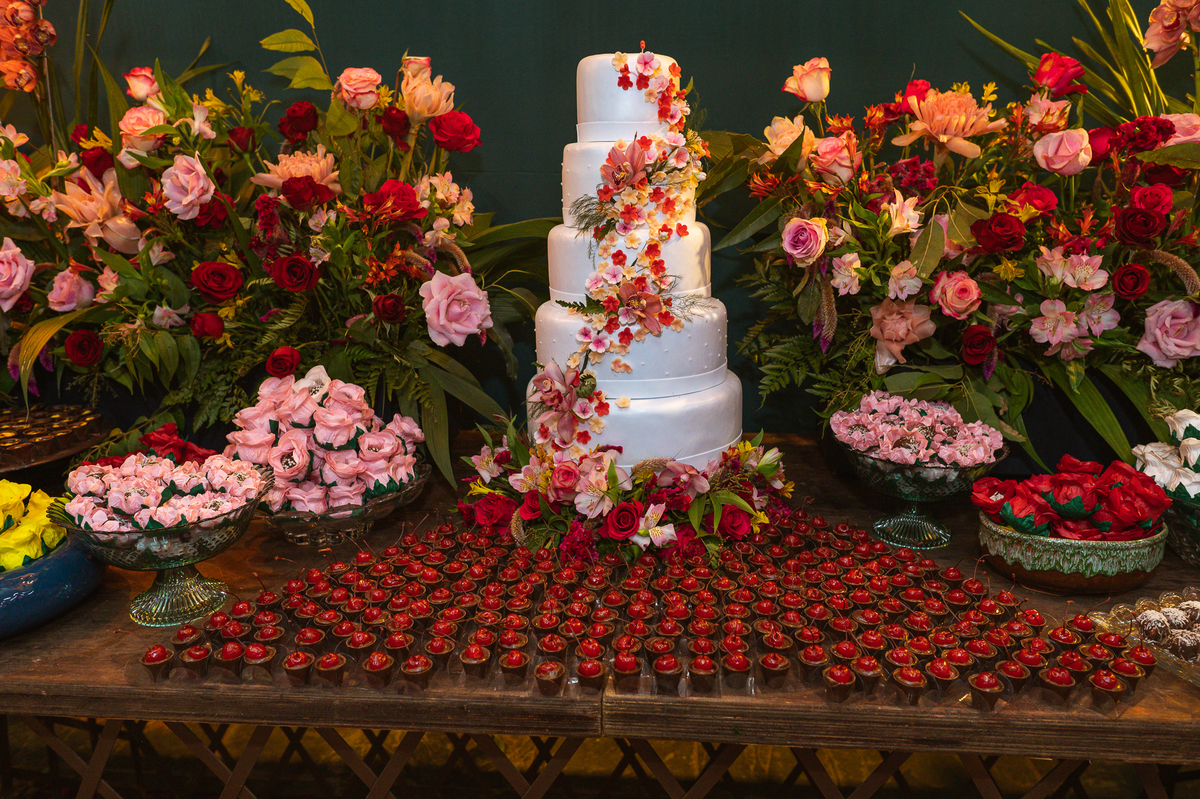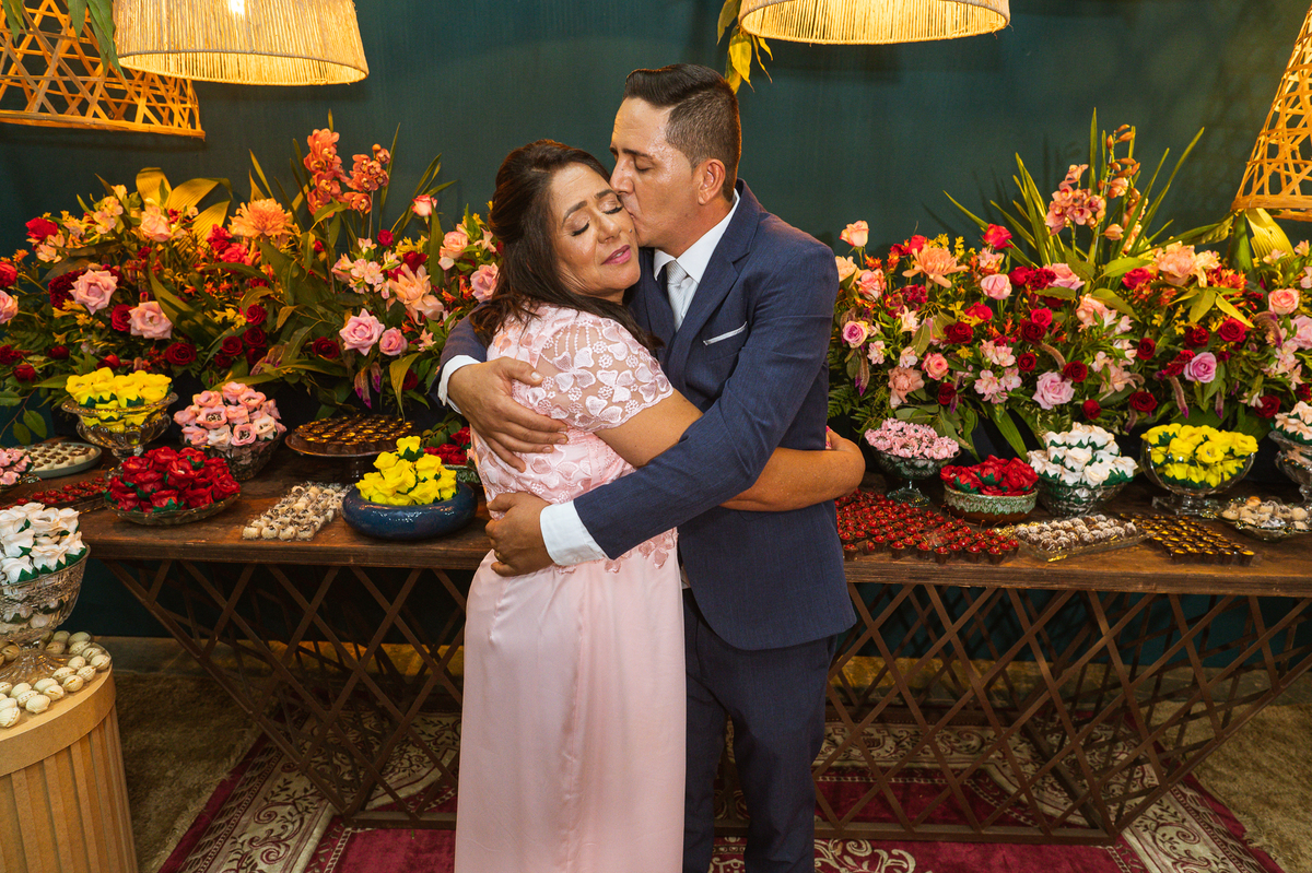 Fizemos nossas tradicionais fotos no altar e finalizamos a celebração. Os noivos foram recebidos com muita festa e os sparkles do lado de fora da Igreja. Com aquele beijo de cinema, Edwards selou aquele momento pra sempre e os padrinhos festejaram muito com os recém-casados. Fizemos algumas fotos com os padrinhos na porta da Igreja e partimos para a recepção. Lá chegando, a decoração enchia os olhos de quem quer que fosse. Flores e vasos ornamentaram todo o local. O bolo estava envolvo em tantos docinhos que acho que sobraram alguns logo após a festa. A pista de dança estava super chamativa e o bar com os drinks especiais estava a todo vapor.