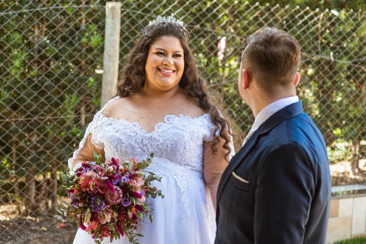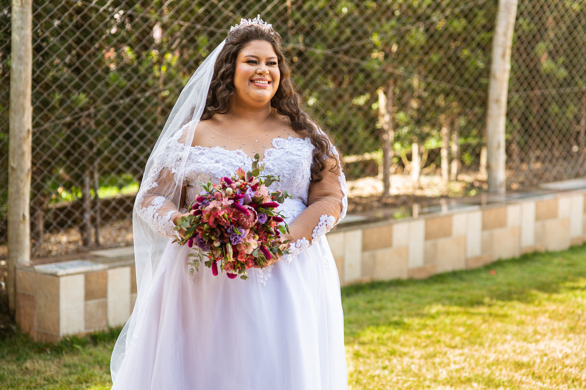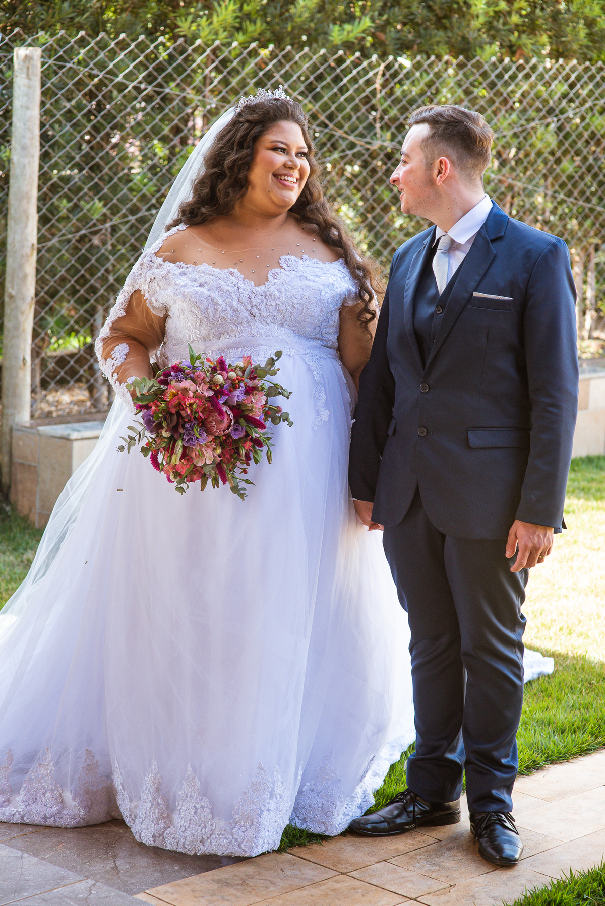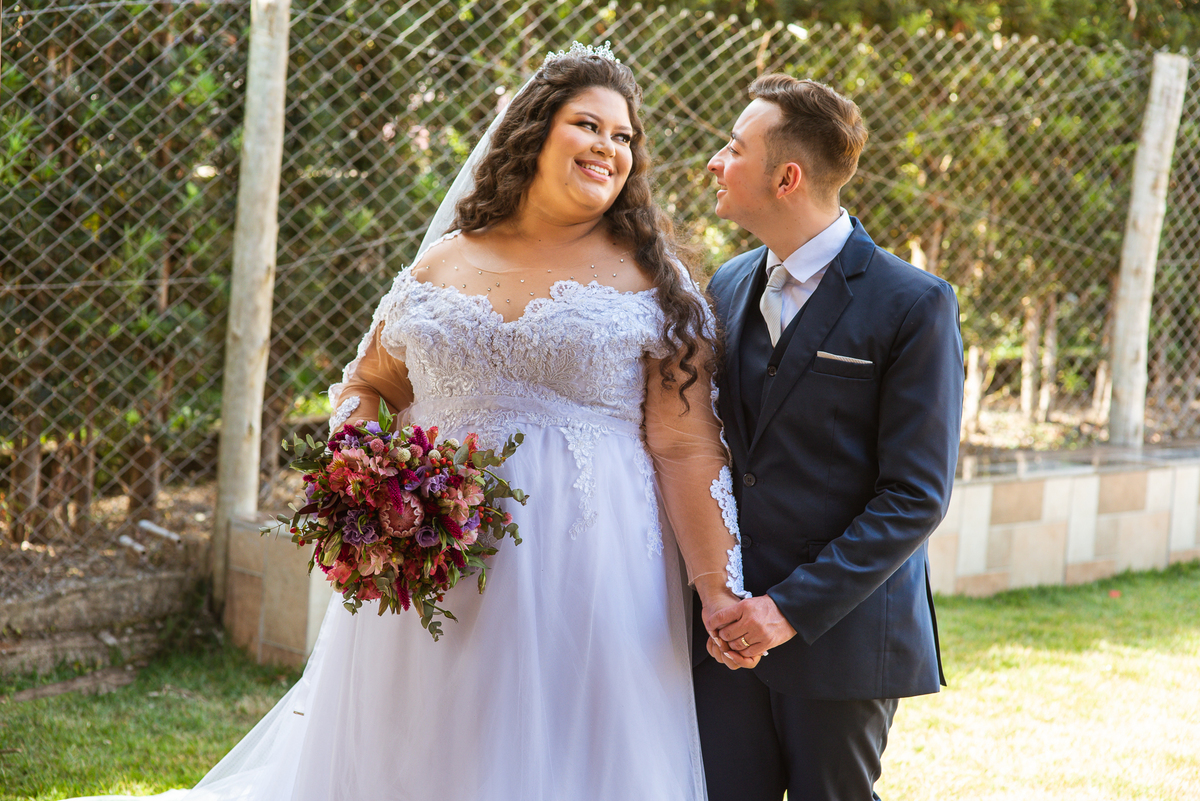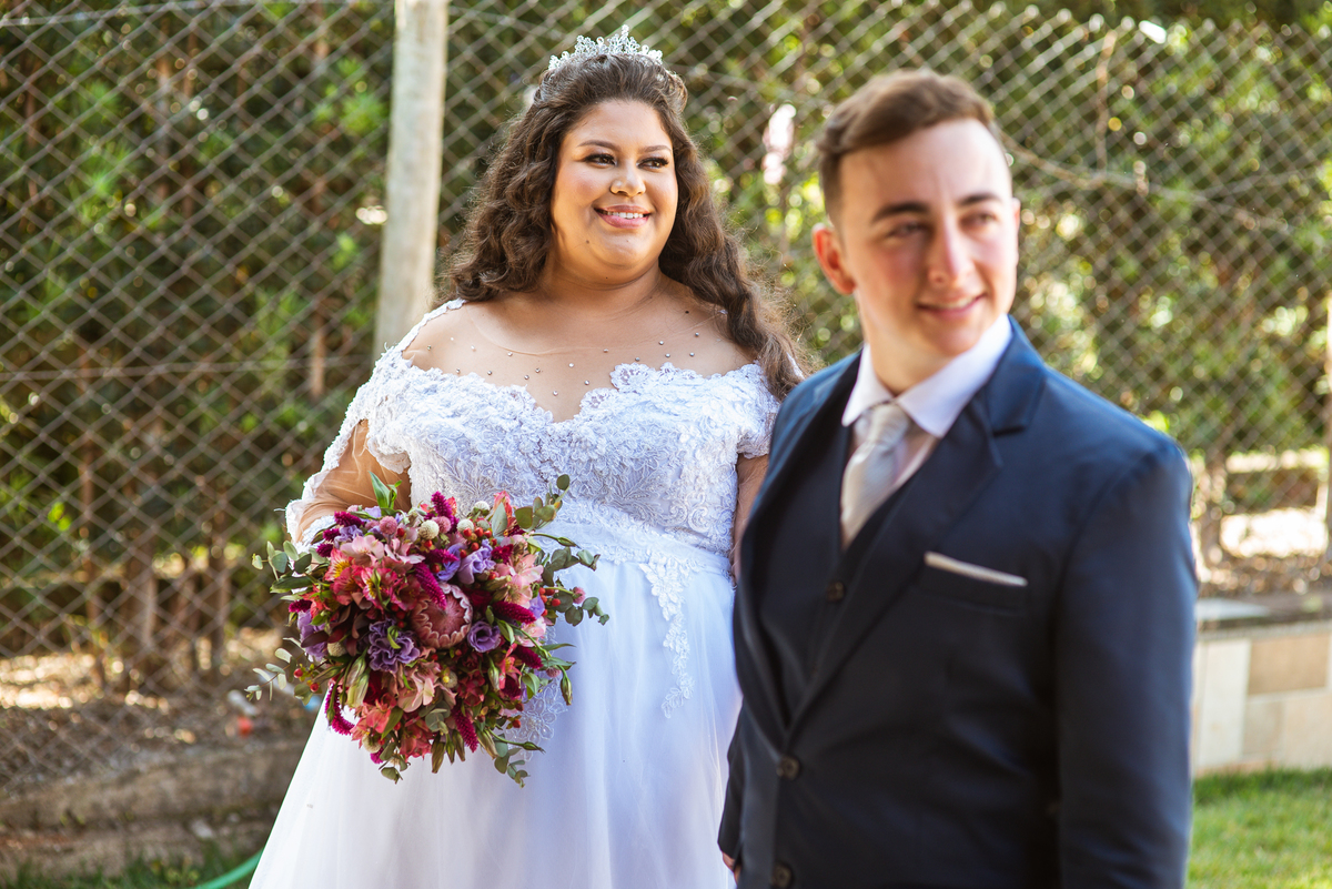 Depois desse momento super emocionante, fomos para a recepção. Lá chegando, os noivos quiseram fazer a mini sessão de fotos deles e só depois adentrar ao local. Assim fizemos, clicamos os dois no lado de fora da chácara e logo após eles entraram. Receberam o carinho de todos os convidados, fizemos mais alguns cliques na mesa do bolo e encerramos nossa participação nesse casamento super especial. Aos noivos, nosso muito obrigado pela confiança. A você que chegou até aqui, muito obrigado também! Fico muito feliz em receber o seu carinho. Logo abaixo, está um pequeno resumo em forma de imagens do que foi esse dia descrito aqui acima. Espero que todos gostem.