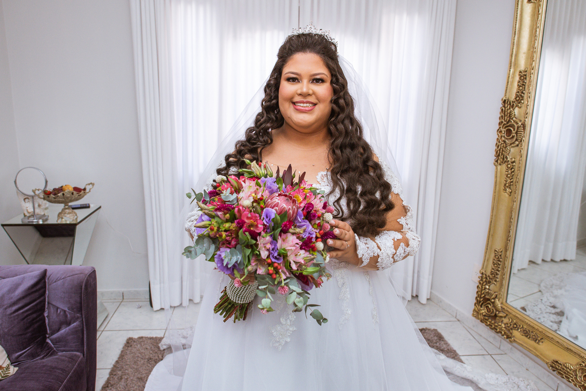 Fizemos o nosso ensaio namorando na cidade de Araxá, que por coincidência é a cidade onde os dois vão morar. Os dias se passaram e finalmente chegou o grande dia. Iniciamos o trabalho no salão Salvatore, onde já estava Géssiley com sua make belíssima prontinha, produzindo seu penteado maravilhoso. Pouco depois, o vestido dela chegou e tranquilizou mais um pouco seu coração. O pessoal do cerimonial Elo também fez sua parte, levando o buquê impecável da noiva pra ela. Quando o buquê chegou, a noiva ficou encantada com tamanha beleza e delicadeza dele. Ficou muito além de suas expectativas...