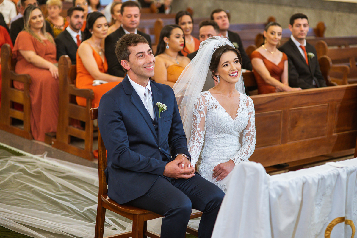 A celebração do casamento foi muito especial. Uma homilia linda e que com toda certeza ficará no coração de todos que assistiram. Os noivos receberam a bênção, a cobertura de seus pais e padrinhos e as alianças foram ungidas. Depois, trocaram as alianças entre si e foram declarados casados perante Deus e as testemunhas. E com um super beijo, os dois selaram a união e foram aplaudidos por todos que ali estavam. Fizemos nossas tradicionais fotos com os padrinhos e parentes e caminhamos para a saída. Do lado de fora, os padrinhos todos estavam enfileirados com os Sparkles nas mãos. Acesos, eles fazem com que tudo fique mais bonito ainda. Os recém-casados foram recebidos com bastante comemoração. Encerrada a cerimônia, fizemos um mini ensaio dos noivos e partimos para a recepção.