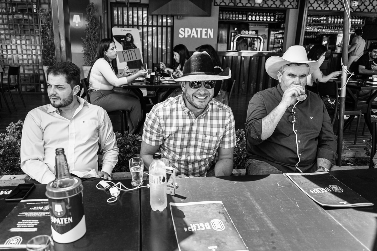 Encerrada a cerimônia, do lado de fora o cortejo de padrinhos aguardava a passagem dos noivos. Todos com seus respectivos chapéus, fizeram um corredor para receber os dois recém-casados. Quando Bianca e Lucas chegaram, foi uma festa só. Assovios e muitas palmas, além de todos levantarem os chapéus em forma de comemoração. Finalizamos as fotos e partimos rumo ao espaço Casa Flor. O local tem uma vista magnífica e lá mesmo fizemos mais algumas fotos antes da entrada dos dois. A tarde estava linda e o pôr-do-sol abrilhantou nossa sessão de fotos. Ao fim, eles foram anunciados e fizeram uma entrada arrasadora. Dançaram juntos, festejaram com os padrinhos na pista e curtiram o som que a banda tocava.