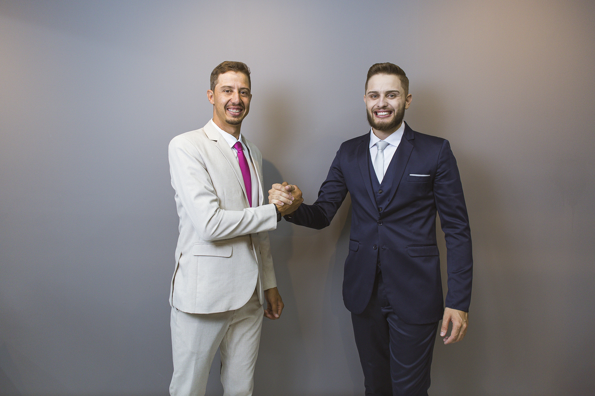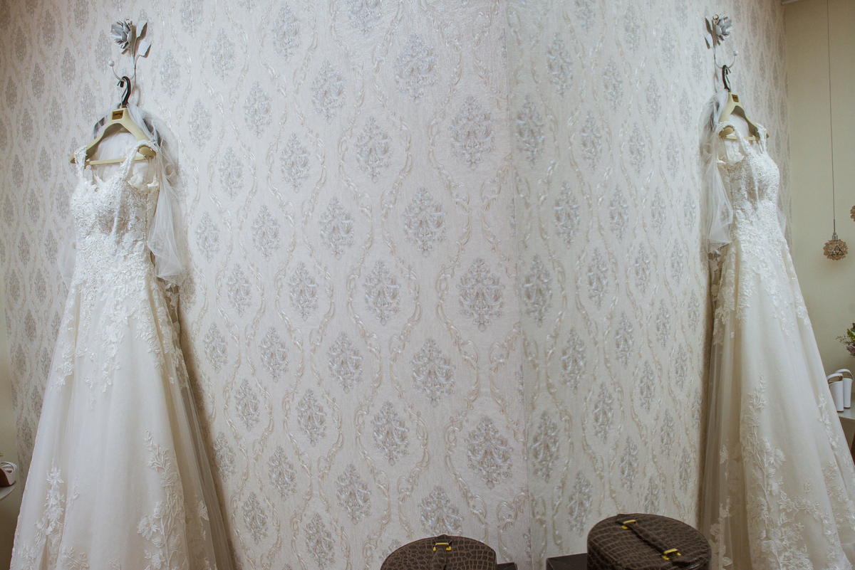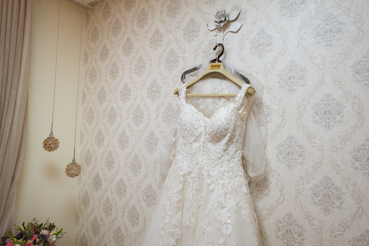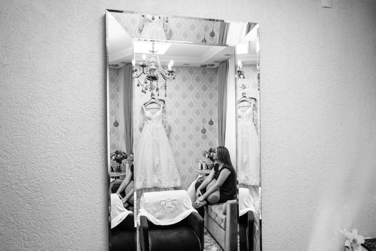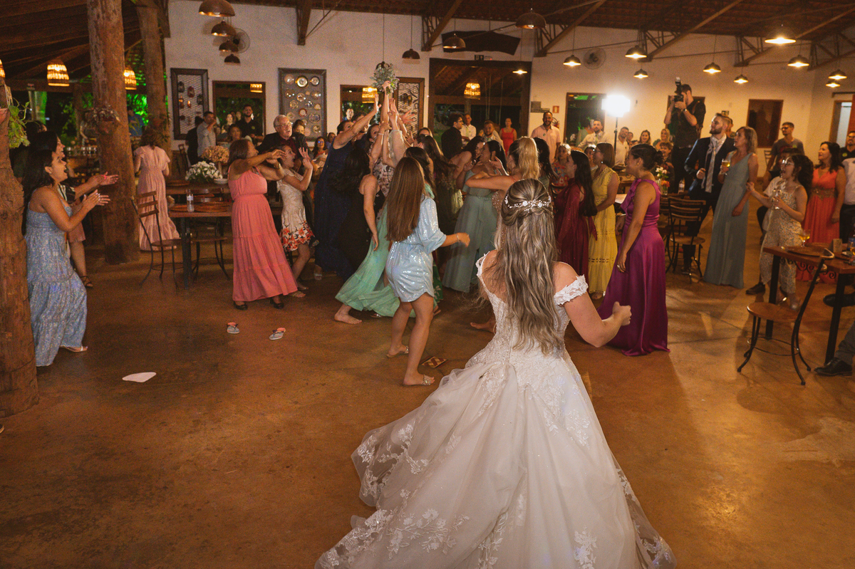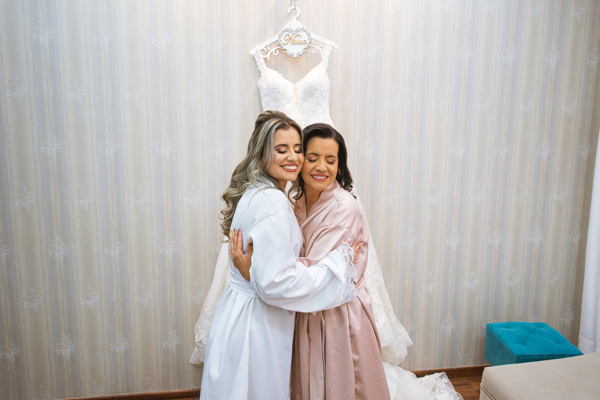 Lívio já estava pronto, fez todas as fotos que desejava e partiu para o local da cerimônia. Por falar nele, os noivos escolheram casar no espaço Casa de Família, que é um restaurante com um local especial preparado para casamentos também. Elisama realizava os últimos ajustes no penteado e já estava prestes a colocar seu vestido. Poucos minutos depois, ela surgiu maravilhosa e já com sua produção finalizada. Faltava apenas o véu que abrilhantaria ainda mais o vestido. Fizemos nossas fotos e partimos para a cerimônia. Fui bem rápido e cheguei antes da noiva. Lívio já estava lá, cumprimentando todos os convidados, abraçando os parentes e amigos e distribuindo seu sorriso para todos.