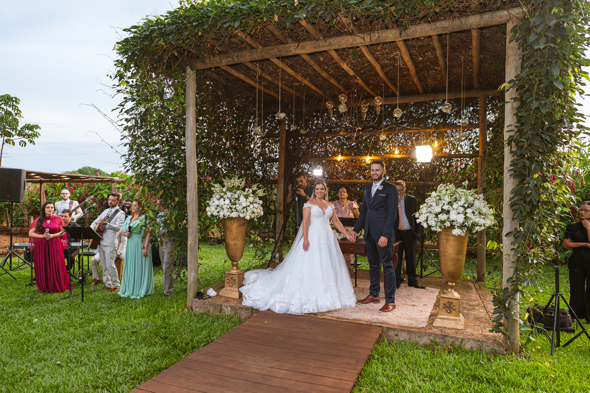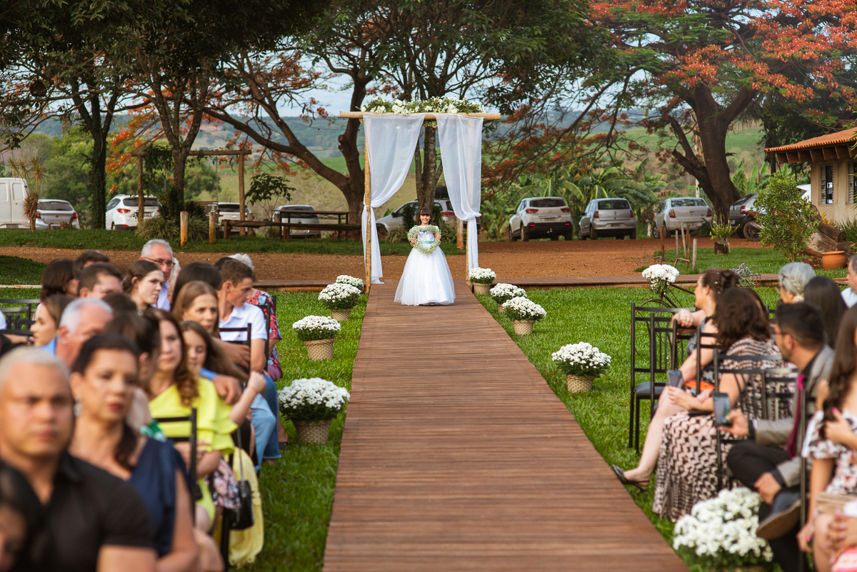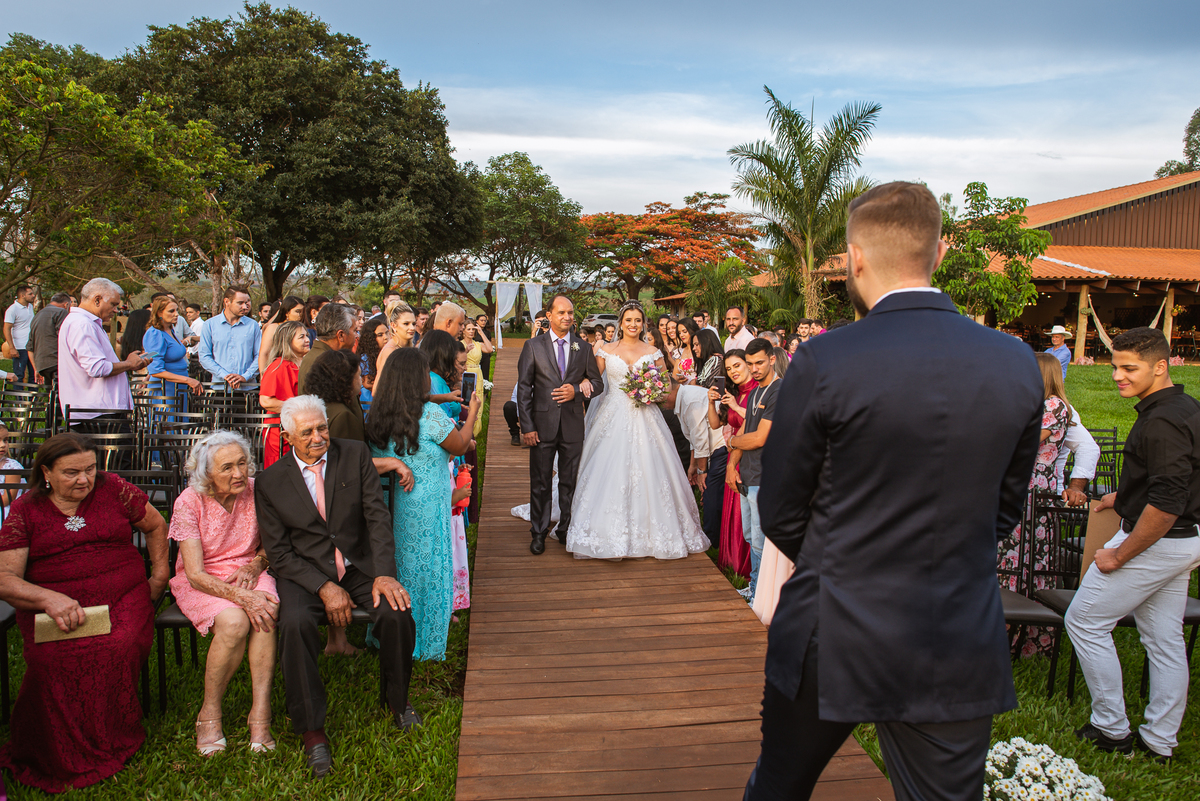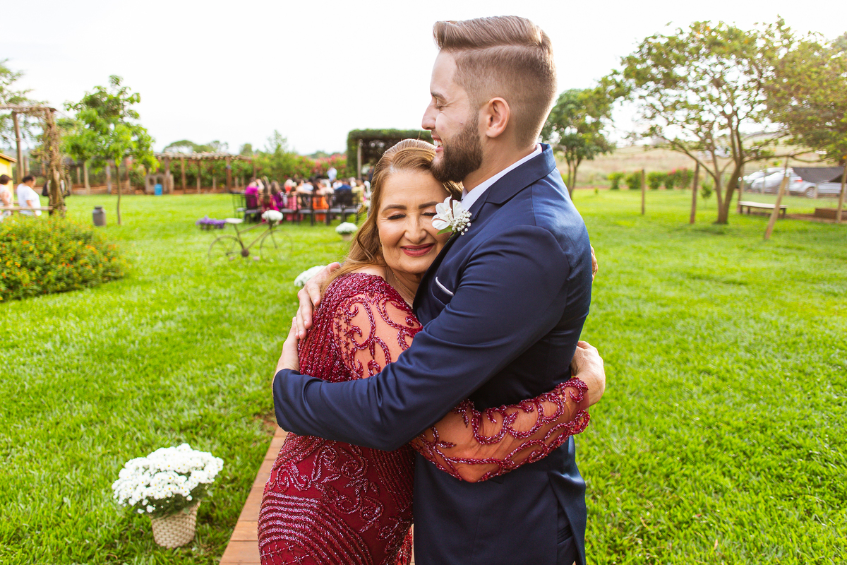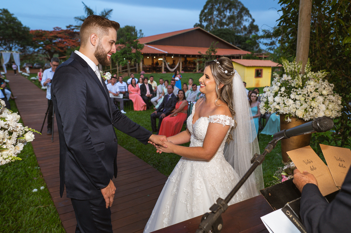 Quando cheguei, nos cumprimentamos e ela logo abriu aquele sorrisão de quem sabe que fez a escolha certa e tudo estava nas mãos de Deus. Ela olhava para o vestido admirando como se realizasse um sonho de criança. Sabe quando a menina sonha com seu grande dia de noiva? Pois é, eu estava presenciando a realização desse sonho ali. A nossa apreensão era com a possibilidade de chuva, pois o casamento aconteceria ao ar livre, então caso chovesse perderia todo o charme do casamento no campo. Mas como disse no início, Deus já havia preparado tudo...