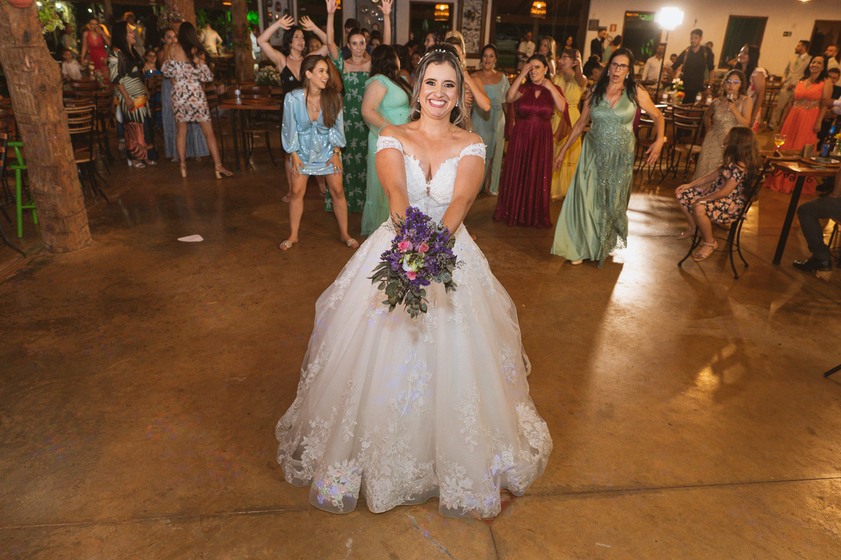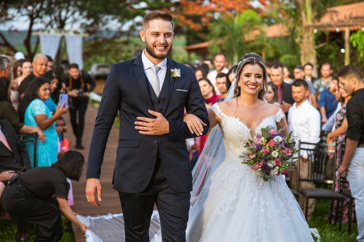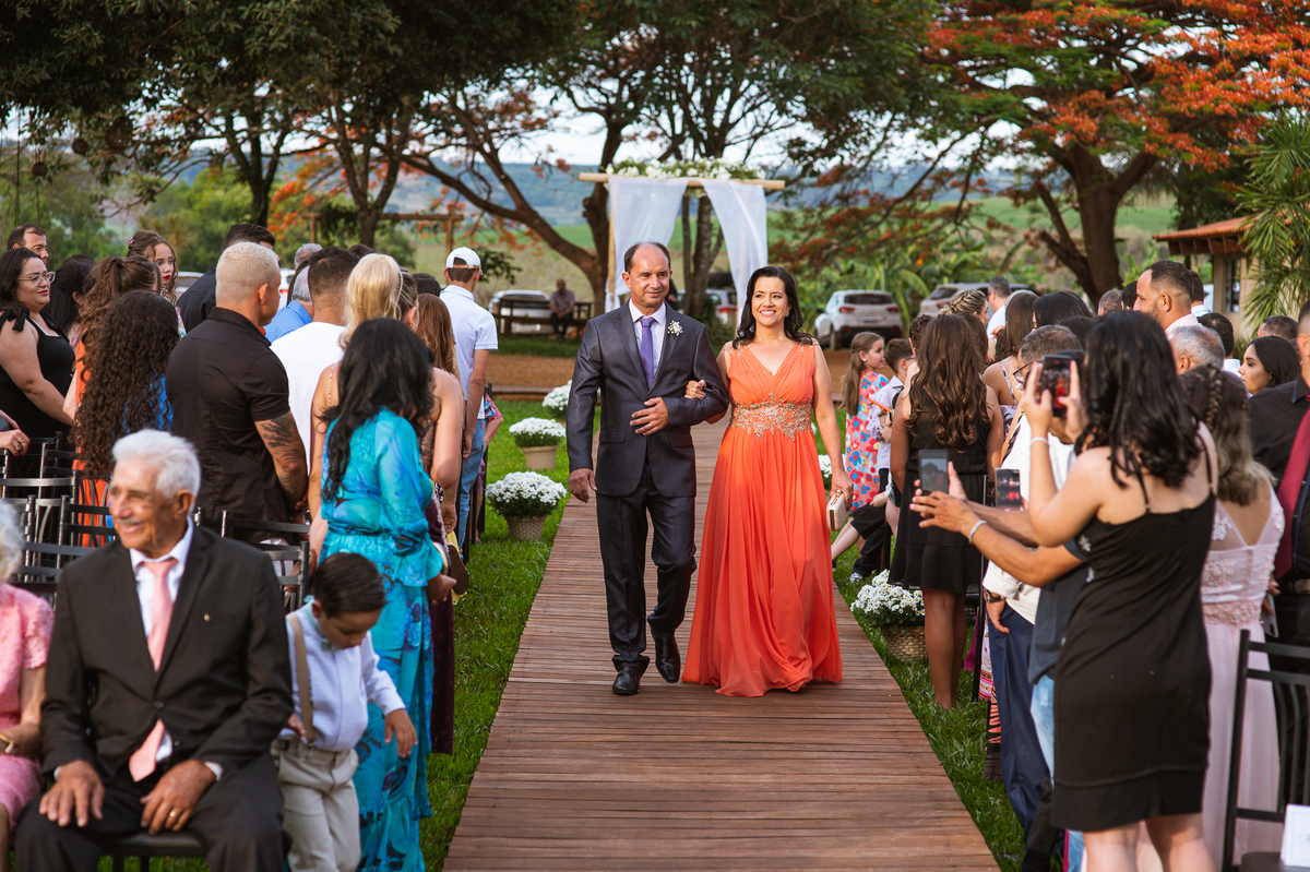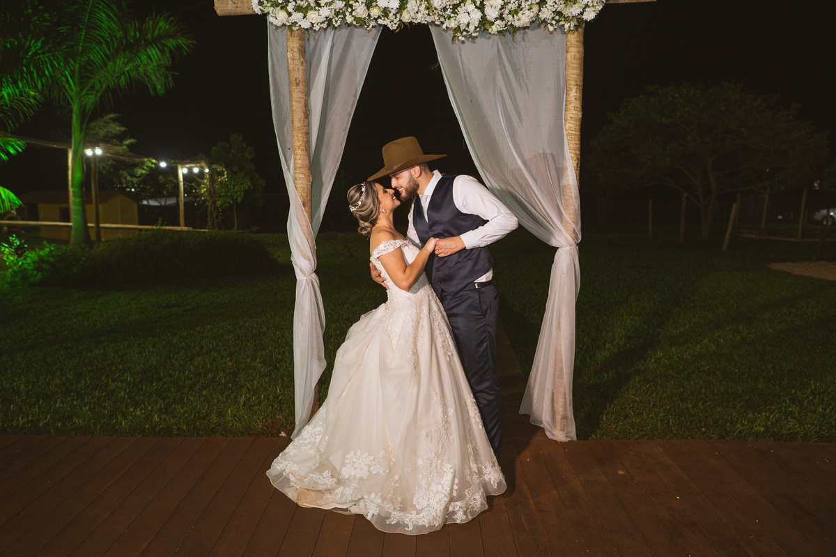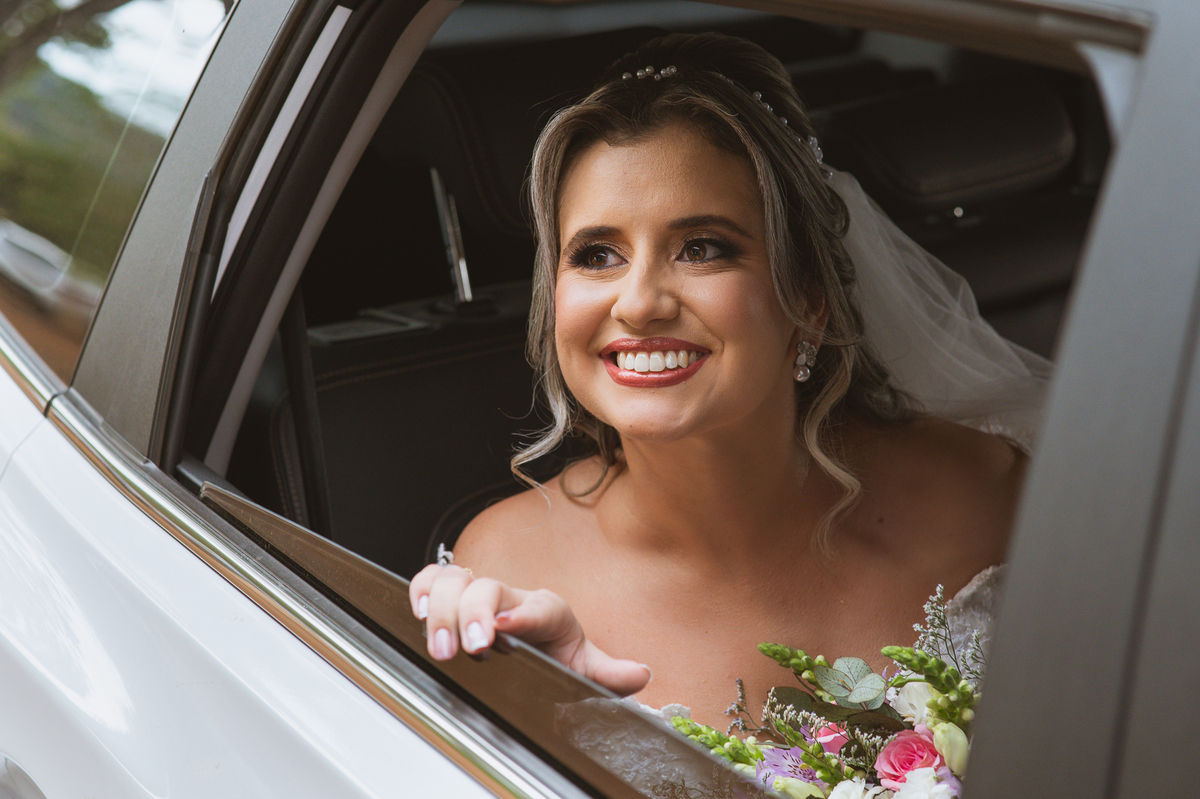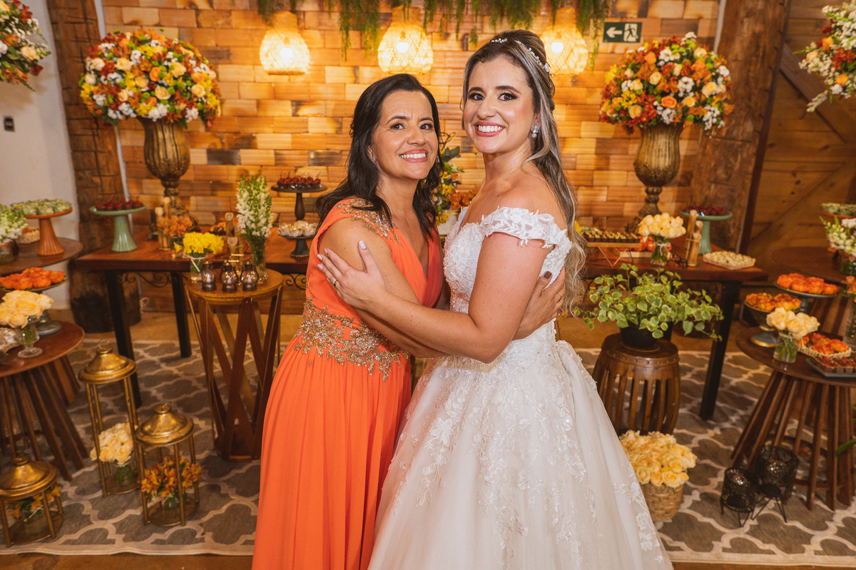 Quando cheguei, nos cumprimentamos e ela logo abriu aquele sorrisão de quem sabe que fez a escolha certa e tudo estava nas mãos de Deus. Ela olhava para o vestido admirando como se realizasse um sonho de criança. Sabe quando a menina sonha com seu grande dia de noiva? Pois é, eu estava presenciando a realização desse sonho ali. A nossa apreensão era com a possibilidade de chuva, pois o casamento aconteceria ao ar livre, então caso chovesse perderia todo o charme do casamento no campo. Mas como disse no início, Deus já havia preparado tudo...