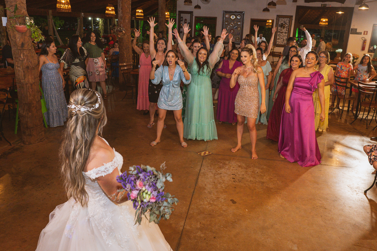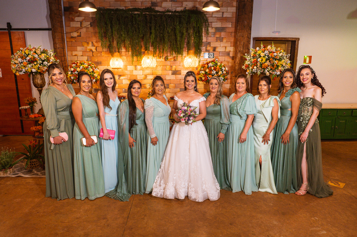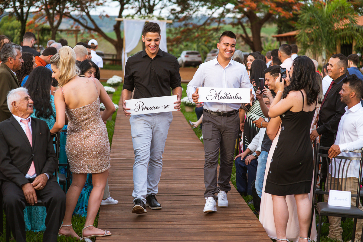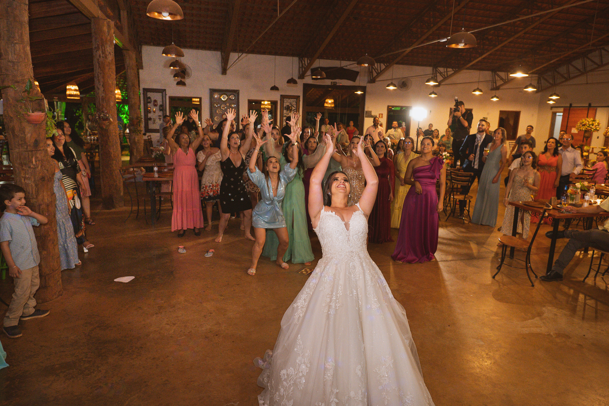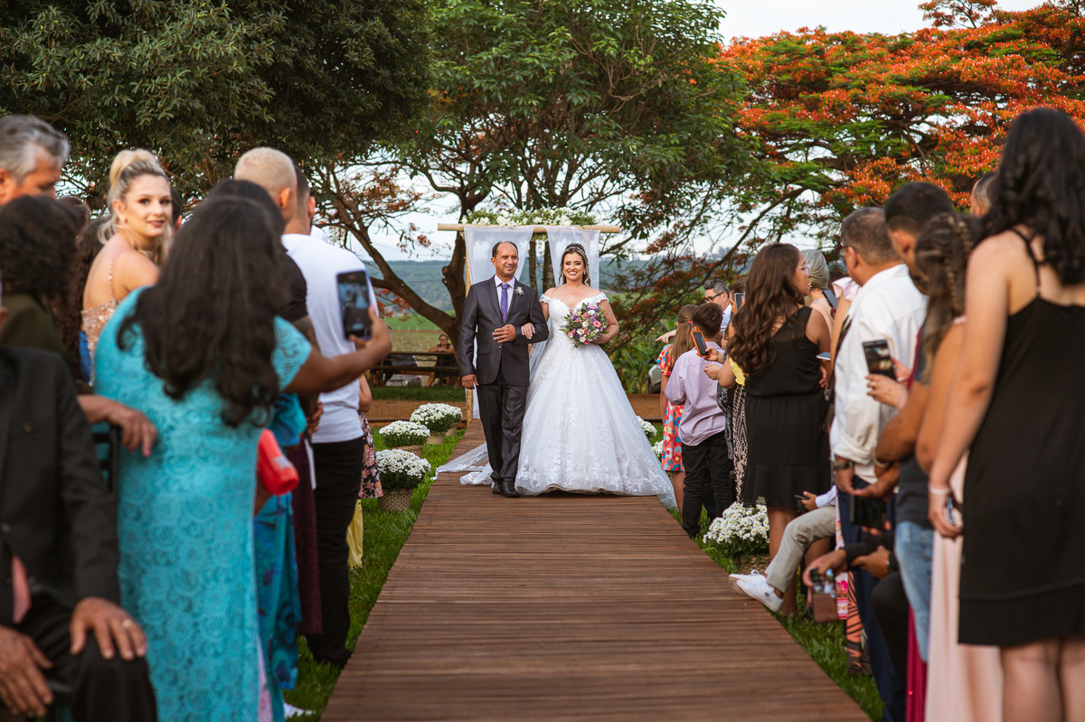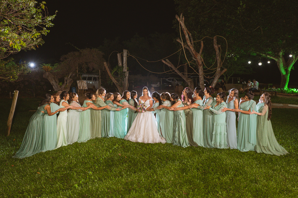 Quando cheguei, nos cumprimentamos e ela logo abriu aquele sorrisão de quem sabe que fez a escolha certa e tudo estava nas mãos de Deus. Ela olhava para o vestido admirando como se realizasse um sonho de criança. Sabe quando a menina sonha com seu grande dia de noiva? Pois é, eu estava presenciando a realização desse sonho ali. A nossa apreensão era com a possibilidade de chuva, pois o casamento aconteceria ao ar livre, então caso chovesse perderia todo o charme do casamento no campo. Mas como disse no início, Deus já havia preparado tudo...