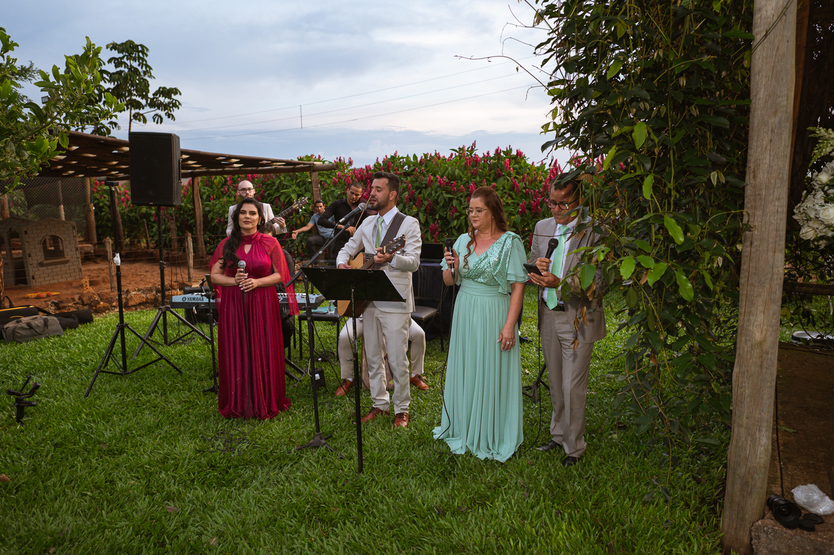 Quando Elisama chegou, fizemos nossas fotos no carro e logo partimos para a celebração. Os músicos estavam apostos e todos aguardavam apenas a noiva para começar a cerimônia. A música começou a ser tocada, o pastor ao lado de sua esposa entraram e deram início à celebração do matrimônio. Logo após eles, os avós e os pais dos noivos entraram. Lívio entrou logo depois, deu um beijo na testa de sua mãe como agradecimento e respeito pelos anos de cuidado e amor. Agora, faltava muito pouco para o noivo encontrar com sua noiva. As crianças foram uma atração à parte. Como sempre, são uma surpresa. Algumas entraram, outras paravam no meio do caminho, os papais desesperados chamando para virem e no final sempre tudo dá certo. As entradas foram lindas. Teve até padrinho procurando madrinha para o próximo casamento rs.