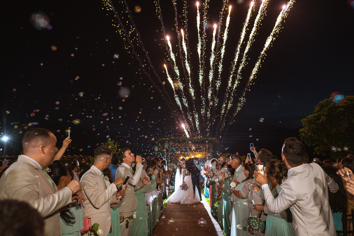 Fizemos nossas fotos protocolares com todos os familiares e padrinhos e tivemos uma surpresa muito legal na saída dos noivos. Lívio havia me dito poucos dias antes que haveria uma pequena queima de fogos e que desejava que esse momento ficasse registrado com muita atenção. Logo, nos preparamos para a saída. Os padrinhos se posicionaram formando uma grande fila e foram distribuídos lançadores de bolhinhas de sabão. Confesso pra vocês que na hora, como tudo foi muito rápido entre a saída e a queima de fogos, eu simplesmente regulei a câmera e disparei. Foram poucos segundos mas que ficaram eternizados graciosamente. Abaixo vocês verão o resultado magnífico do conjunto bolhas de sabão e fogos de artifício. Enfim, finalizada a cerimônia, ali mesmo fotografamos os padrinhos e madrinhas separadamente conforme pedido da noiva e fizemos um mini ensaio dos noivos.