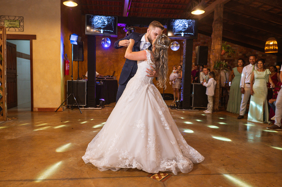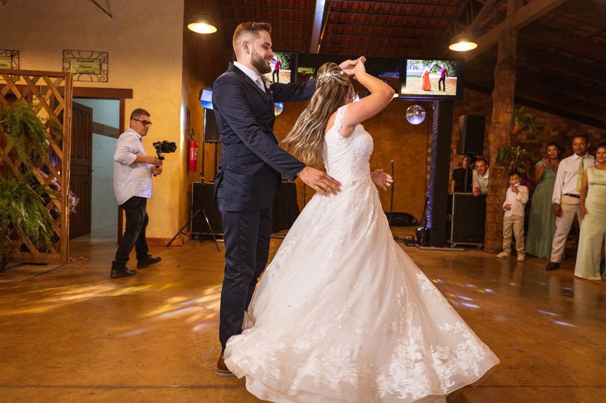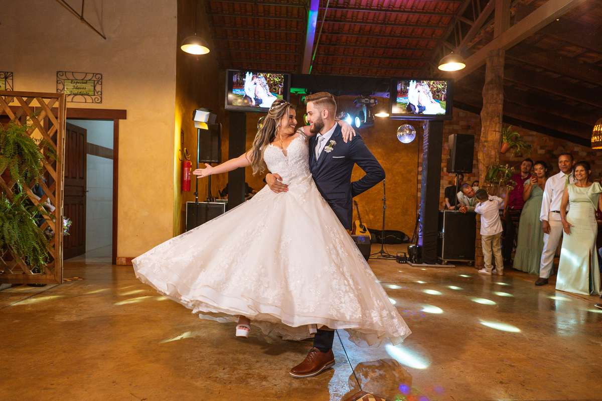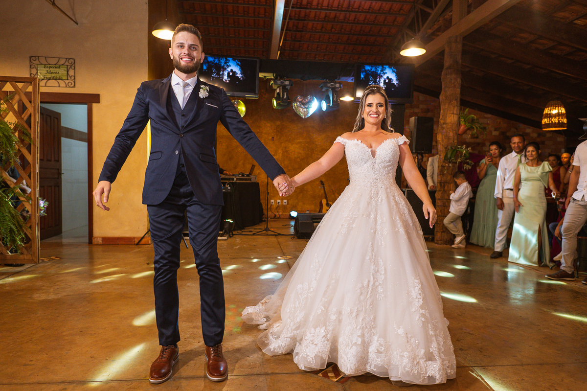 Agora, era chegada a hora da entrada deles no salão. Lívio e Elisama entraram e foram recepcionados pelos convidados com muitas palmas e alegria. Eles prepararam também uma dança muito romântica para apresentar aos convidados. E olha que tiveram até aula particular para não errar nenhum passo e fizeram tudo caprichado. Foi uma apresentação impecável e com final espetacular. Os recém-casados cumprimentaram os seus convidados e foram curtir a festa. Entre dança, curtição e muita alegria, antes de finalizarmos o trabalho, Elisama e Lívio nos solicitaram algumas fotos nas luzinhas da decoração do local que ficavam do lado de fora do restaurante. Prontamente, atendemos seu pedido. Fizemos um pequeno ensaio dos dois e finalizamos o nosso trabalho com a certeza que fechamos com chave de ouro.