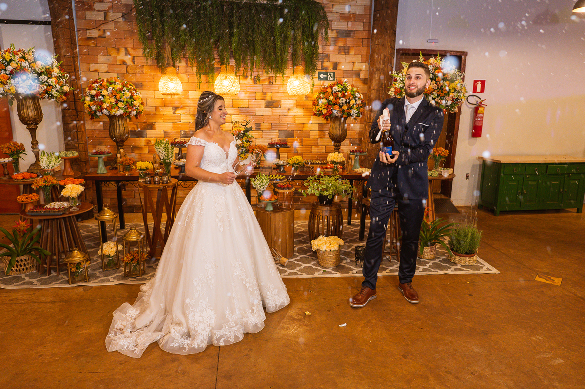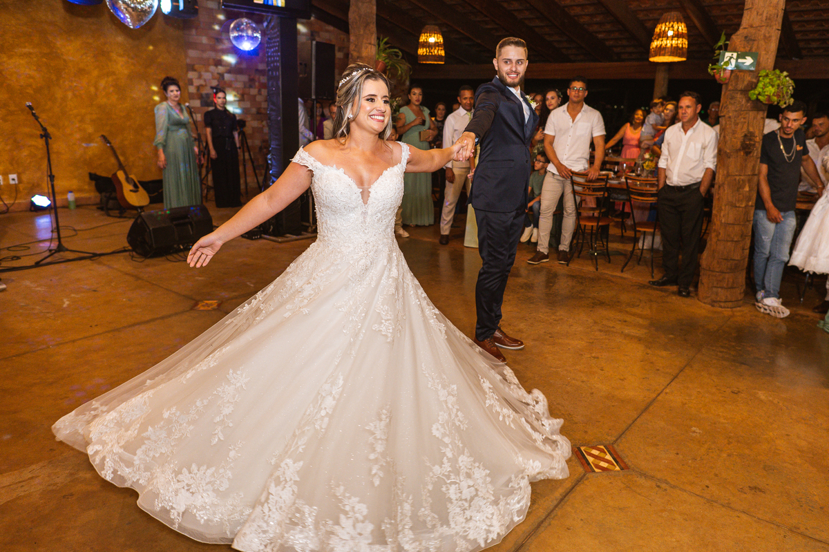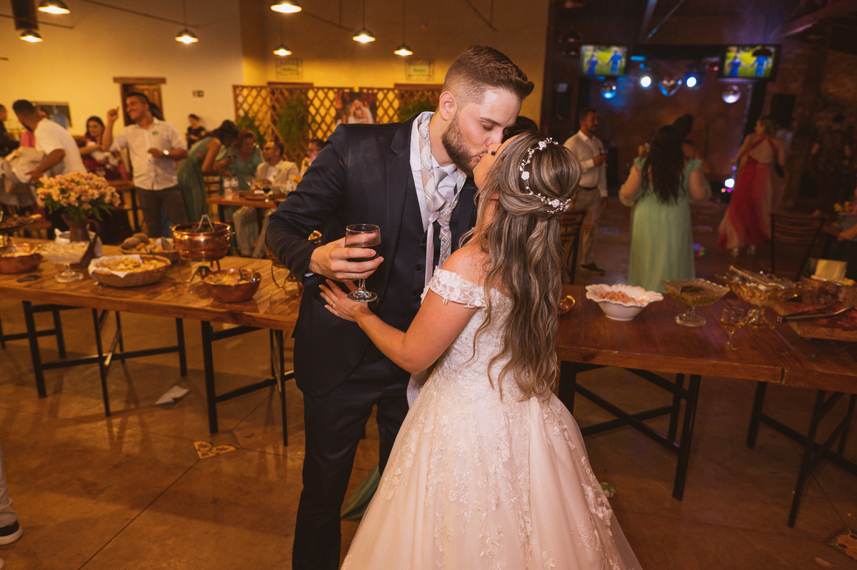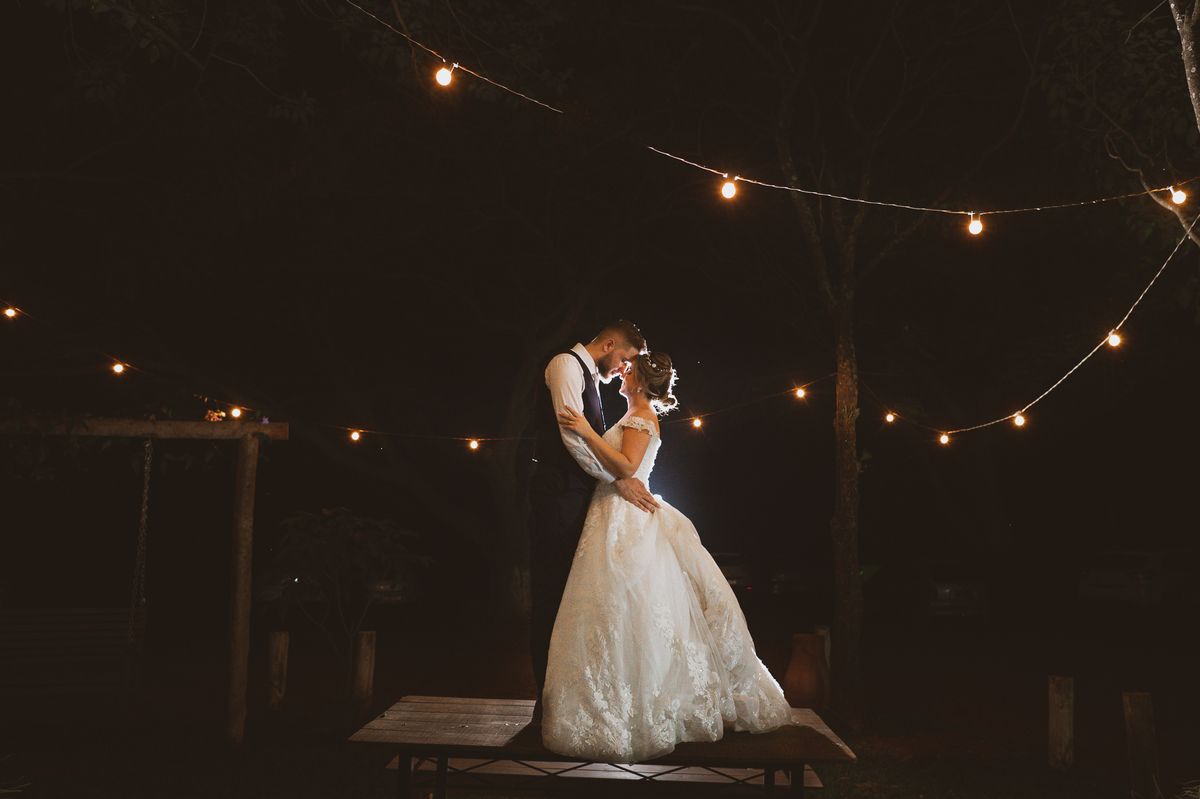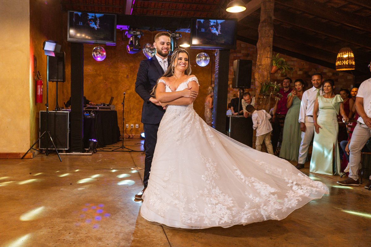 Agora, era chegada a hora da entrada deles no salão. Lívio e Elisama entraram e foram recepcionados pelos convidados com muitas palmas e alegria. Eles prepararam também uma dança muito romântica para apresentar aos convidados. E olha que tiveram até aula particular para não errar nenhum passo e fizeram tudo caprichado. Foi uma apresentação impecável e com final espetacular. Os recém-casados cumprimentaram os seus convidados e foram curtir a festa. Entre dança, curtição e muita alegria, antes de finalizarmos o trabalho, Elisama e Lívio nos solicitaram algumas fotos nas luzinhas da decoração do local que ficavam do lado de fora do restaurante. Prontamente, atendemos seu pedido. Fizemos um pequeno ensaio dos dois e finalizamos o nosso trabalho com a certeza que fechamos com chave de ouro.