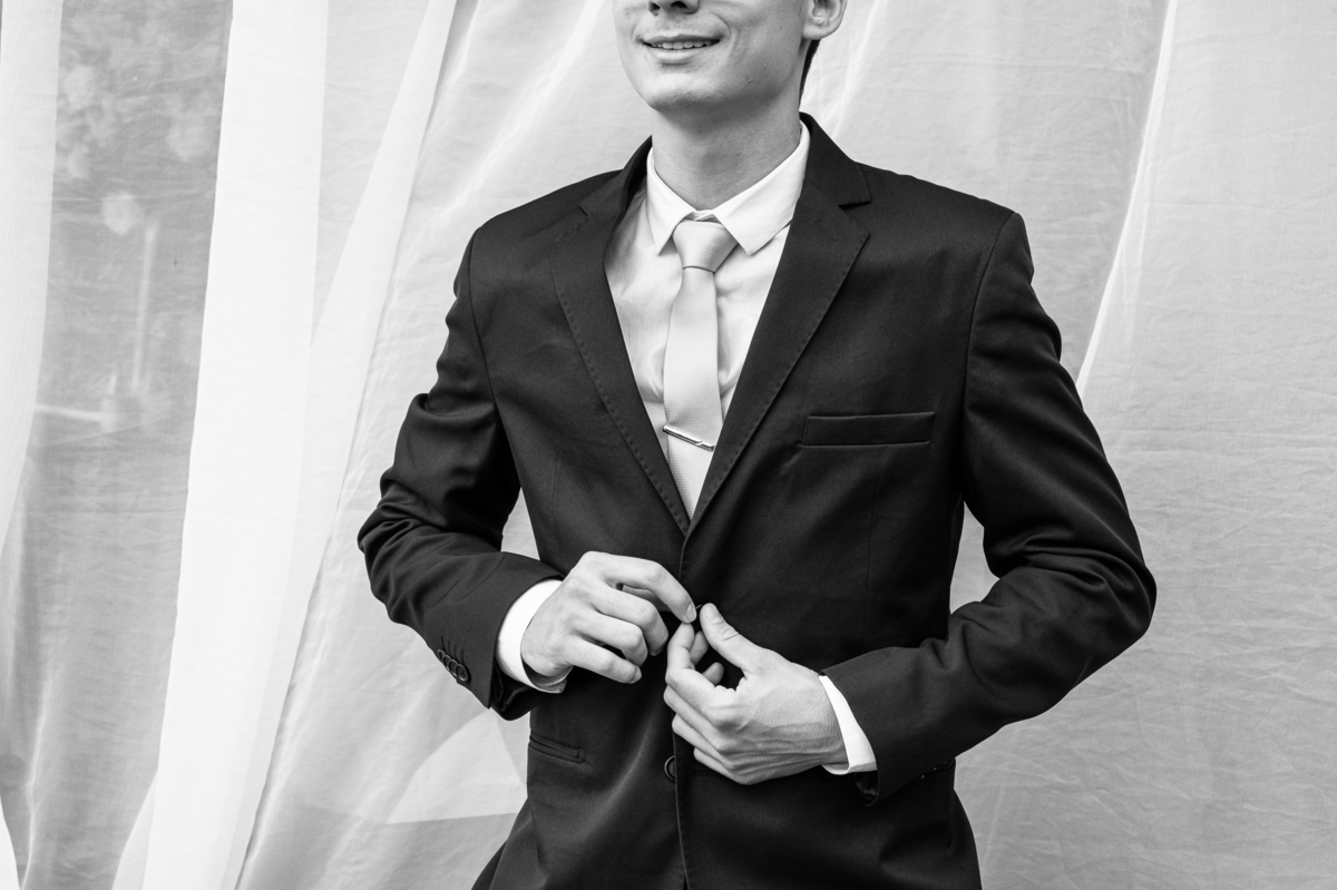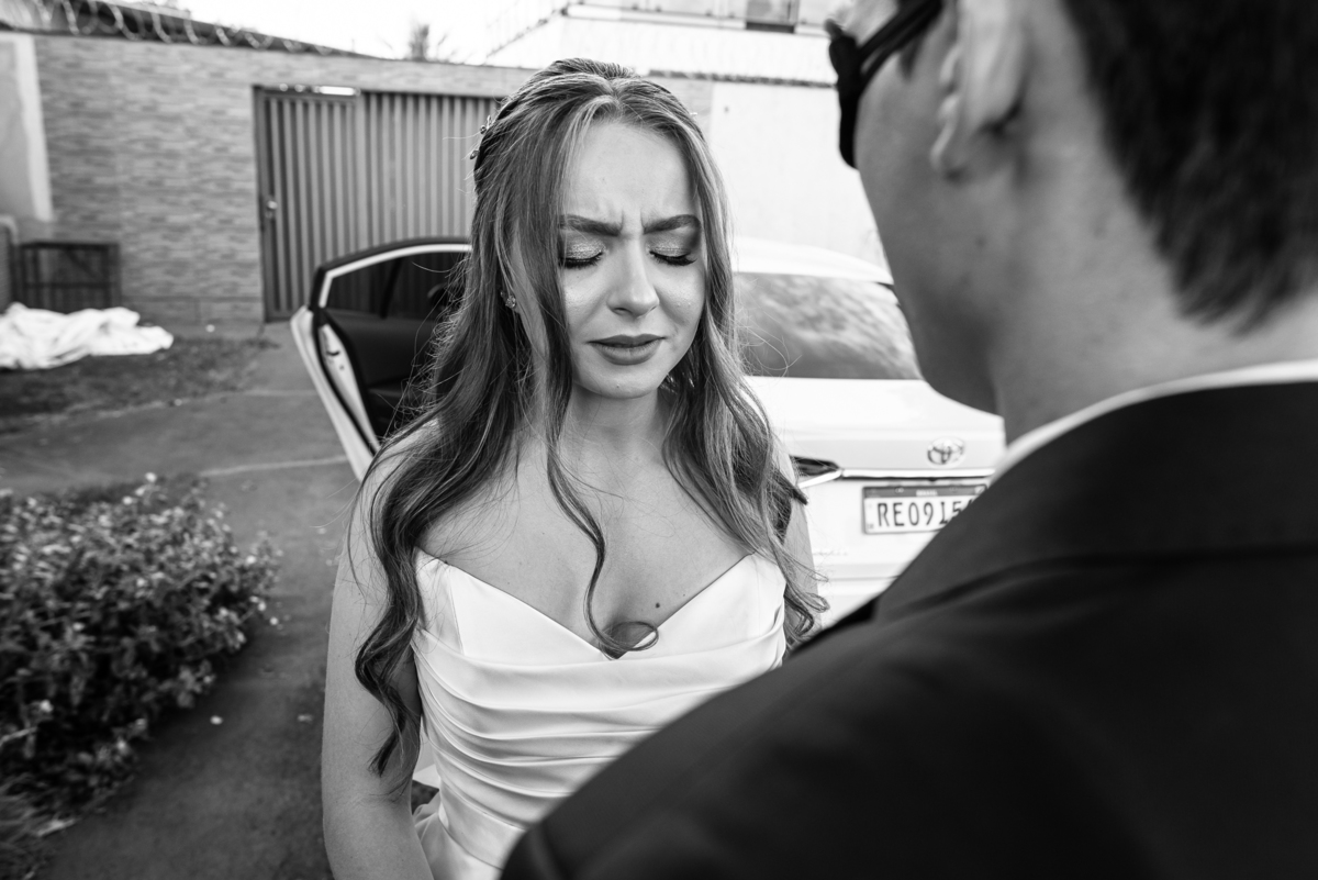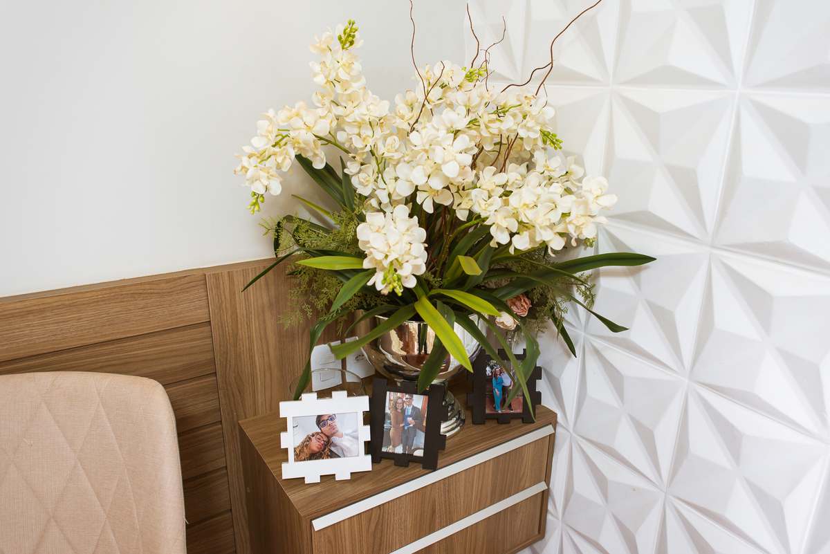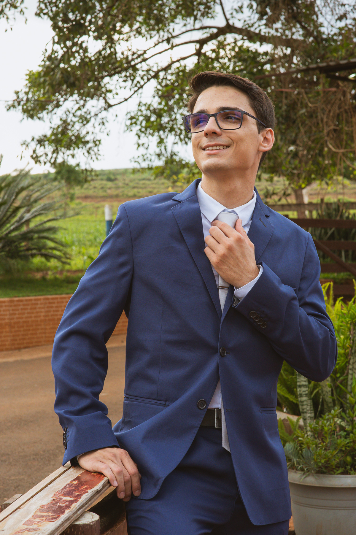 Lá estava Eduardo, correndo de um lado para o outro terminando de ajustar os últimos detalhes. Os convidados iam chegando aos poucos, padrinhos sendo alinhados para a celebração começar. Chegamos rapidamente para a segunda surpresa que Eduarda havia preparado com seu noivo. Além do First Look, eles queriam fazer também o First Touch, que é o encontro dos noivos sem se verem. Eles, além de aproveitar esse momento para o registro das fotos, fizeram questão de orar agradecendo a Deus por tudo que estava acontecendo, por seu sonho estar sendo realizado, muito maior do que eles imaginavam. Enquanto oravam juntos, Eduardo estava vendado, e em dado momento a emoção foi tanta que ele desabou em lágrimas. Mesmo sem ainda ver sua noiva, o êxtase da oração e gratidão por esse momento o fizeram chorar. Após esse outro momento mágico, fizemos os retratos da noiva no carro e também do noivo antes da celebração começar.