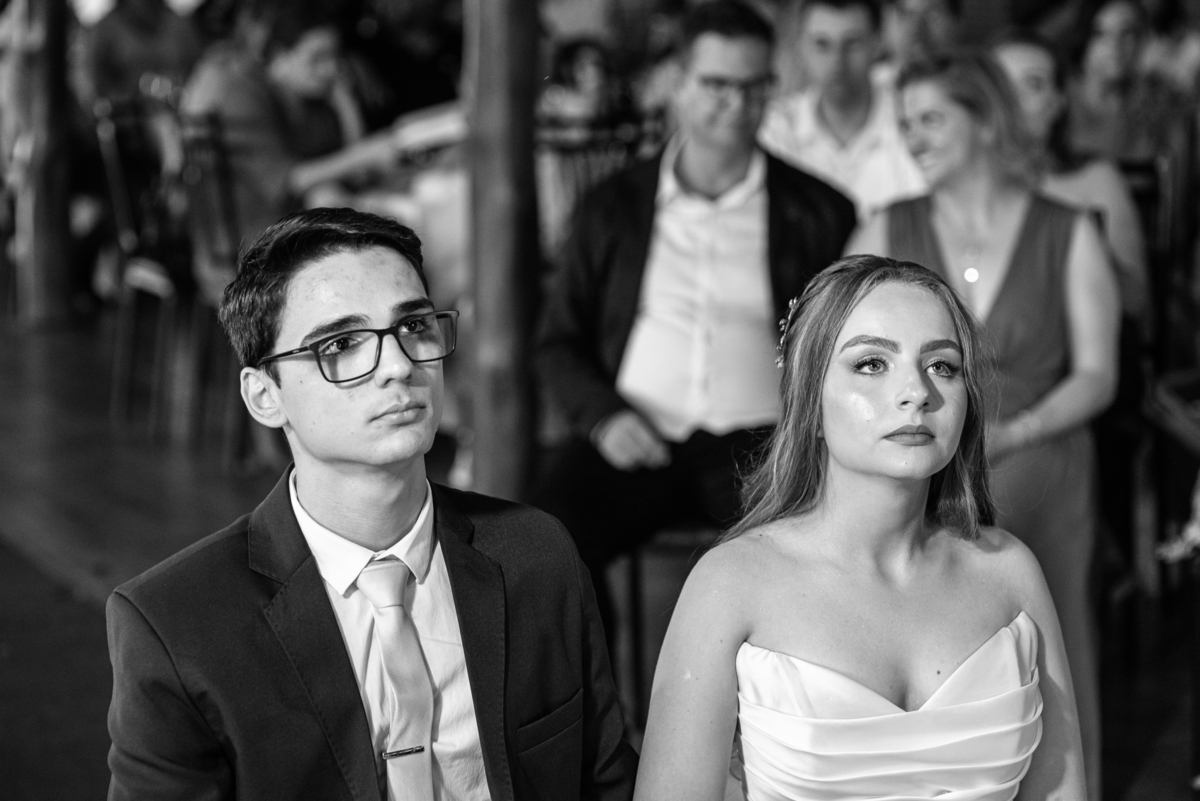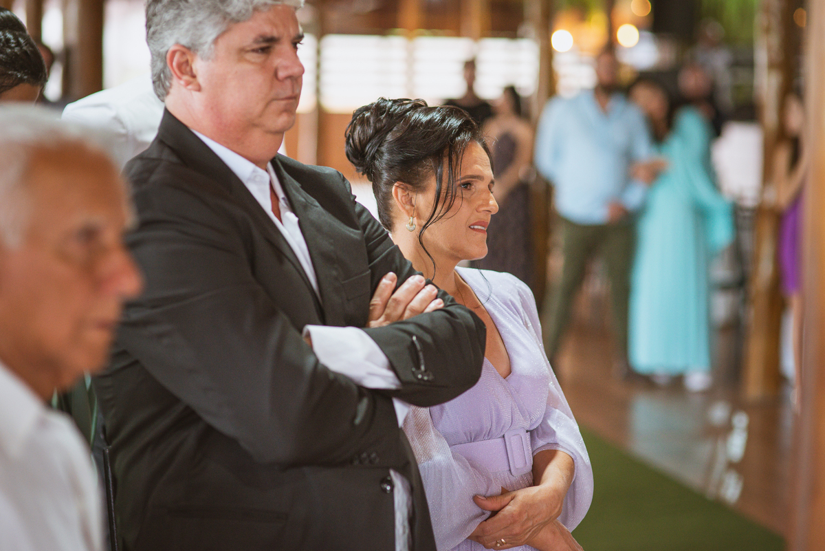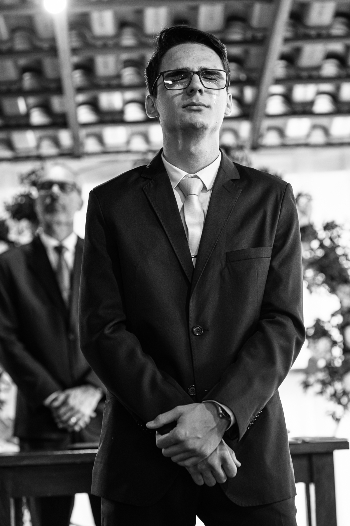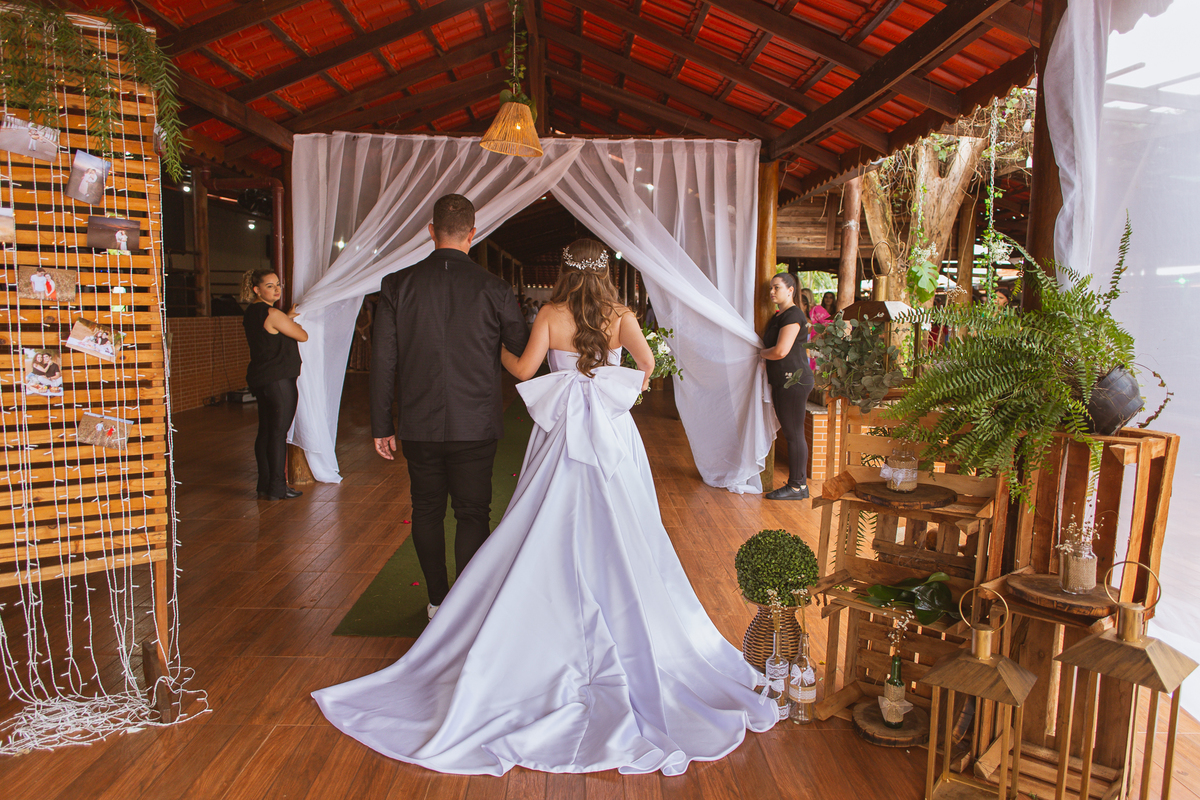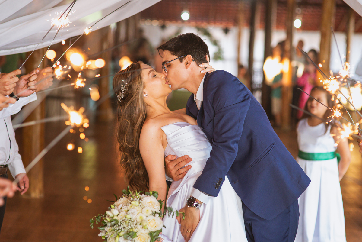 Já preparei o coração porque sabia que viriam palavras ali que os fariam se emocionar ainda mais. Dito e feito. Os votos começaram pelo noivo. Ele fez uma declaração linda pra ela. Comentou sobre como ele havia pedido a Deus uma pessoa exatamente como Eduarda. Ela, por sua vez, nos emocionou ainda mais. Disse com detalhes, tudo que havia conversado com Deus sobre o esposo desejado. Contou algumas partes engraçadas sobre o relacionamento dos dois até aquele dia e sobre todo seu sentimento de felicidade em que estava sentindo naquele momento. Eu olhei para todos os convidados que consegui, podia contar nos dedos os que não estavam chorando... Foi forte! Assim, depois de toda essa emoção novamente, eles foram declarados casados perante Deus e as testemunhas. Fizemos nossas fotos tradicionais e os padrinhos os receberam no final do corredor com bastante festa.
