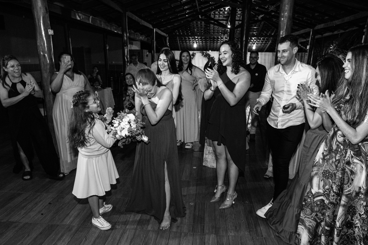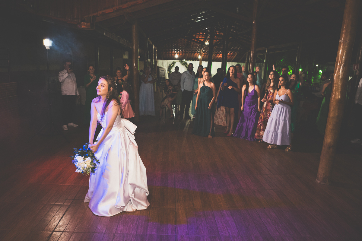 Confesso uma coisa pra vocês aqui, só entre nós. Do nada, me veio na cabeça pegar meu celular, falar com a irmã da noiva o seguinte: Eu vou gravar aqui você falando que não vai casar. E ela realmente disse: Eu não vou casar. Isso aconteceu no início da cerimônia, antes de tudo isso que eu relatei a vocês acima. Pois eu gravei esse momento porque ela havia me dito no making of que não iria se casar jamais. Só que... ela namorava até esse momento. Quando a Eduarda chamou as solteiras para a hora do buquê, elas todas se prontificaram e ficaram lá esperando para ver quem pegaria o buquê. E quem estava lá? Sim, a irmã da noiva. Só que, eu não sabia que teríamos ainda uma última surpresa. O cunhado da noiva pediria sua namorada em noivado ali, naquele momento. Gente, vocês tem noção disso? Eu gravei ela falando que não se casaria, momentos antes de ela ser surpreendida com o pedido de noivado no casamento da sua irmã! Qual a chance disso acontecer? Assista o vídeo e entenda direitinho mais essa surpresa. Os noivos comeram, beberam, dançaram e agradeceram muito todos que fizeram parte desse grande sonho.