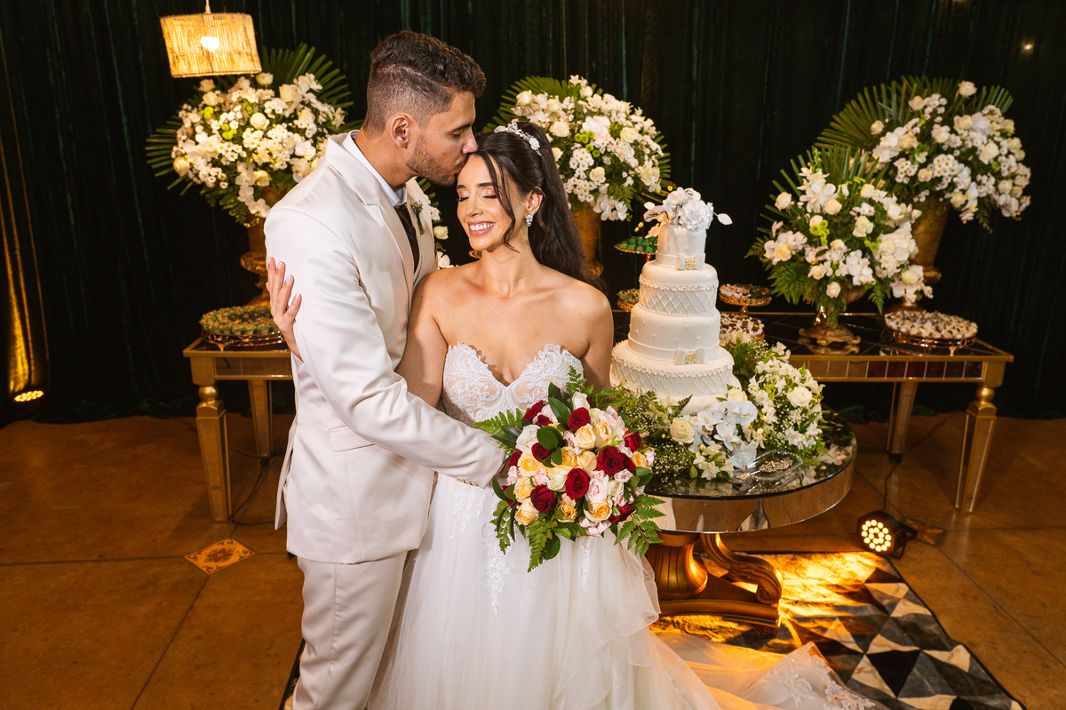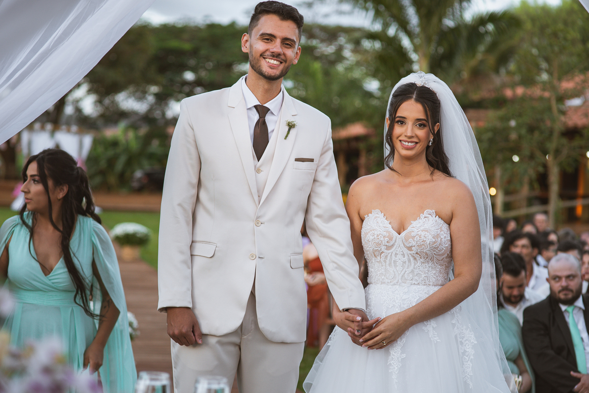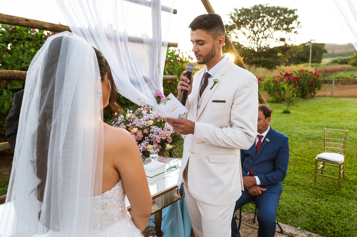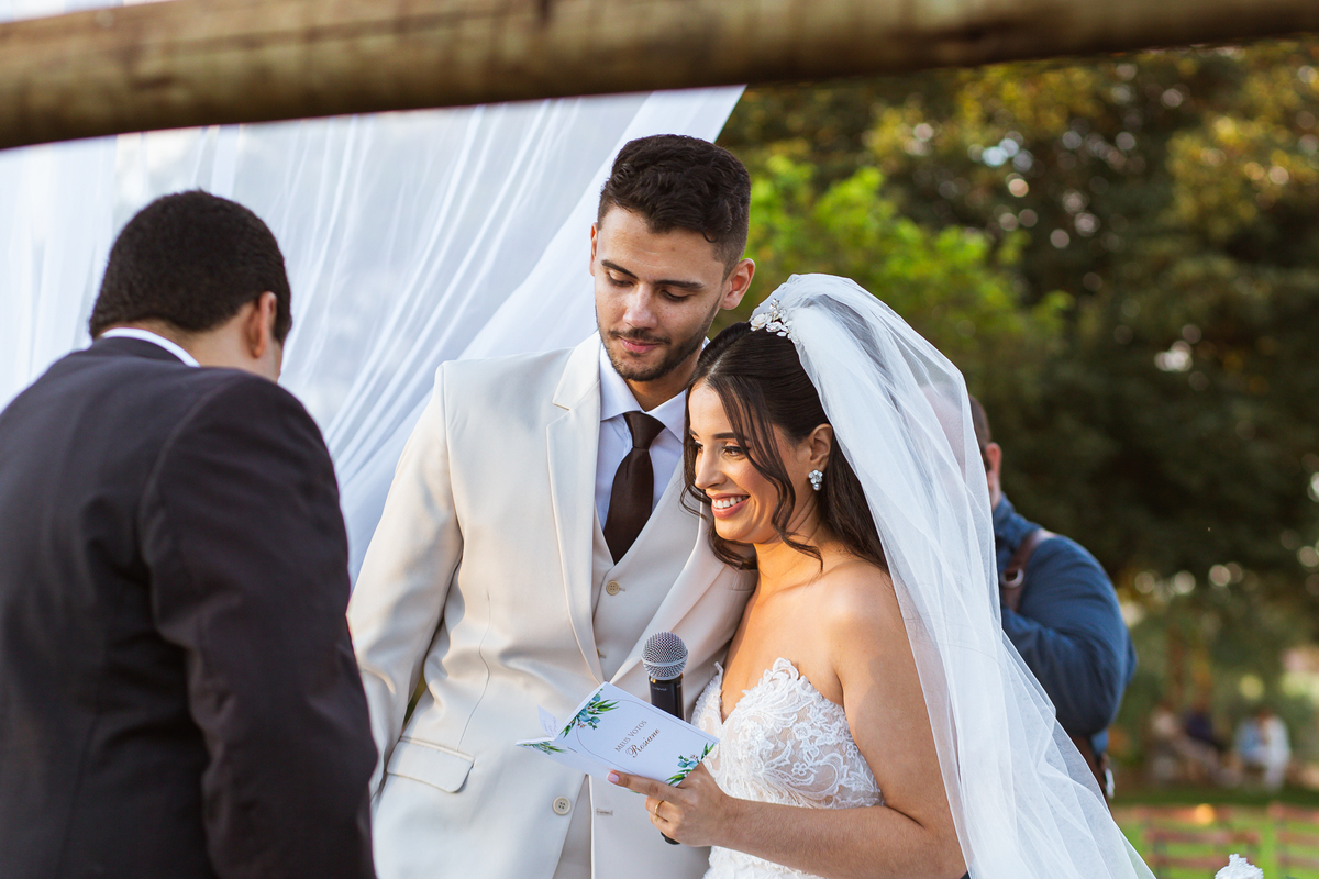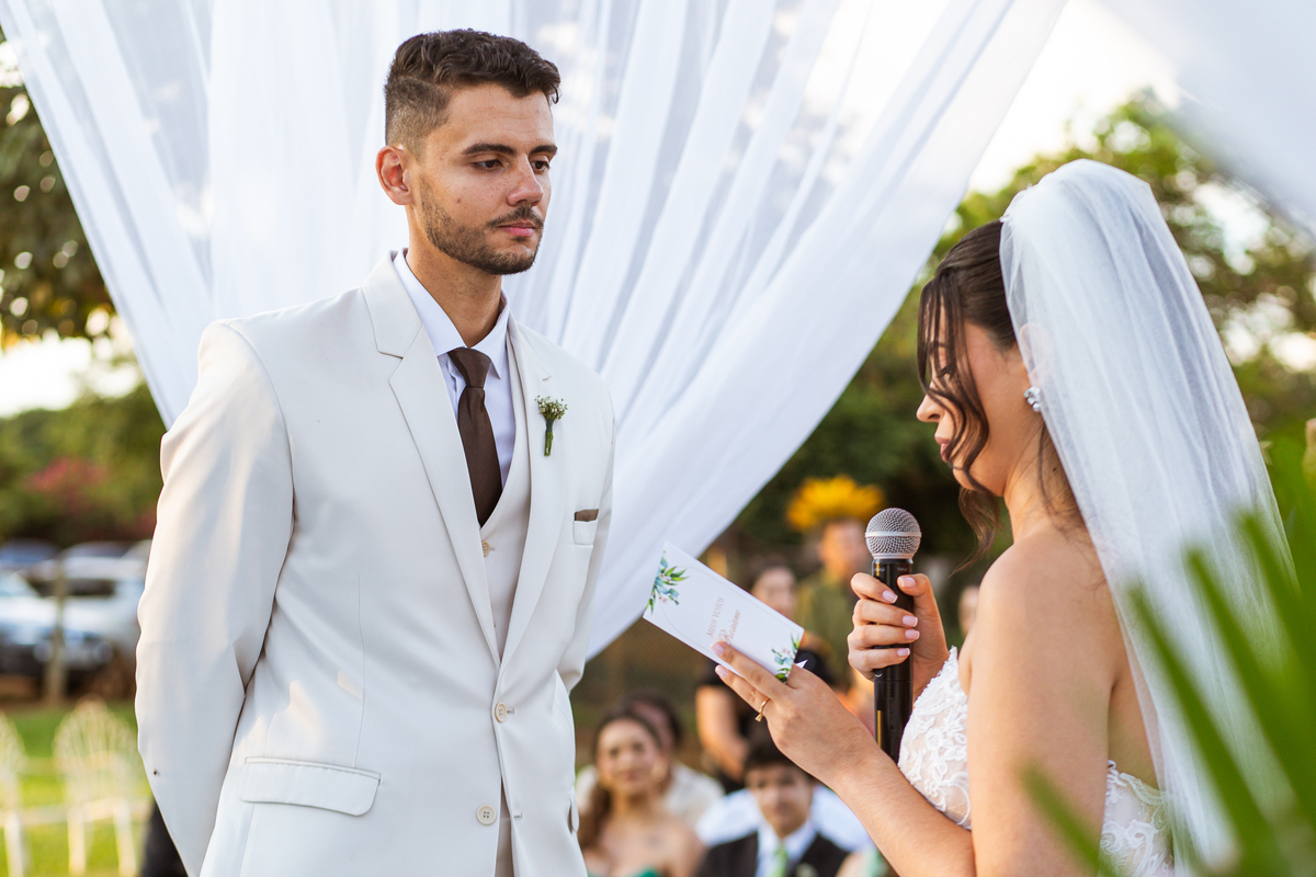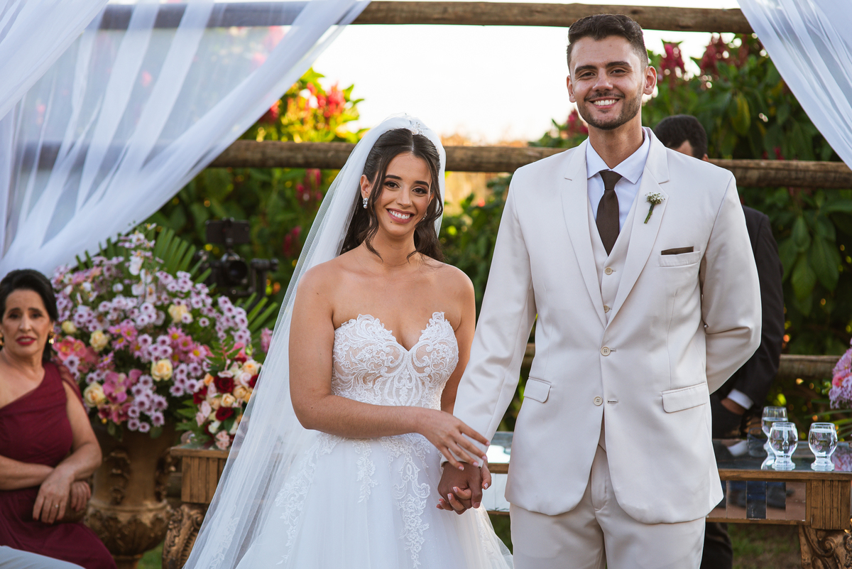 Agora, os dois estavam frente a frente, como noivos pela última vez. Os olhares se cruzaram e o sorriso veio de imediato. Nathan tentava conciliar a ansiedade com as instruções que recebeu para se posicionar. Ele beijou a mão de sua noiva, logo depois beijou também sua testa em forma de respeito. Foram segundos intermináveis. Parecia que o tempo havia parado. Depois, caminharam juntos rumo ao altar para receber a bênção. O celebrante Braz Paulo os recebeu carinhosamente e ministrou uma palavra inesquecível para os noivos e os presentes. Ele os convidou a fazer a troca de votos um para o outro e a emoção foi completa. Rosiane se declarou, gastou todos os adjetivos para enaltecer seu amado noivo. Nathan também fez bonito, e trouxe votos maravilhosos que emocionaram até mesmo seus pais.
