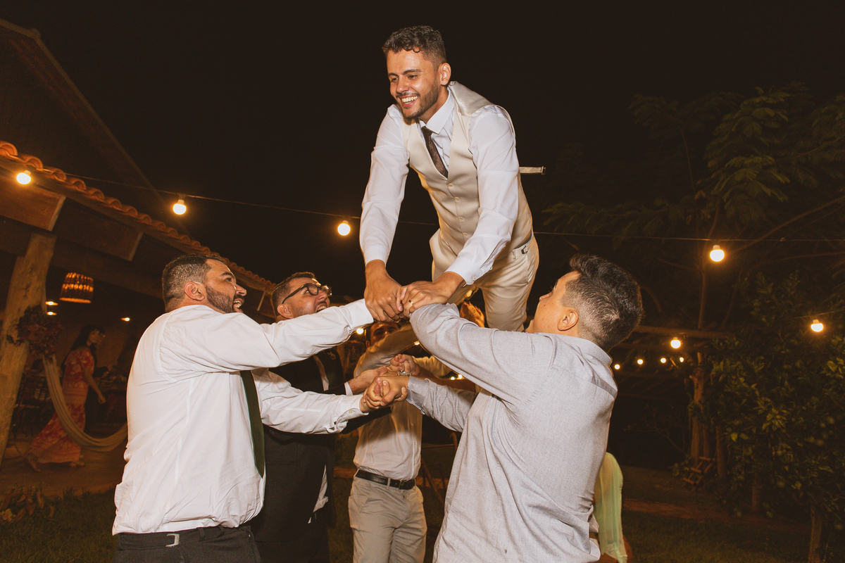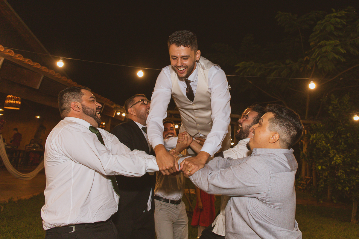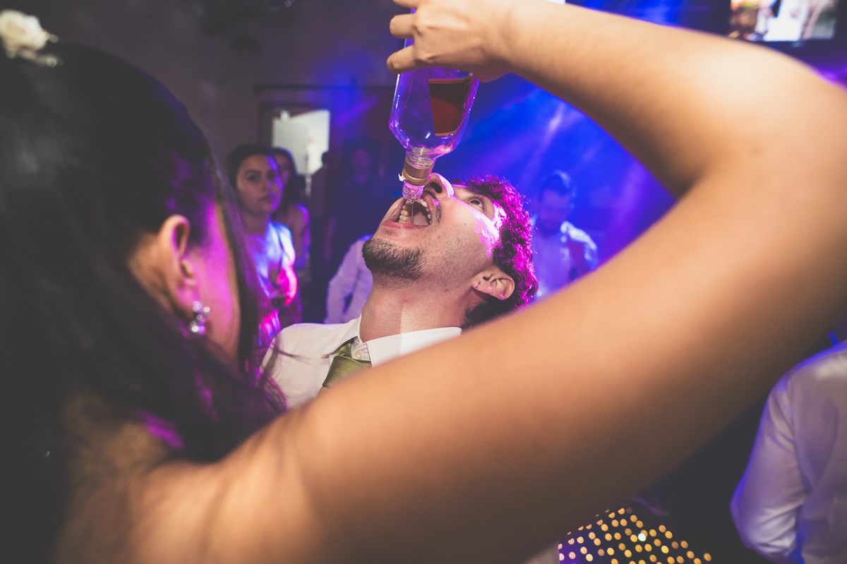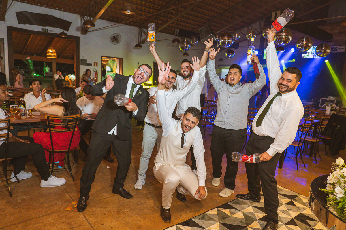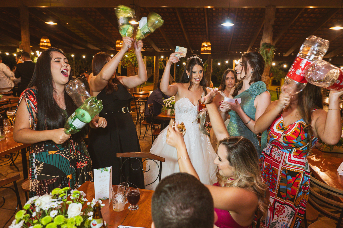 Depois, Nathan seguiu para o corte da gravata junto com seus padrinhos super animados. Rosiane foi levada quase que de supetão para também passar o sapatinho da noiva. Depois desse momento de diversão, eles foram animados pelo DJ Jacaré que colocou todo mundo pra dançar. E teve garrafa de whisky na boca de muitos convidados! A noiva percorreu a pista e ia desafiando seus amigos para uma dose sem medida. Nathan e Rosiane curtiram muito a festa. Dançaram com seus padrinhos, juntos na pista e também por todo local. A noiva jogou o seu buquê e algumas horas depois nós encerramos os trabalhos, com sentimento de dever mais do que cumprido.