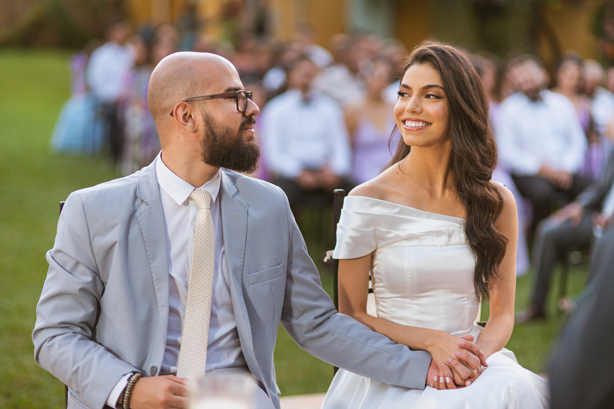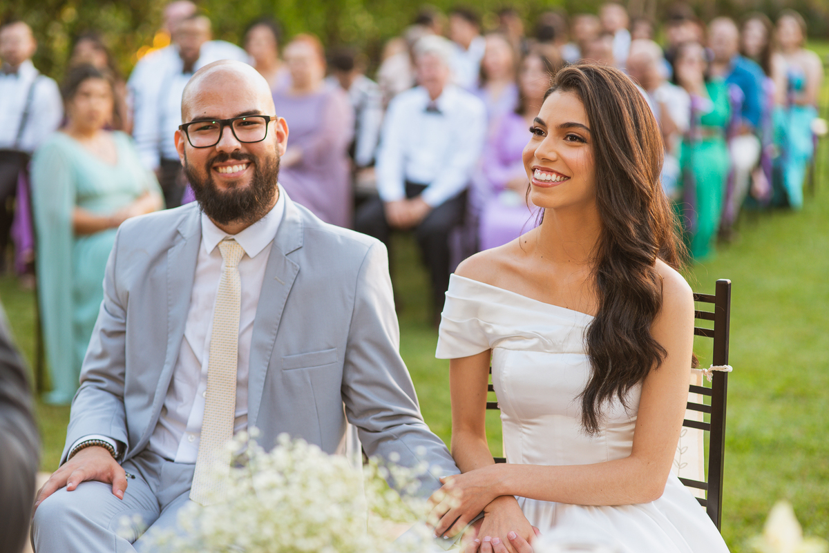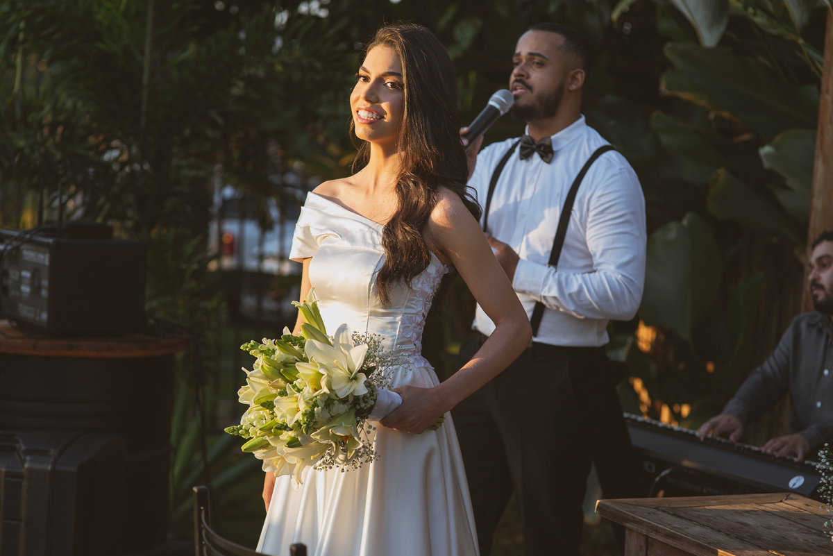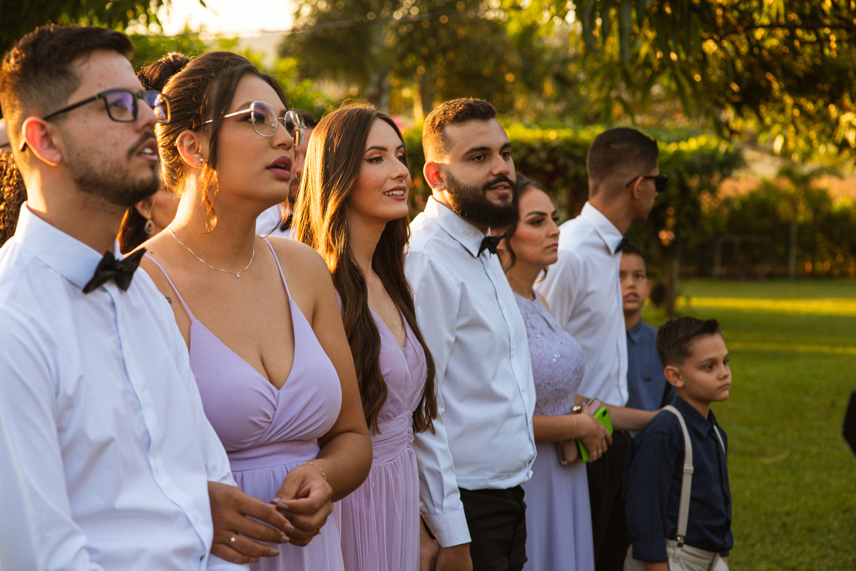 Maria não ficou para trás e também preparou votos inesquecíveis. Palavras que emocionaram Caio, sua mãe e muitos padrinhos que ali estavam. Depois de toda essa fortíssima emoção, os dois trocaram as alianças e foram declarados casados perante a lei de Deus e dos homens. Novamente, outro cântico de agradecimento e louvor foi entoado junto com os convidados que em um forte coro acompanhou os noivos e os músicos. Por fim, eles prepararam a saída com bolhinhas de sabão. Os padrinhos fizeram uma festa quando eles passaram. Fizemos alguns retratos dos noivos sozinhos e partimos para a recepção.