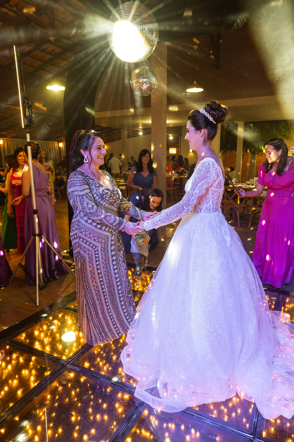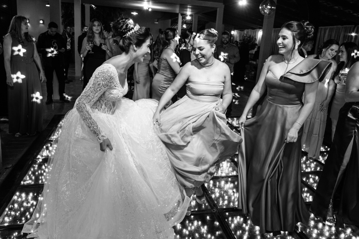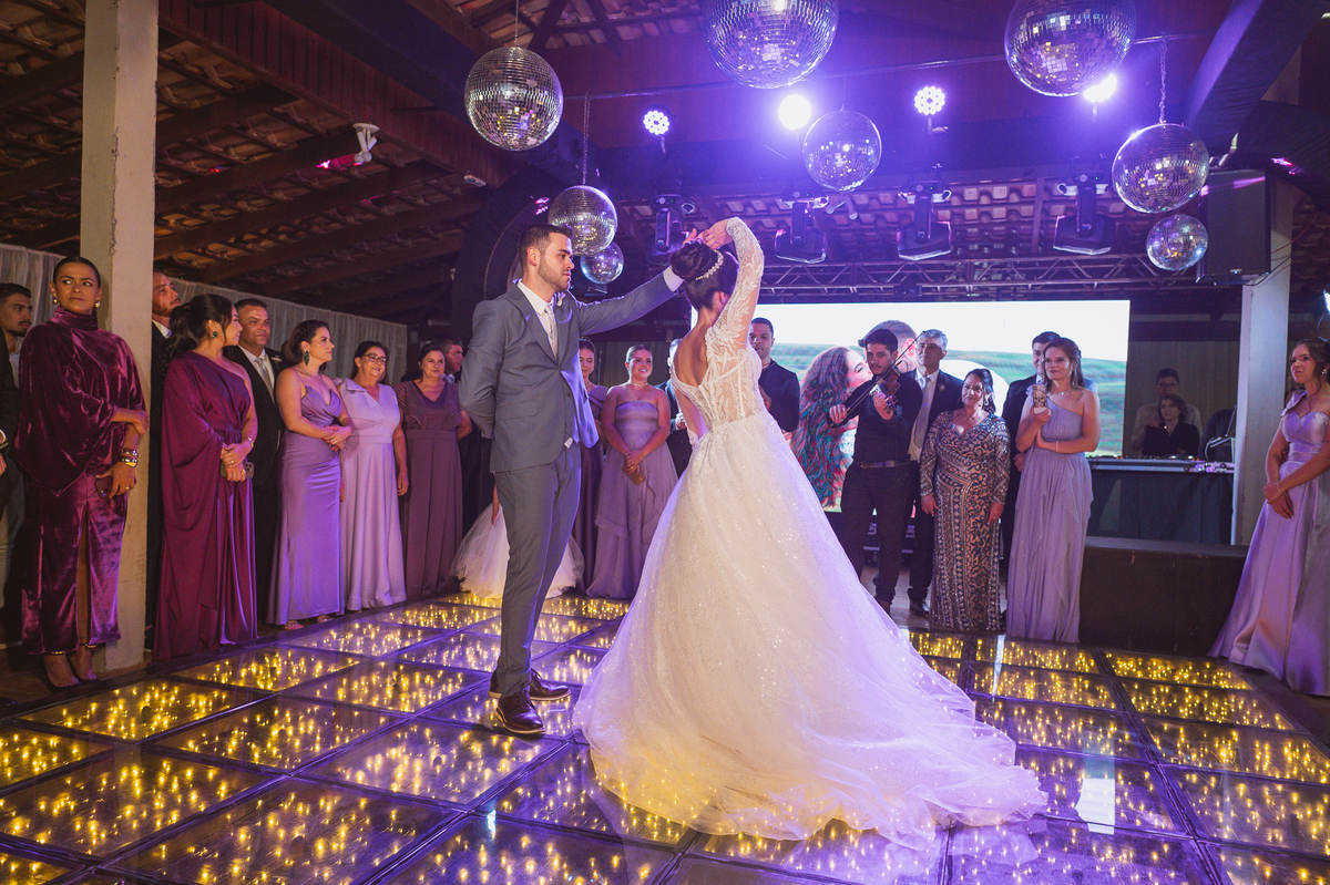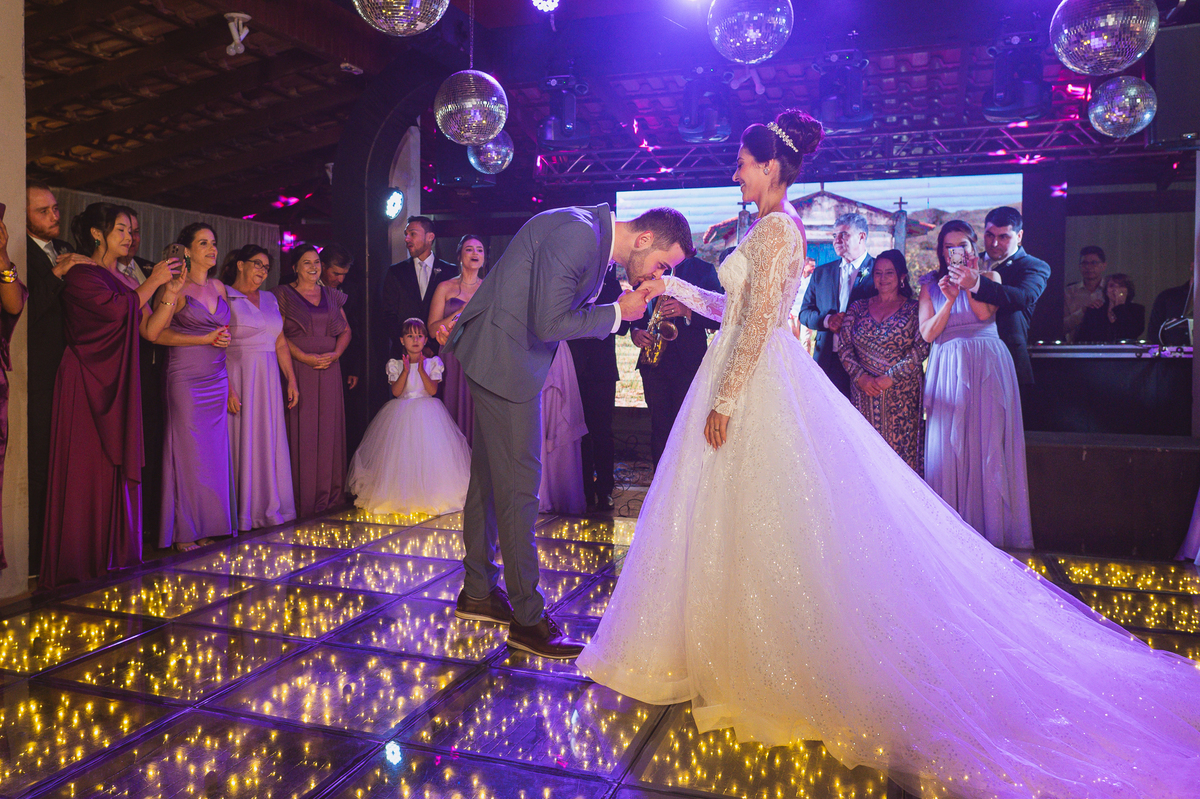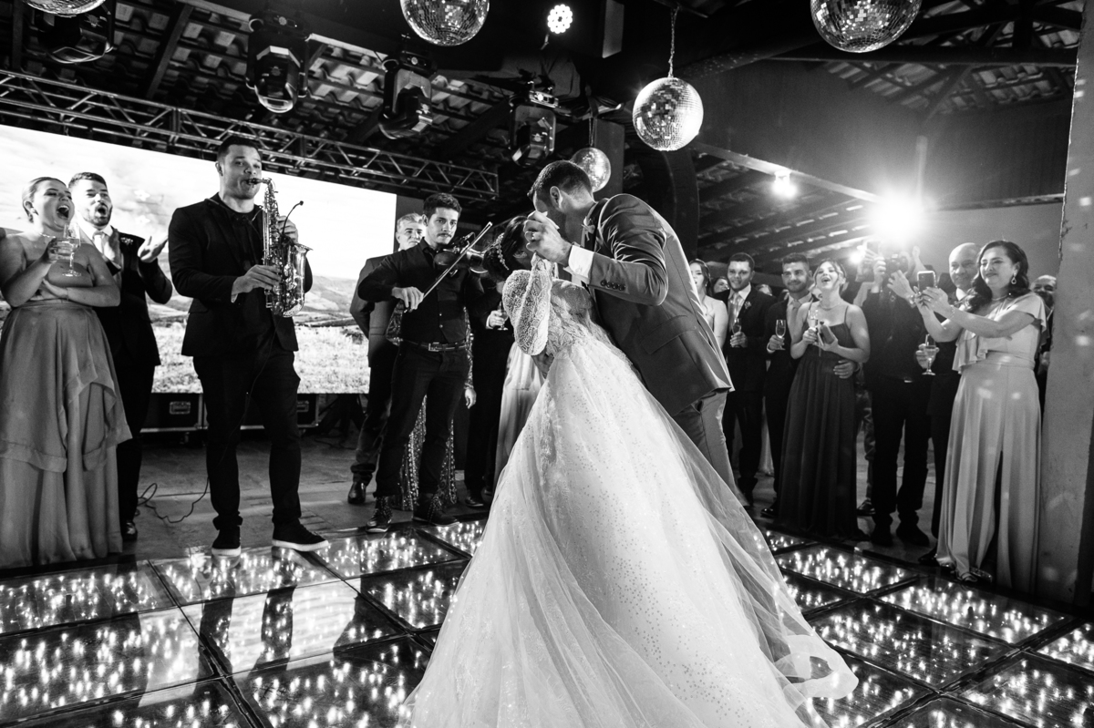 O casal foi anunciado no som e logo foram convidados a entrar na festa. Os padrinhos já aguardavam na pista de dança e receberam os recém-casados com muita alegria. Otávio e Jaqueline prepararam uma valsa maravilhosa, cheia de passos combinados e finalizada com um beijo. Eles agradeceram a presença de seus amigos e familiares e fizemos mais algumas fotos na mesa do bolo. O noivo e alguns padrinhos passaram a gravata e ele no final ficou até sem a sua cueca, que foi "comprada" por alguns padrinhos. A noiva curtiu a pista com suas madrinhas que dançaram até o fim da festa. O buquê foi jogado e uma amiga muito especial que foi a sortuda.