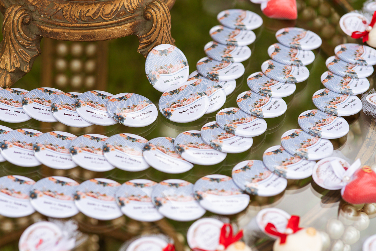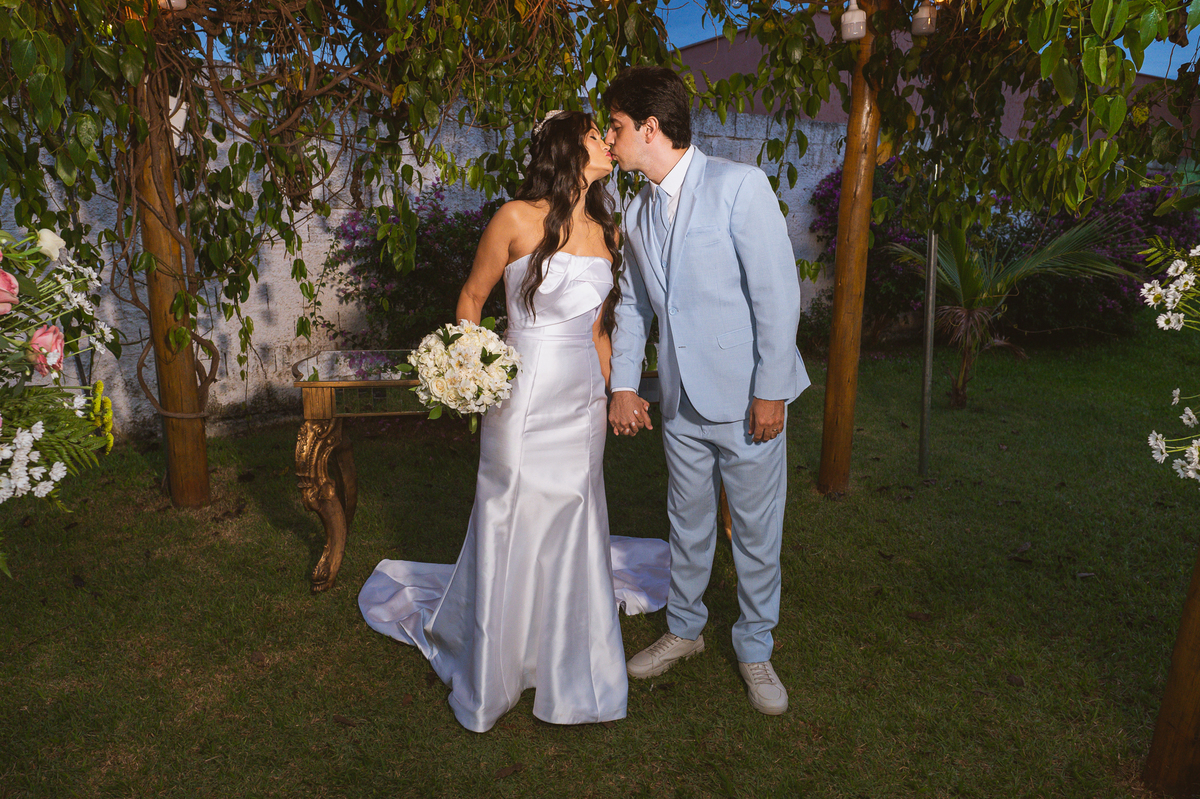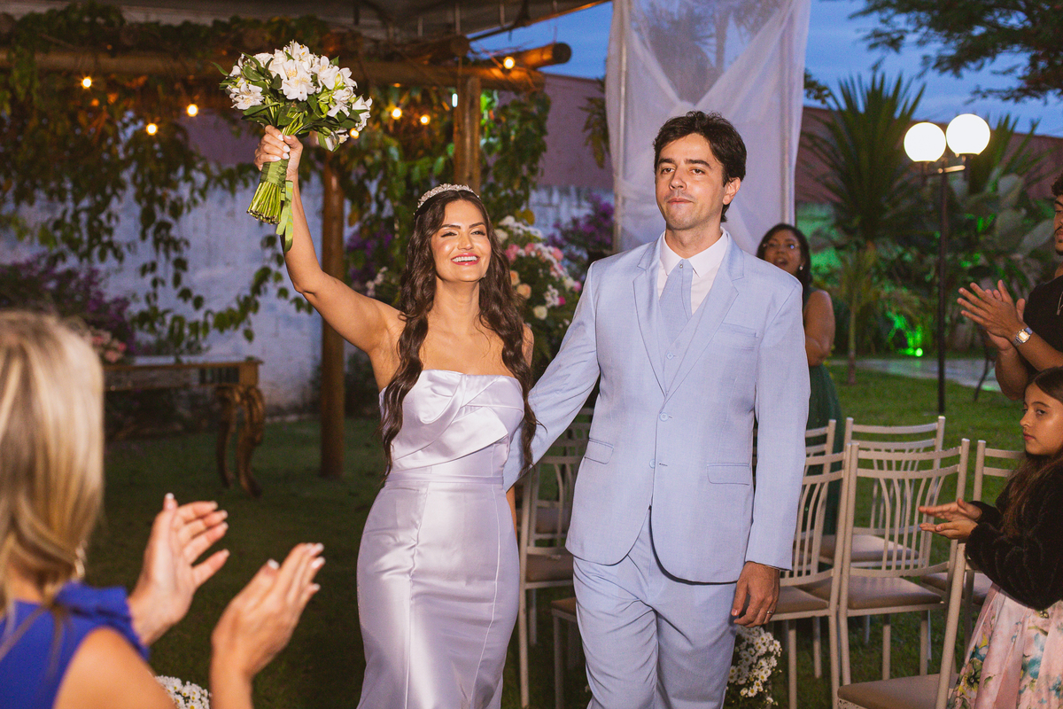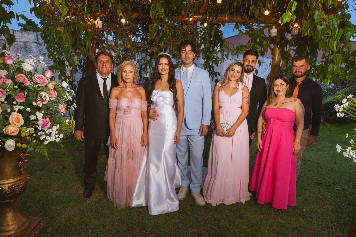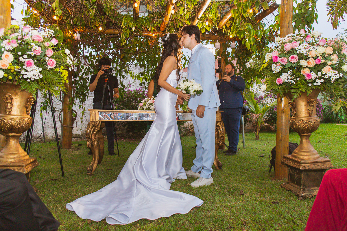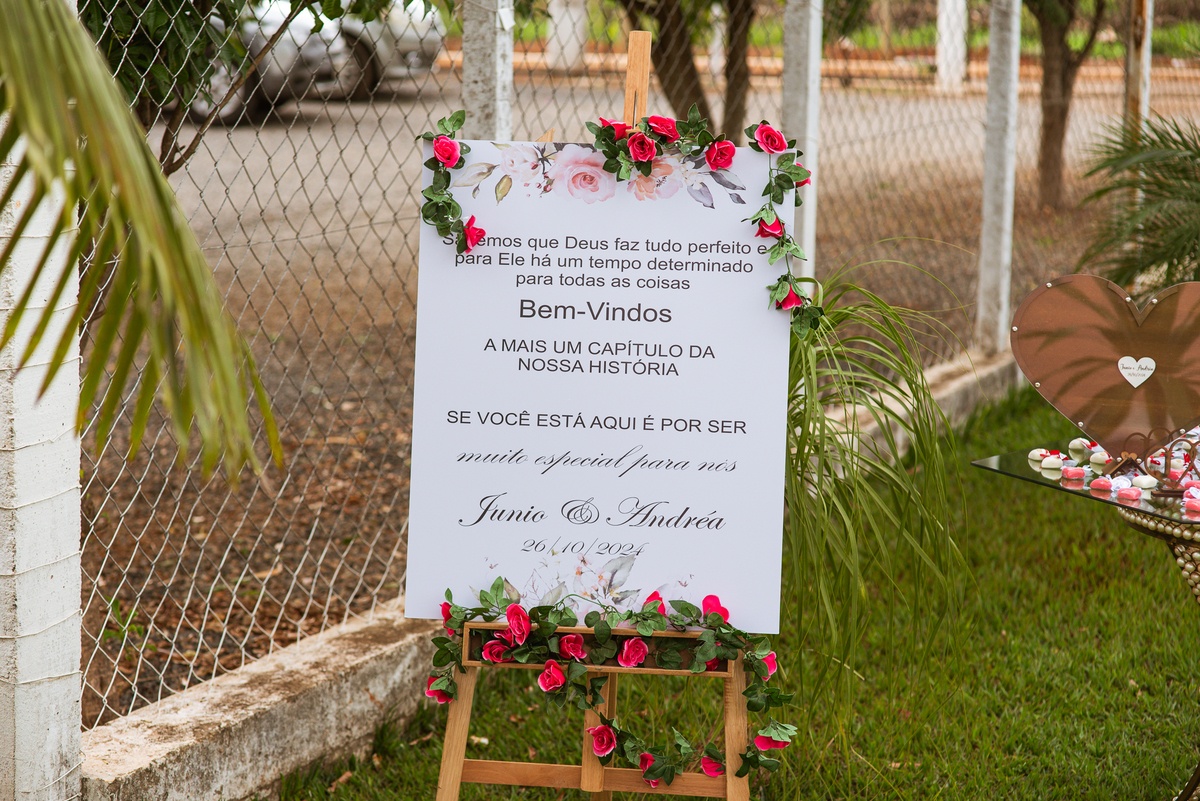 Cada um dos dois pegou seu papel e começou a contar parte da história linda dos dois. Cada detalhe emocionava todos os presentes e também quem recebia a declaração. Junio começou e posteriormente Andréa fez sua declaração. Bastante emocionada, ela contou sobre como gosta do jeitinho de Junio e sobre como seu cuidado com ela a fez ter certeza de que ele era a pessoa certa para passar o resto de sua vida junto. Por fim, uma oração e votos de felicidades de todos para os recém-casados. Fizemos as fotografias de praxe com os padrinhos e encerramos a cerimônia. Na saída, bastante animação e um beijo de cinema quase que de surpresa, dado pelos dois em comemoração.