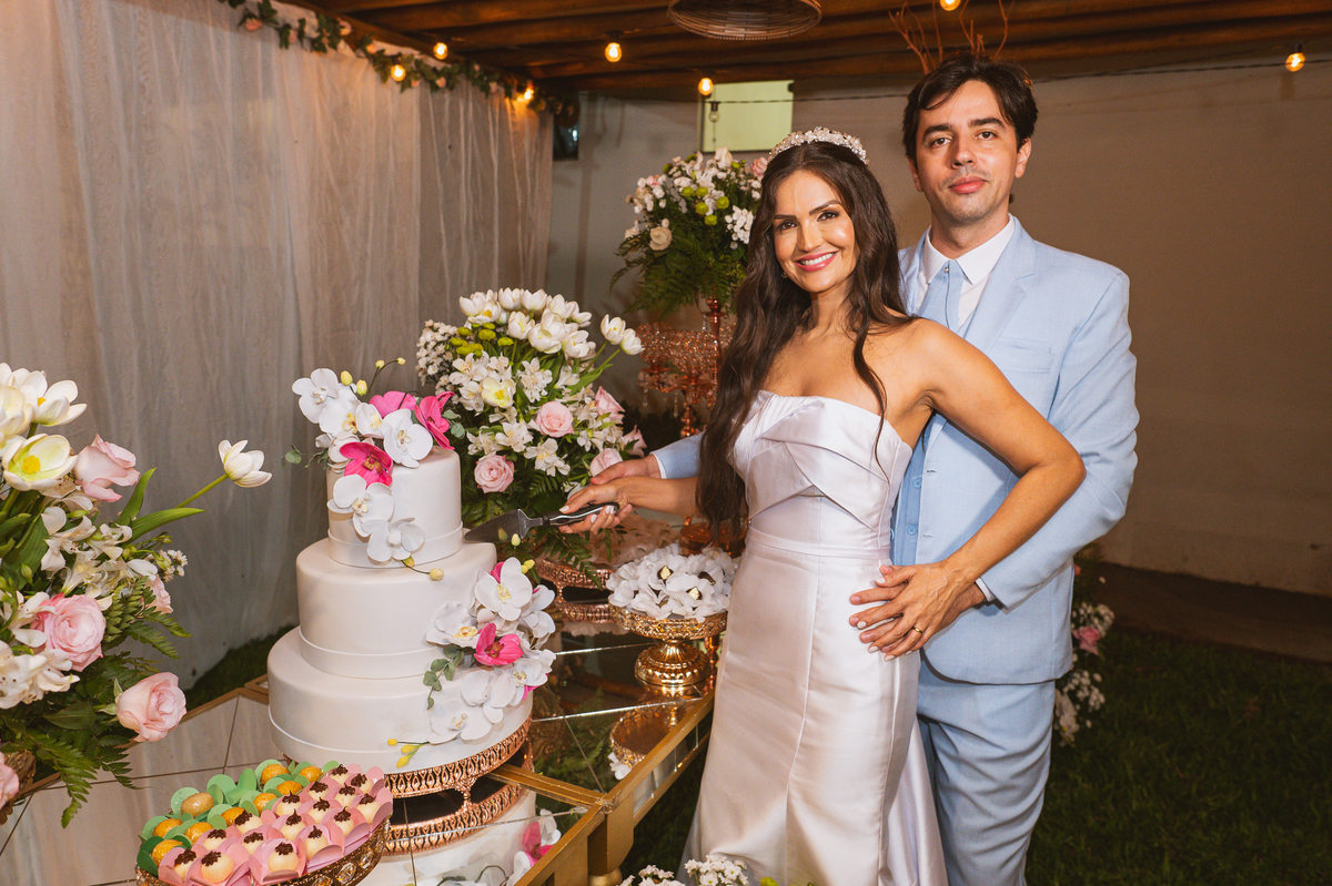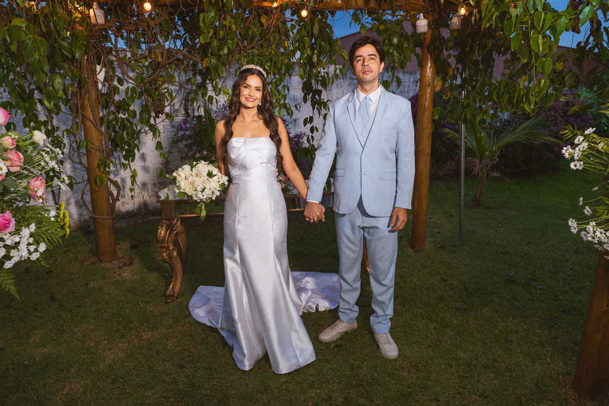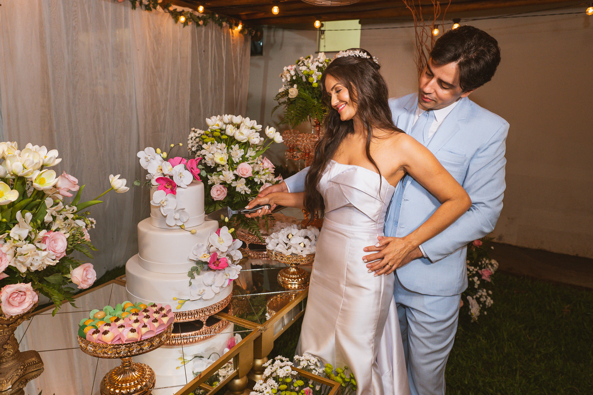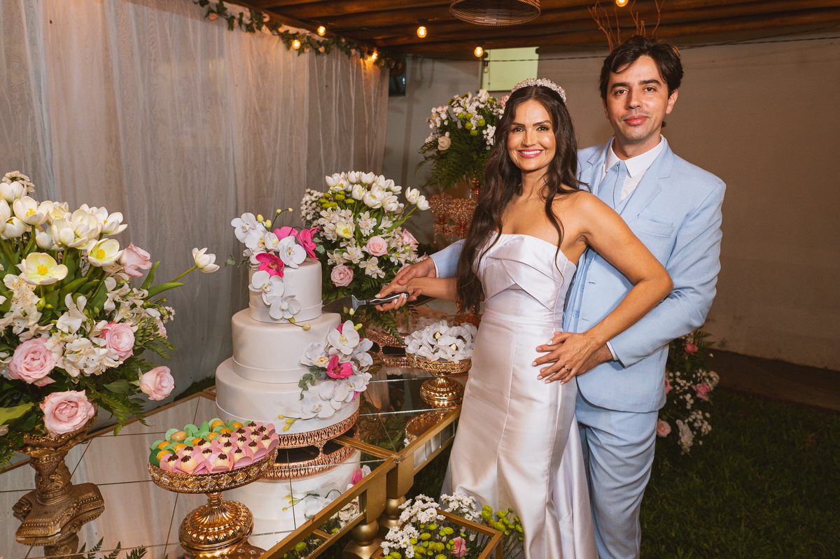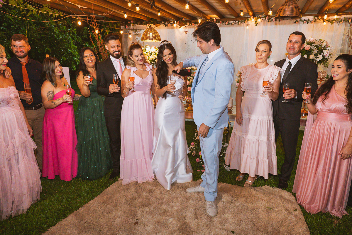 Cada um dos dois pegou seu papel e começou a contar parte da história linda dos dois. Cada detalhe emocionava todos os presentes e também quem recebia a declaração. Junio começou e posteriormente Andréa fez sua declaração. Bastante emocionada, ela contou sobre como gosta do jeitinho de Junio e sobre como seu cuidado com ela a fez ter certeza de que ele era a pessoa certa para passar o resto de sua vida junto. Por fim, uma oração e votos de felicidades de todos para os recém-casados. Fizemos as fotografias de praxe com os padrinhos e encerramos a cerimônia. Na saída, bastante animação e um beijo de cinema quase que de surpresa, dado pelos dois em comemoração.