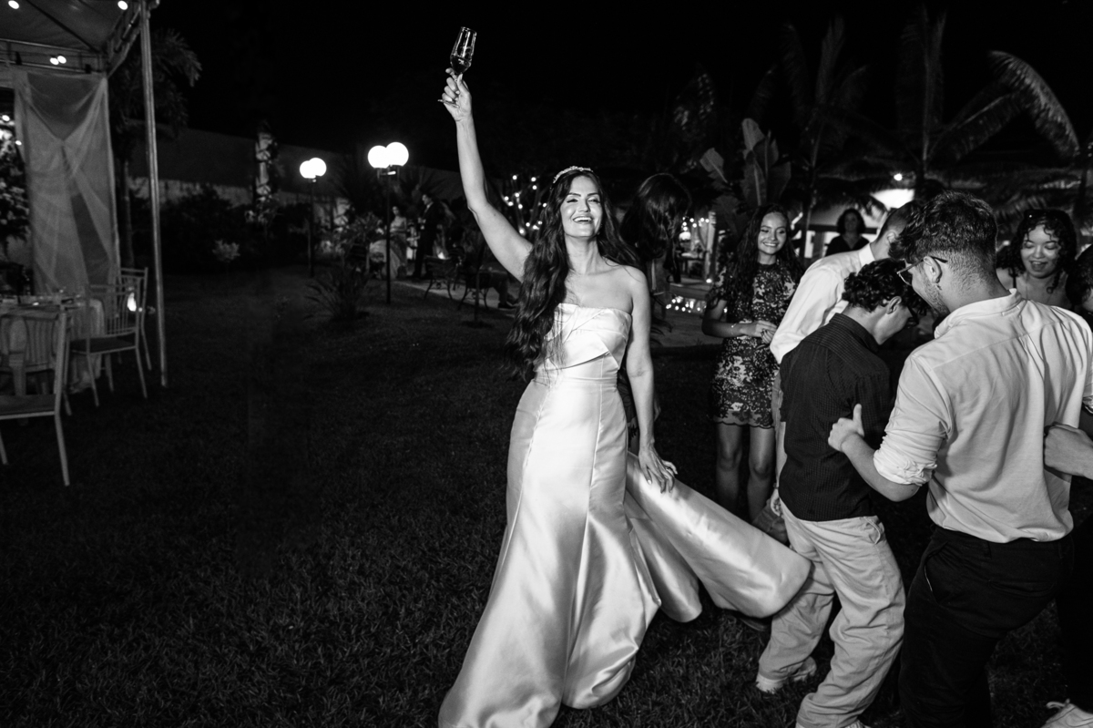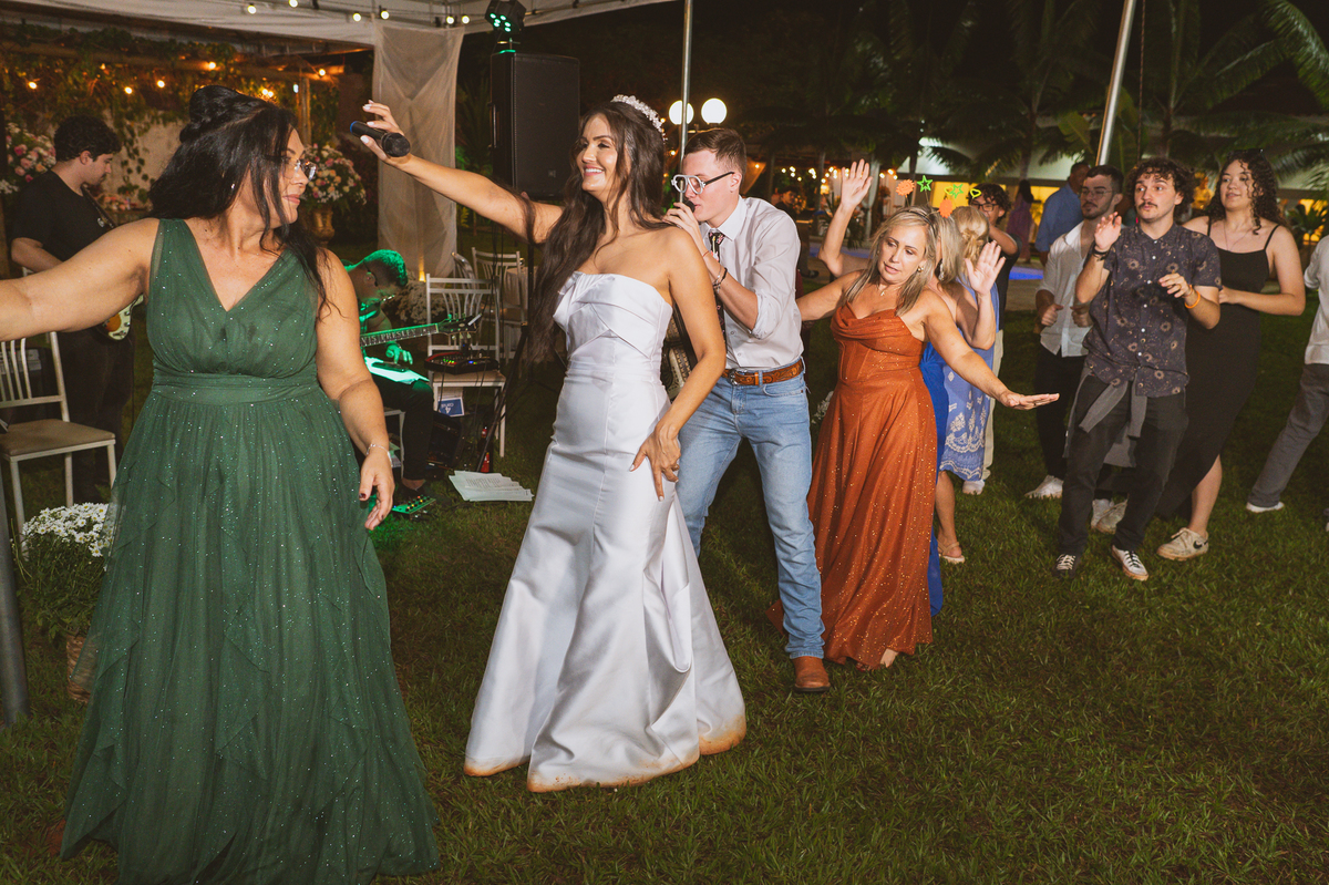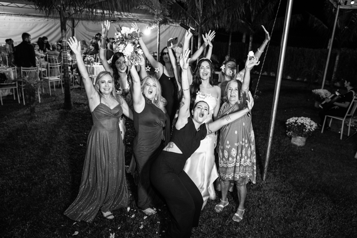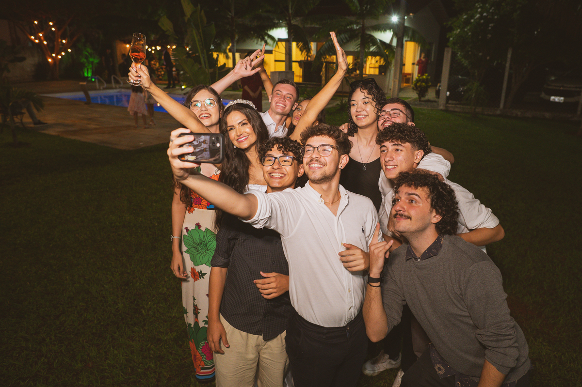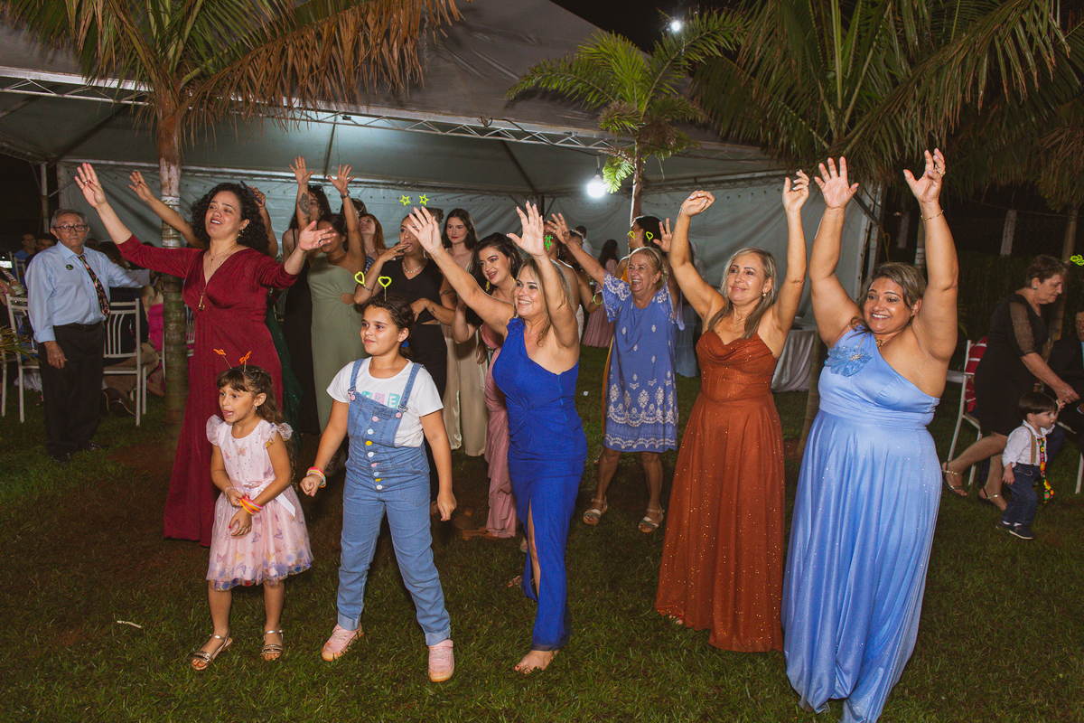 Os alunos de Andréa fizeram uma pequena homenagem, considerando-a como a melhor professora de toda a turma. Eles se juntaram e comemoraram muito junto com ela. O sanfoneiro não deixou ninguém ficar parado e muitos se aproximaram de lá para dançar. Andréa ainda convidou as solteiras para tentarem pegar o buquê que ficou com uma das convidadas, que pulou bem alto e agarrou com toda força. Depois de todos os momentos divertidos, encerramos nossa participação no evento, despedindo dos noivos e indo embora com a certeza de mais um trabalho realizado com extrema dedicação.