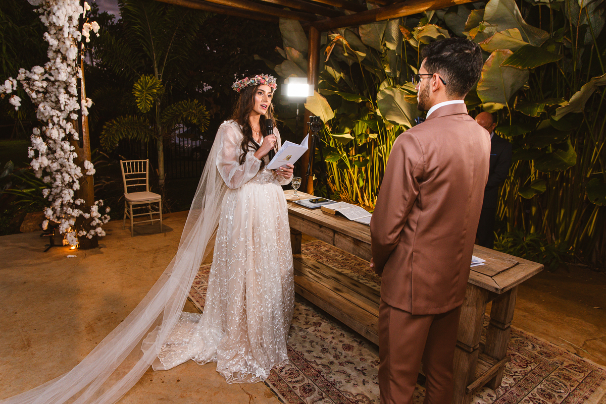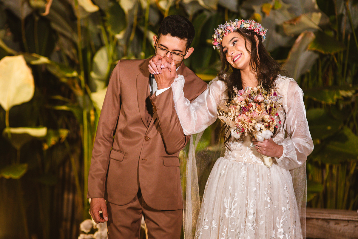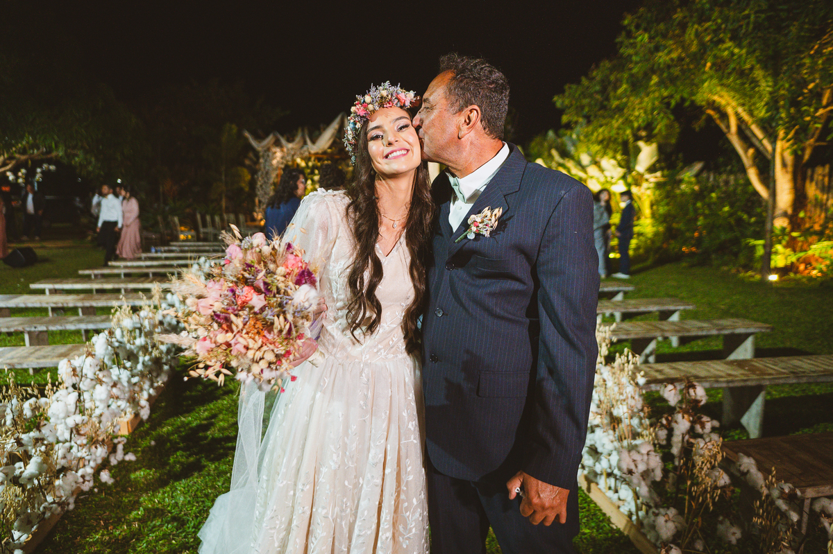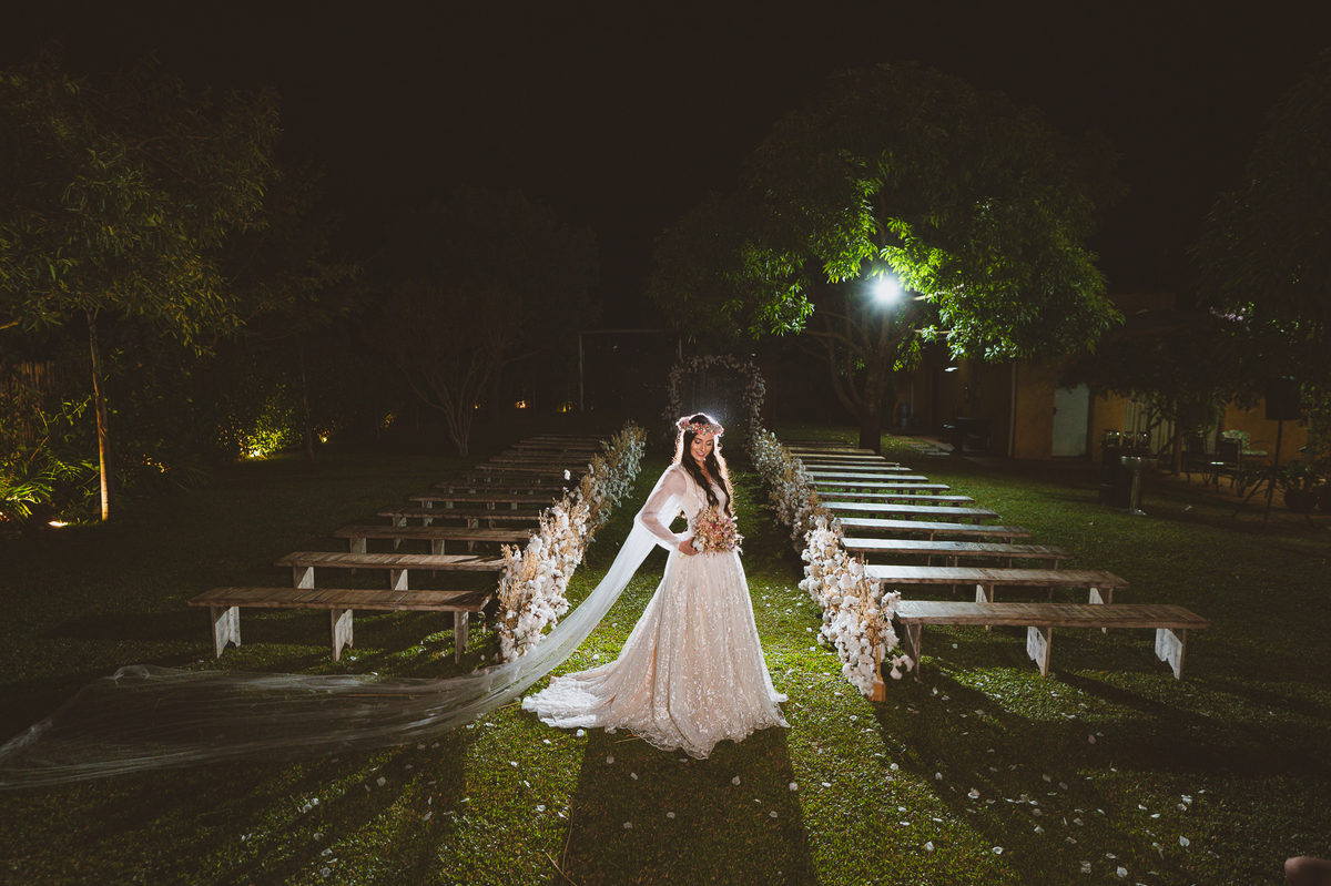 Lorrany pensou em todos os detalhes que queria em seu casamento. Desde o penteado, passando pelo vestido até a decoração do local. Tudo minimamente planejado, não só por ela mas pelo noivo, que também participou de tudo, do início ao fim. E valeu super a pena. Eles acompanharam juntos toda a preparação, desde os ensaios com os músicos até o ensaio do casamento em si no local. Tudo perfeitamente alinhado conforme os dois desejaram em seus corações, por muito tempo. É muito bacana ver o esforço do casal ser recompensado com tudo sendo perfeitamente realizado como eles desejaram.