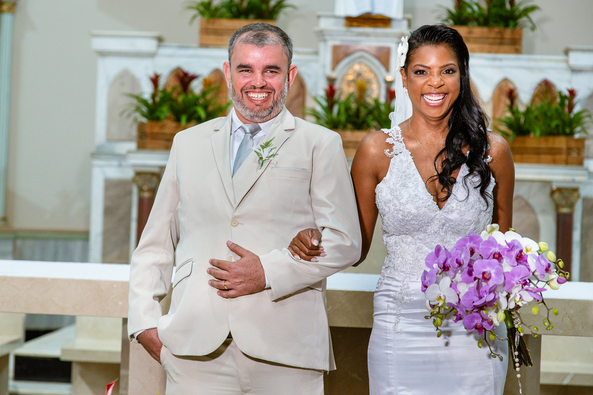 Bastou a porta se abrir e ele vislumbrar a sua noiva que não teve como segurar mais. Os olhos marejados de lágrimas indicavam um amor e um carinho imensuráveis. Vera Lúcia distribuía sorrisos em meio ao corredor. Passo a passo, eles caminharam até o local demarcado, onde Henrique os encontraria. Ela, despedindo-se de seu pai, recebeu um carinho e respeitoso beijo em sua fronte. O noivo recebeu os cumprimentos de seu sogro que entregou a mão de sua filha à ele. Finalmente, o encontro final aconteceu. Noiva e noivo frente à frente para agora caminharem juntos para sua bênção matrimonial. Henrique recebeu a mão de sua noiva, com um carinhoso beijo também selou aquele momento para sempre.