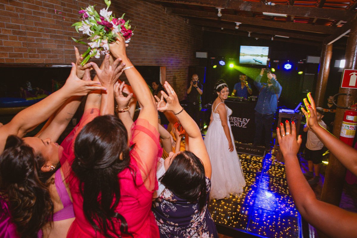 Finalizamos a noite com a noiva jogando seu buquê e fazendo a felicidade das solteironas. Ainda teve tempo de uma linda homenagem de Bianca para sua mãe e sua sogra, com uma réplica do buquê para cada um delas, além de uma mensagem linda dita para as duas no microfone. A banda animou a galera e o DJ ainda teve seu tempo de fazer um show com a galera que cantou e animou até altar horas. Encerramos nosso trabalho com a certeza de mais um dia incrível, com recordações inesquecíveis e mais um casamento realizado com perfeição.