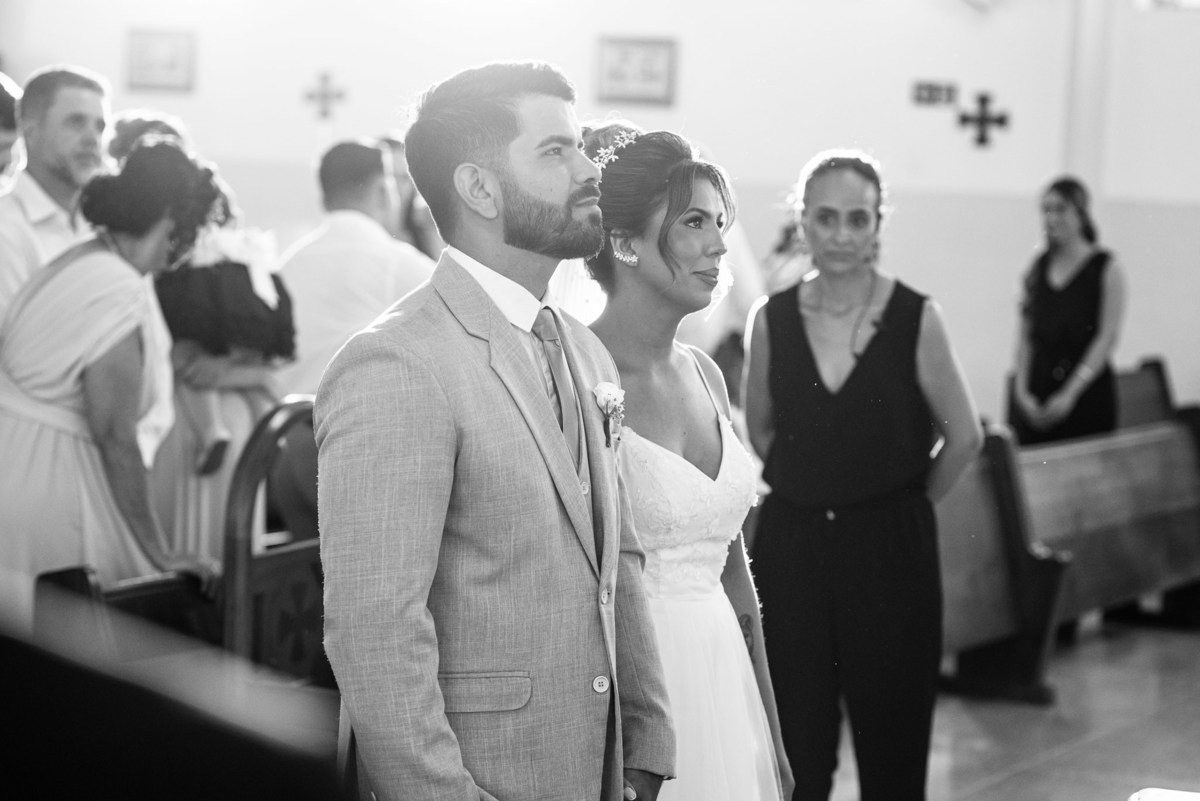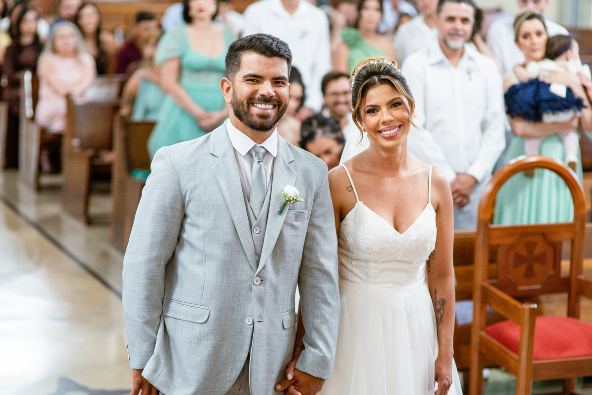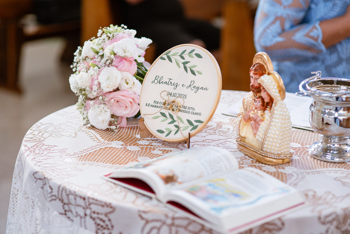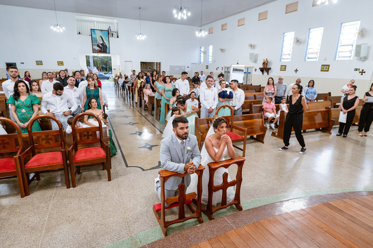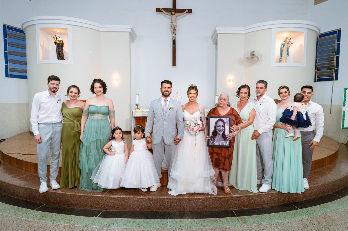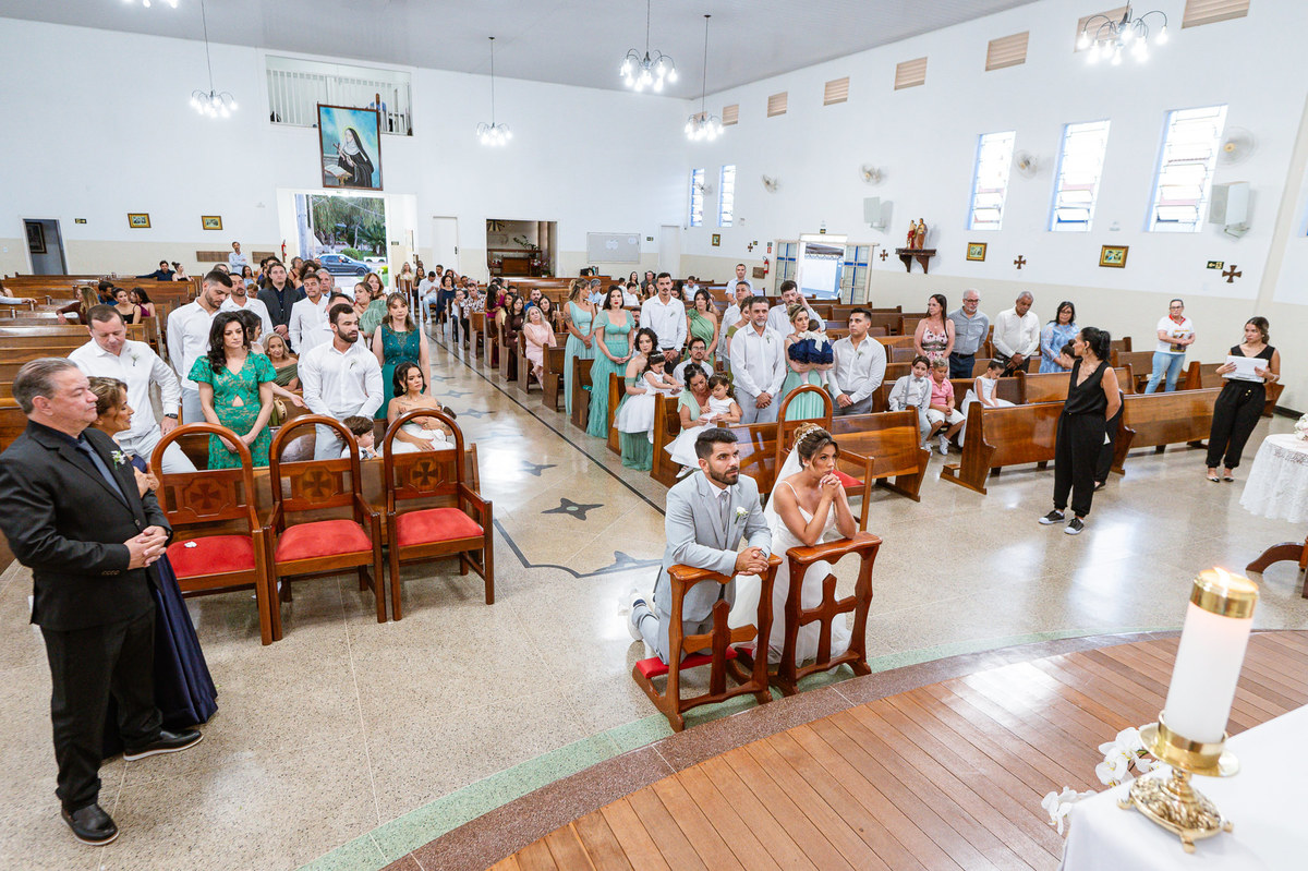 Poucos passos adiante e eles estavam prontos para se encontrar. Bheatriz despediu-se de Matheus. Rayan se aproximou, sendo recebido com um carinhoso abraço do Matheuzinho. Enfim, eram somente noivo e noiva frente a frente. Os olhares de amor e felicidade eram os únicos que se entrelaçavam naquele instante. Com um carinhoso beijo, Rayan selou aquele momento para sempre. Eles agora caminharam juntos, rumo ao altar para depois saírem dali como uma só carne. O padre os recebeu carinhosamente e trouxe uma palavra edificante e que os noivos lembrarão para sempre do que foi dito na homilia. Depois, ele os convidou a trocarem seus votos de amor eterno um para o outro. Convidou as alianças para serem trazidas, as ungiu com a água benta e pediu para que os dois colocassem um no dedo do outro. Com as palavras repetidas por eles, os dois juraram seu amor e fidelidade eternas. Com muitas palmas e festa, Bheatriz e Rayan foram declarados casados perante Deus e as testemunhas. Eles assinaram os documentos e fizemos nossas tradicionais fotografias com os padrinhos e parentes dos dois. Posteriormente, a fila de padrinhos foi formada do lado de fora da Igreja. Com muitas bolhinhas de sabão, os recém-casados foram recebidos com muita festa. Eles se despediram de alguns convidados e partimos pro nosso mini ensaio de casados.
