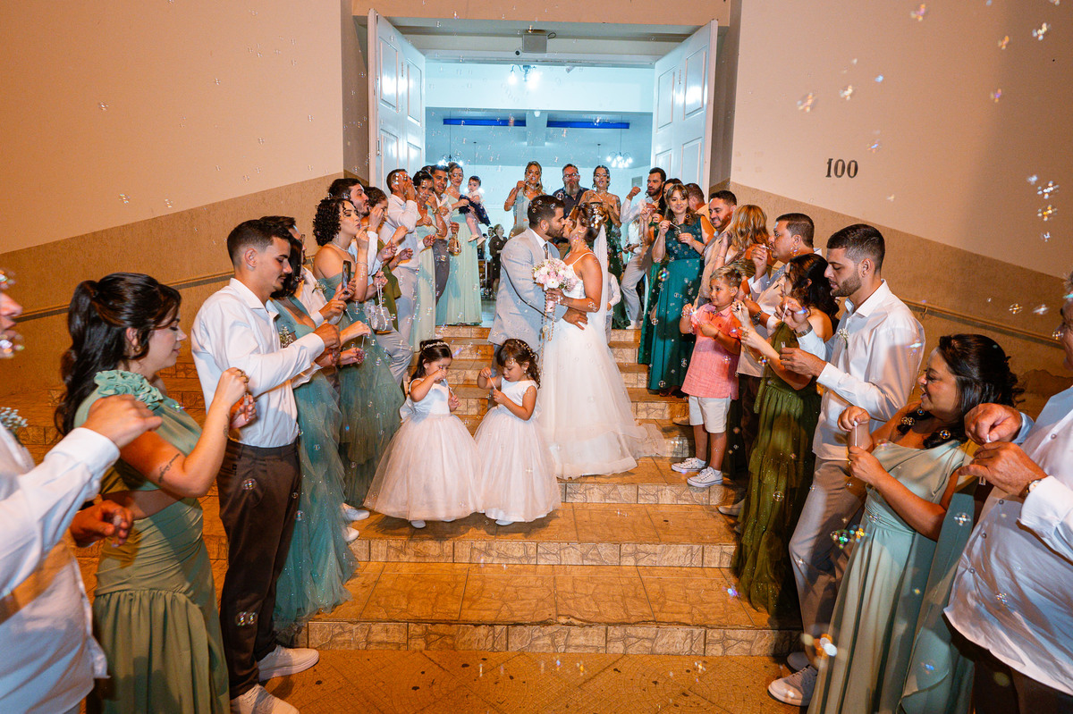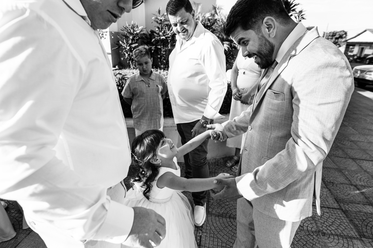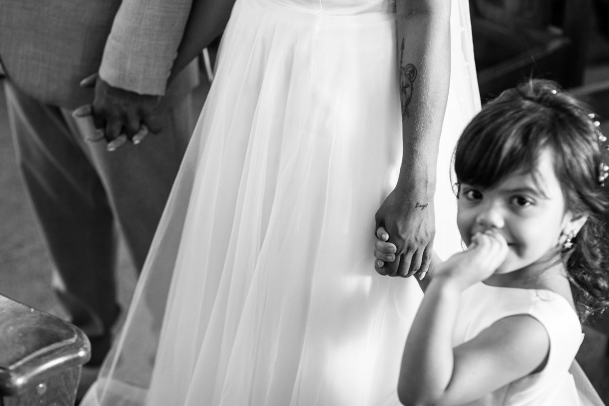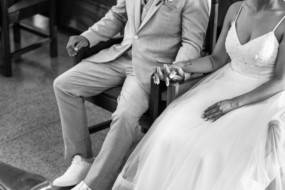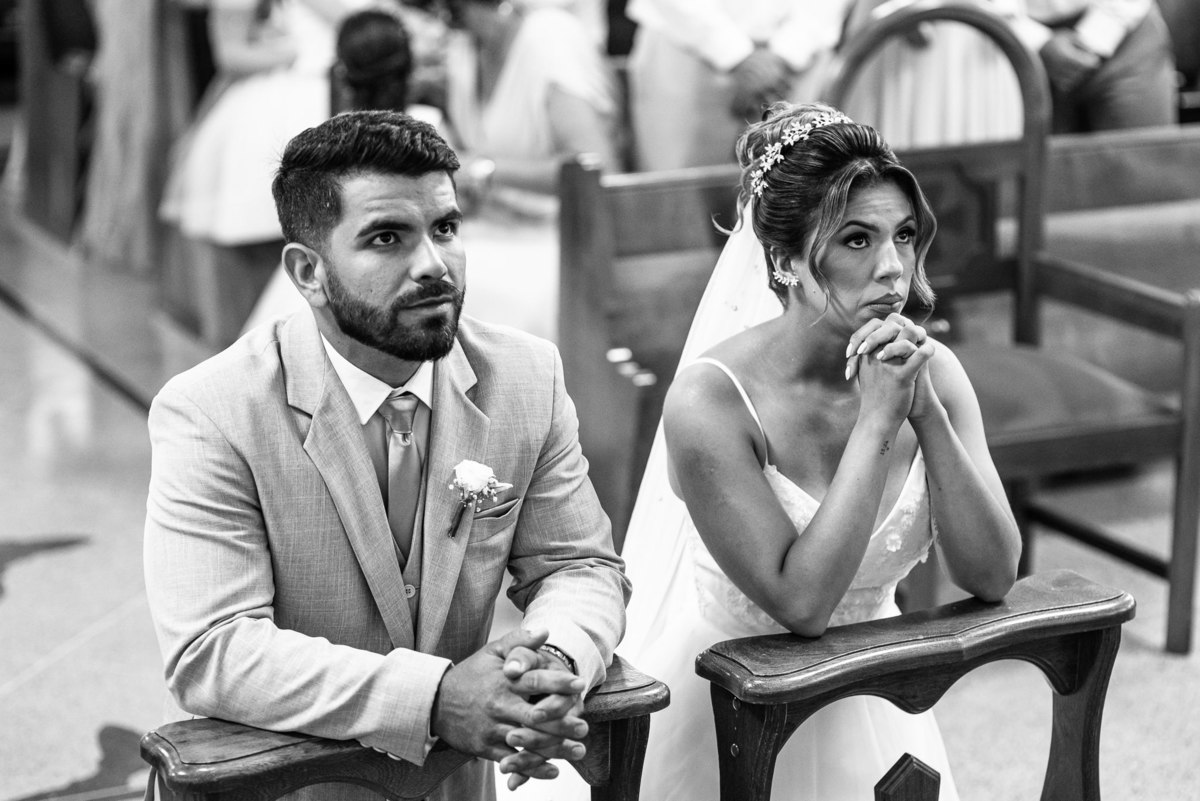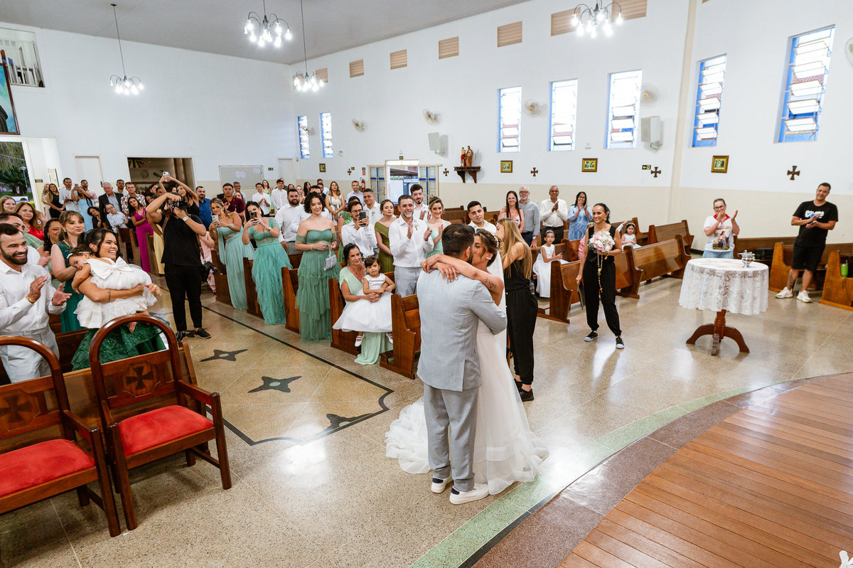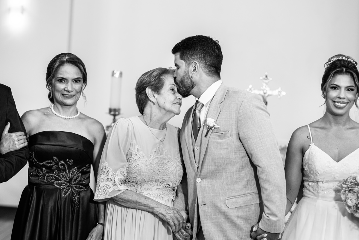 Poucos passos adiante e eles estavam prontos para se encontrar. Bheatriz despediu-se de Matheus. Rayan se aproximou, sendo recebido com um carinhoso abraço do Matheuzinho. Enfim, eram somente noivo e noiva frente a frente. Os olhares de amor e felicidade eram os únicos que se entrelaçavam naquele instante. Com um carinhoso beijo, Rayan selou aquele momento para sempre. Eles agora caminharam juntos, rumo ao altar para depois saírem dali como uma só carne. O padre os recebeu carinhosamente e trouxe uma palavra edificante e que os noivos lembrarão para sempre do que foi dito na homilia. Depois, ele os convidou a trocarem seus votos de amor eterno um para o outro. Convidou as alianças para serem trazidas, as ungiu com a água benta e pediu para que os dois colocassem um no dedo do outro. Com as palavras repetidas por eles, os dois juraram seu amor e fidelidade eternas. Com muitas palmas e festa, Bheatriz e Rayan foram declarados casados perante Deus e as testemunhas. Eles assinaram os documentos e fizemos nossas tradicionais fotografias com os padrinhos e parentes dos dois. Posteriormente, a fila de padrinhos foi formada do lado de fora da Igreja. Com muitas bolhinhas de sabão, os recém-casados foram recebidos com muita festa. Eles se despediram de alguns convidados e partimos pro nosso mini ensaio de casados.