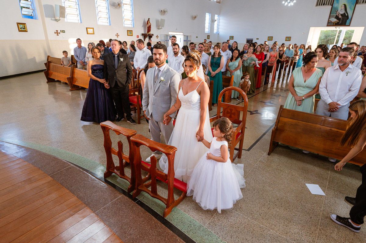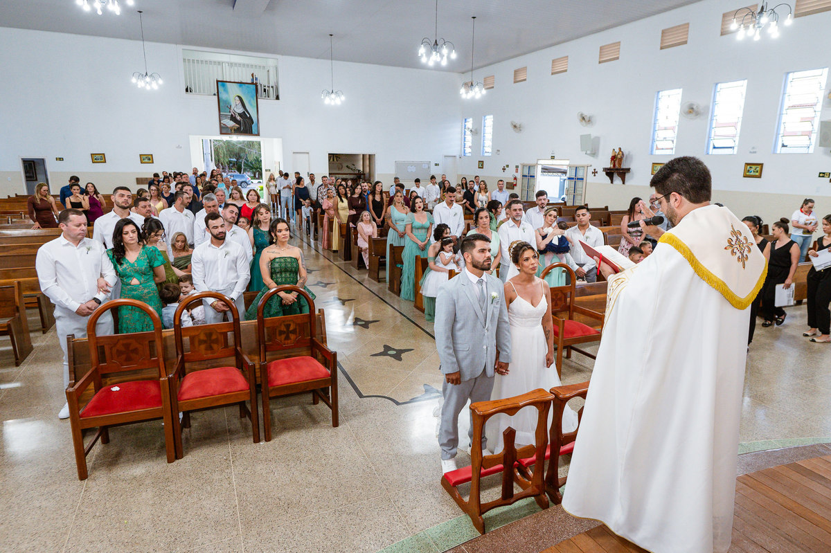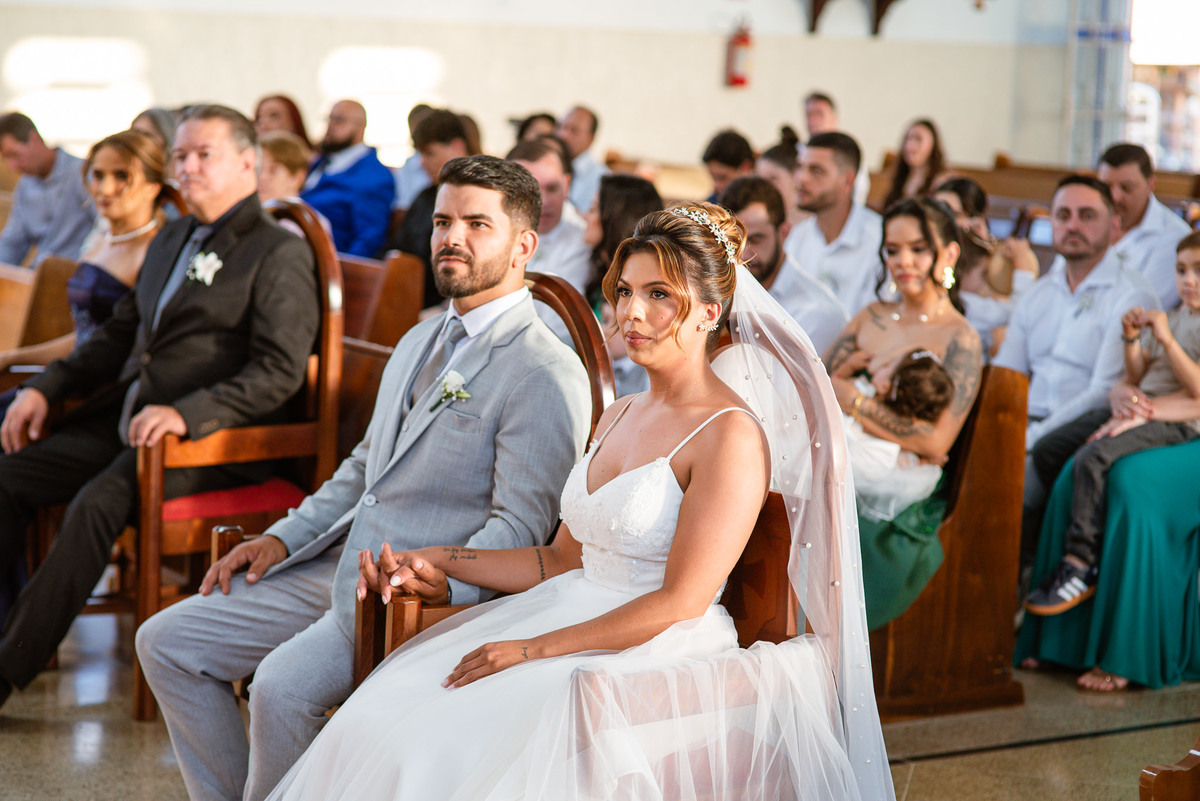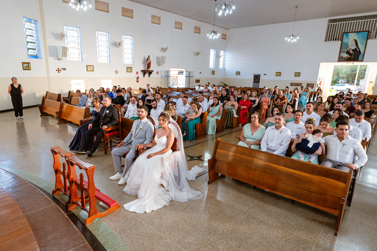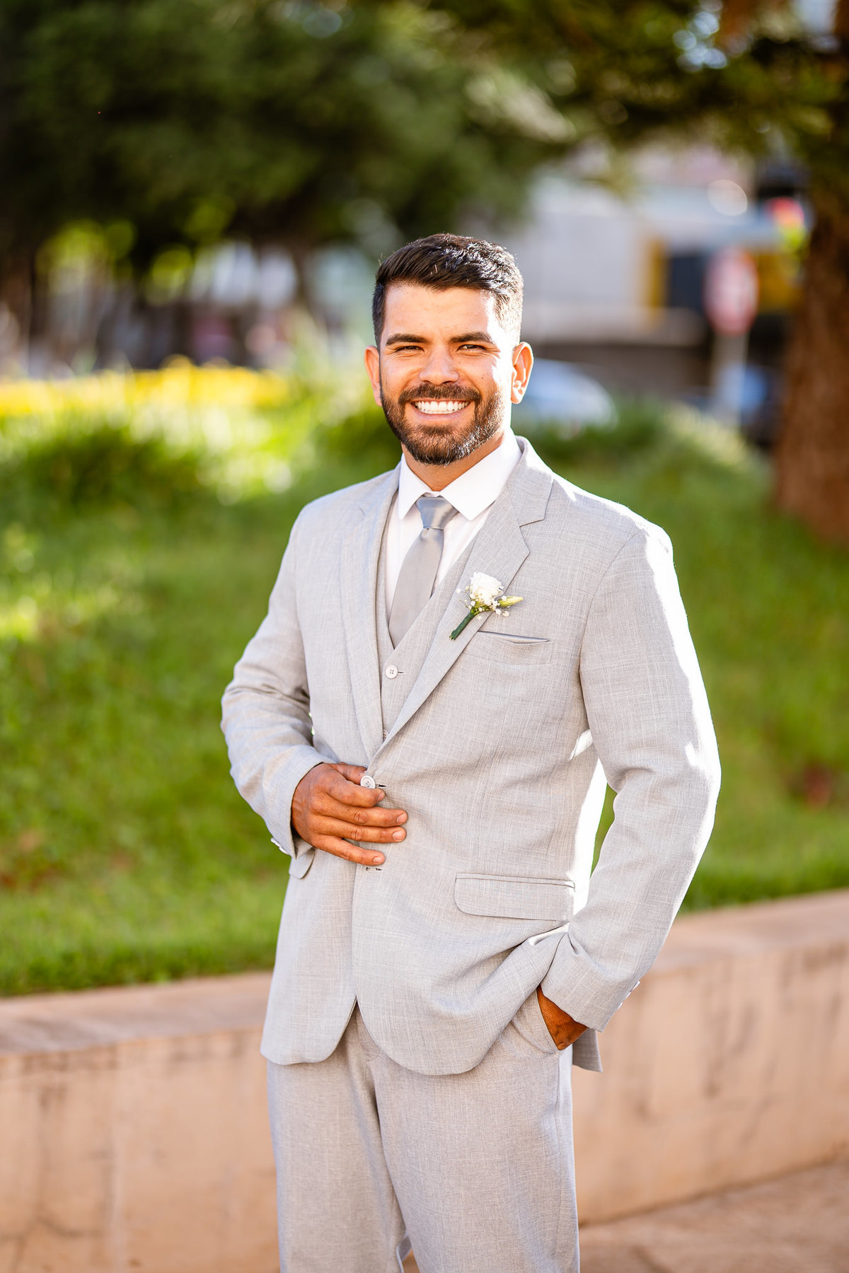 Lá em Presidente Olegário, Rayan realizava os últimos ajustes. Colocou seu terno e partiu para a celebração. A Igreja Matriz já estava de portas abertas aguardando a chegada dos convidados. Enquanto isso, Bheatriz havia terminado seu look. Agora completa, make, penteado e vestido lindo, a noiva finalmente estava pronta para se casar. O coração batia mais forte a cada segundo. Fizemos nossos retratos da noiva e já partimos pra Igreja. Na porta, os padrinhos todos alinhados chegavam e recebiam os cumprimentos do noivos. Rayan estava radiante, sorrindo para todos os seus amigos e padrinhos de casamento. Fotografamos ele e seus pais sempre com sorriso no rosto característico dele. Ouvimos o carro da noiva chegar e corremos para lá. Ela estava linda, radiante como o noivo. O brilho da luz do sol reluzia em seu rosto, seus olhos brilhavam e o sorriso vinha automaticamente. Fizemos nossas fotografias da noiva no carro e deixamos ela ali para iniciarmos a cerimônia. A cantora Aletis Garcia e sua equipe, foram os responsáveis por trazer as notas musicais doces ao evento.