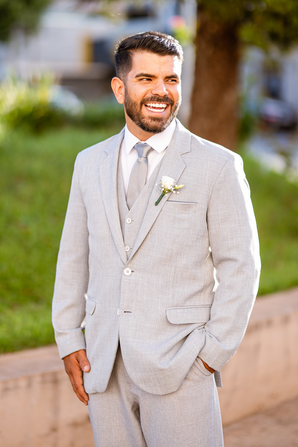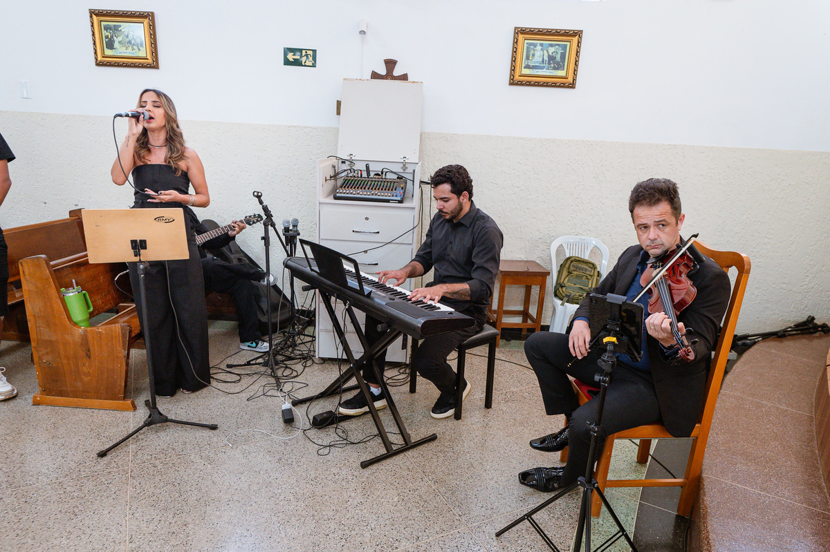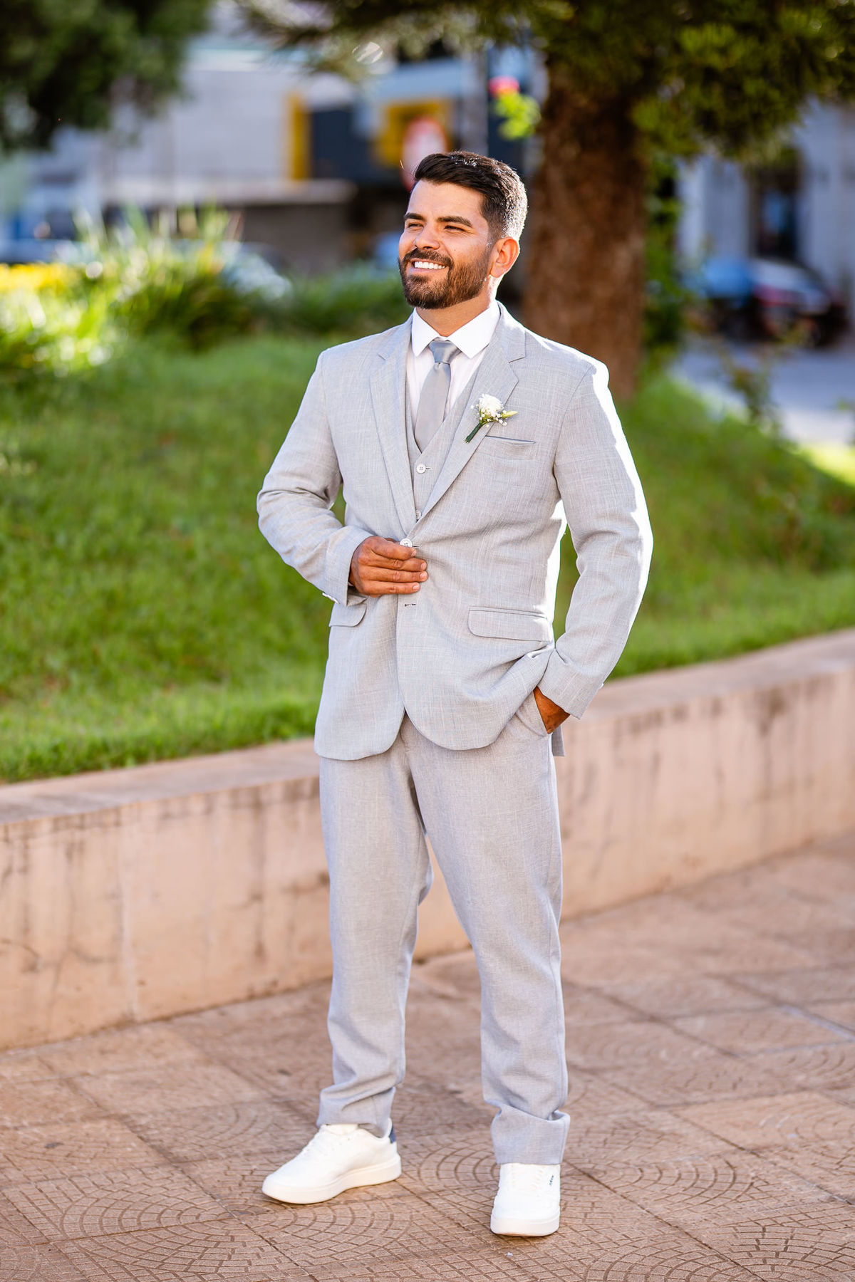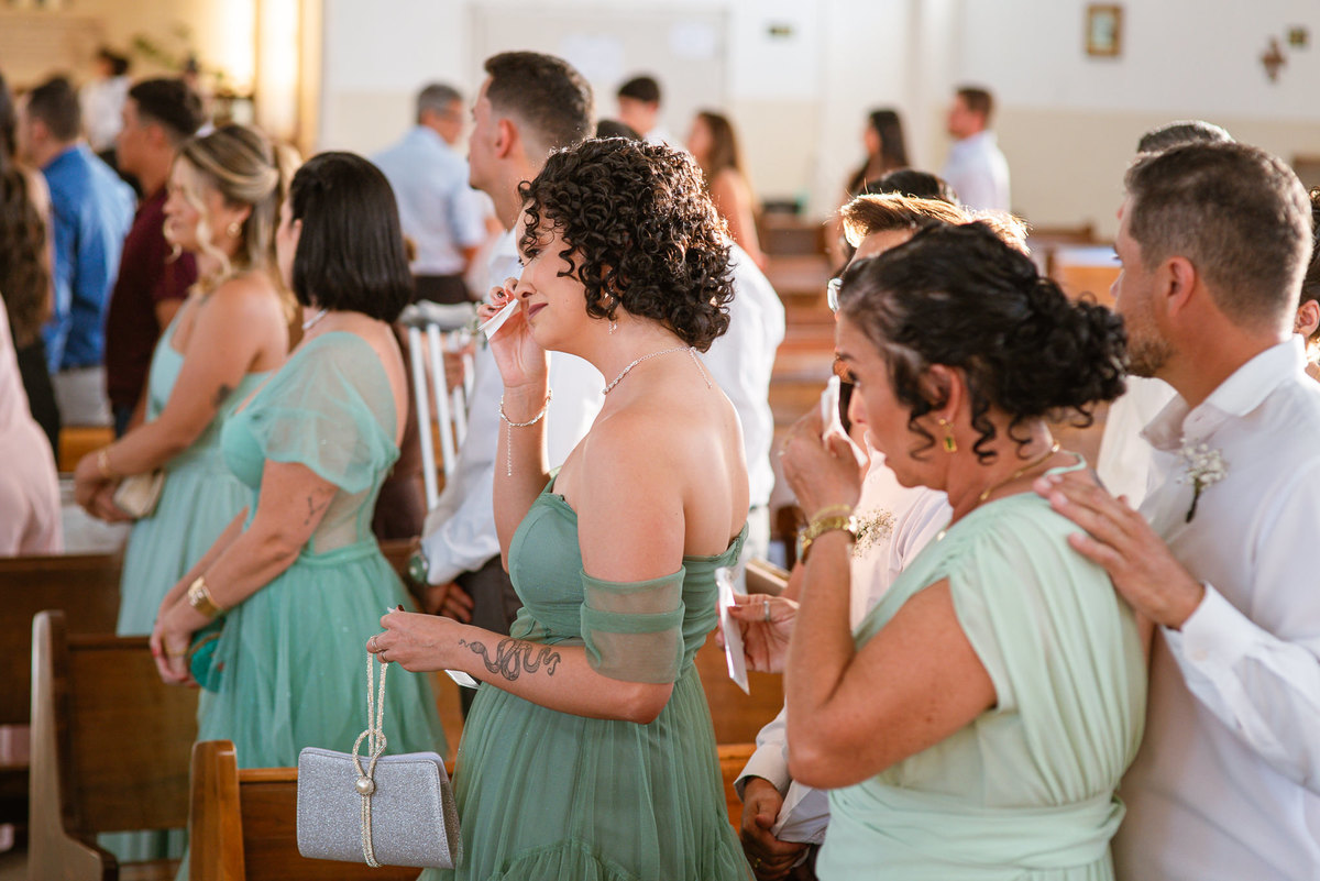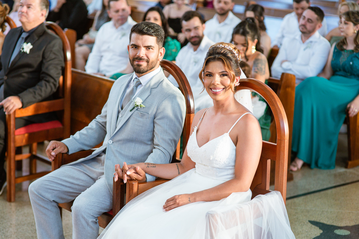 Lá em Presidente Olegário, Rayan realizava os últimos ajustes. Colocou seu terno e partiu para a celebração. A Igreja Matriz já estava de portas abertas aguardando a chegada dos convidados. Enquanto isso, Bheatriz havia terminado seu look. Agora completa, make, penteado e vestido lindo, a noiva finalmente estava pronta para se casar. O coração batia mais forte a cada segundo. Fizemos nossos retratos da noiva e já partimos pra Igreja. Na porta, os padrinhos todos alinhados chegavam e recebiam os cumprimentos do noivos. Rayan estava radiante, sorrindo para todos os seus amigos e padrinhos de casamento. Fotografamos ele e seus pais sempre com sorriso no rosto característico dele. Ouvimos o carro da noiva chegar e corremos para lá. Ela estava linda, radiante como o noivo. O brilho da luz do sol reluzia em seu rosto, seus olhos brilhavam e o sorriso vinha automaticamente. Fizemos nossas fotografias da noiva no carro e deixamos ela ali para iniciarmos a cerimônia. A cantora Aletis Garcia e sua equipe, foram os responsáveis por trazer as notas musicais doces ao evento.