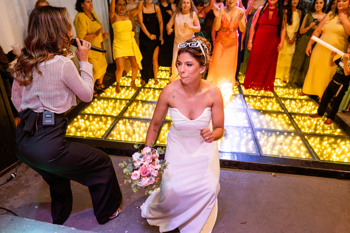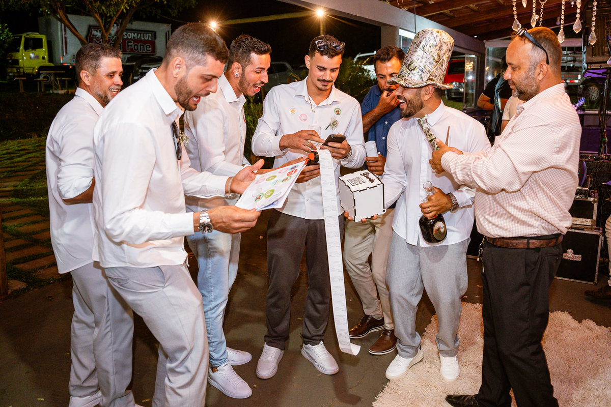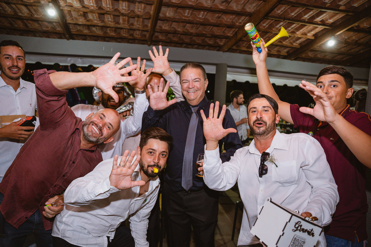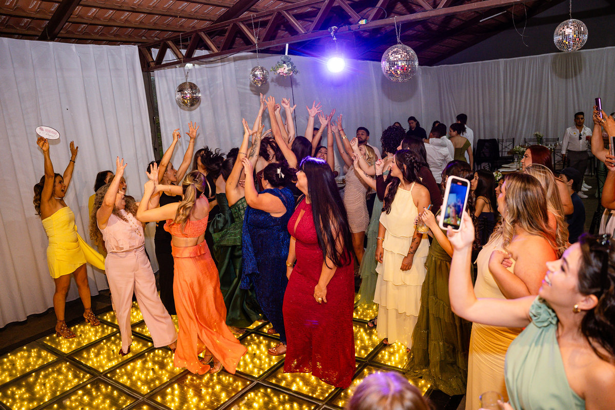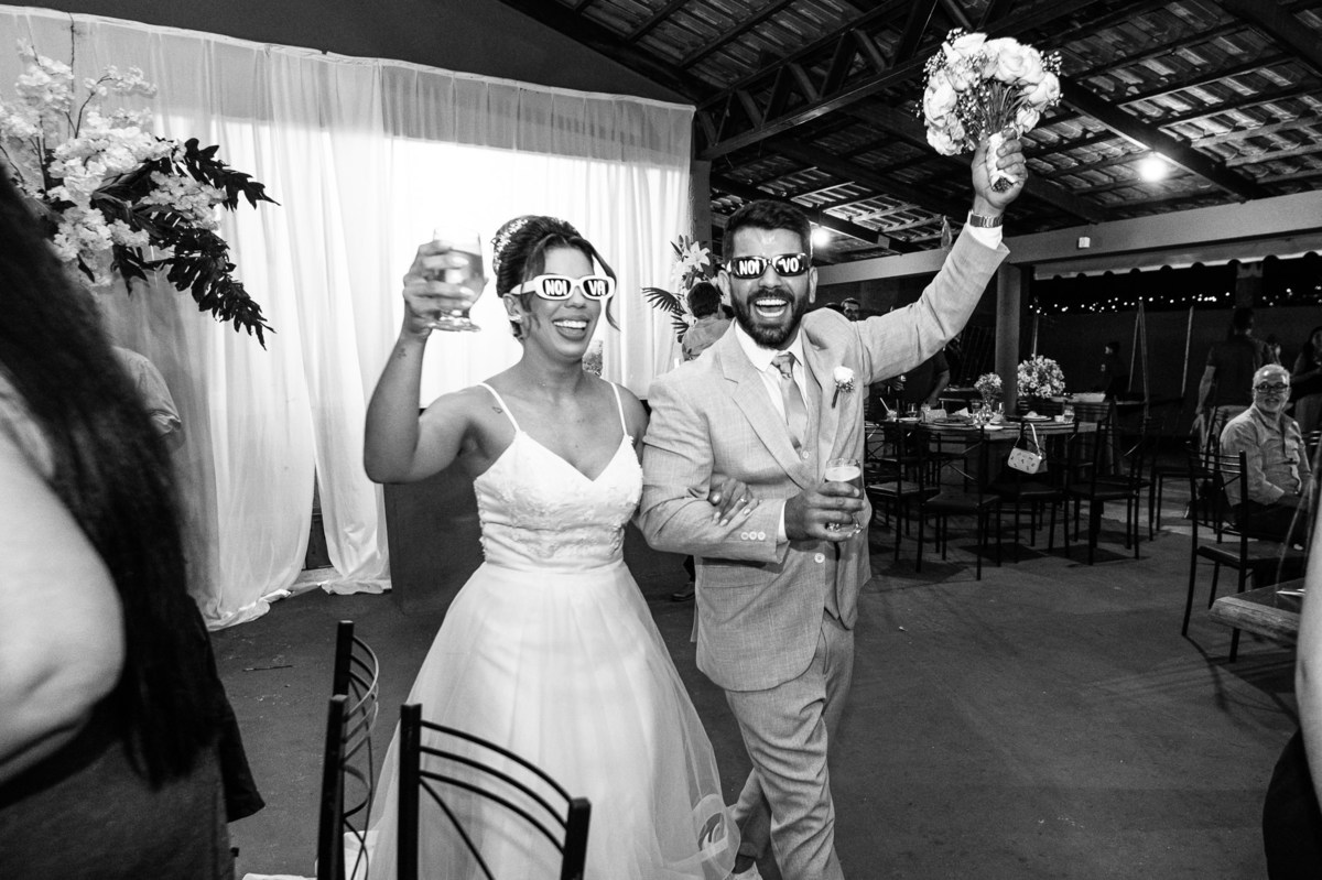 Depois de uma sessão de dança e muita curtição, era hora de jogar o buquê. As solteiras disputaram no braço, pedaço por pedaço da pista de dança. Bheatriz fez daquele momento um evento. Dançou, fez as madrinhas descerem até o chão diversas vezes, até que virada de costas, ela lançou seu buquê. Uma das solteironas pulou mais alto do que todas elas e alçou o pódio. Porém, ao ir com sede demais, o buquê esbarrou em sua mão e quase caiu. Mas ela estava determinada. Antes mesmo que caísse, no ar, ela conseguiu reverter a situação e abraçou sua conquista, colocando-o pro alto em sinal de vitória. E a festa não parou por ai. Teve mais show de forró e sertanejo e também contou com o DJ Mega Fone animando a pista logo após. Os recém-casados fizeram uma verdadeira farra com seus convidados. Ninguém queria ir embora. Era foto com um, foto com outros, dança de cá e abraça de lá. Não parou um minuto sequer. A noiva não conseguia comer um torresmo sem ter que tirar uma foto. Depois de mais algum tempo, encerramos nosso trabalho com a certeza de termos exercido o melhor trabalho possível aos queridos noivinhos. Despedimo-nos dos dois com sentimento eterno de gratidão. E agora, aqui abaixo você confere tudo isso que foi relatado aqui através de imagens inesquecíveis desse dia tão especial. Aos noivos, Nosso muito obrigado pela confiança. Amamos de coração todos os maravilhosos clientes da cidade de Presidente Olegário e região. A você que chegou até aqui, nosso muito obrigado também. Esse texto só existe porque as pessoas leem, se emocionam e me cobram depois de que no delas, elas querem a postagem. Até a próxima :)