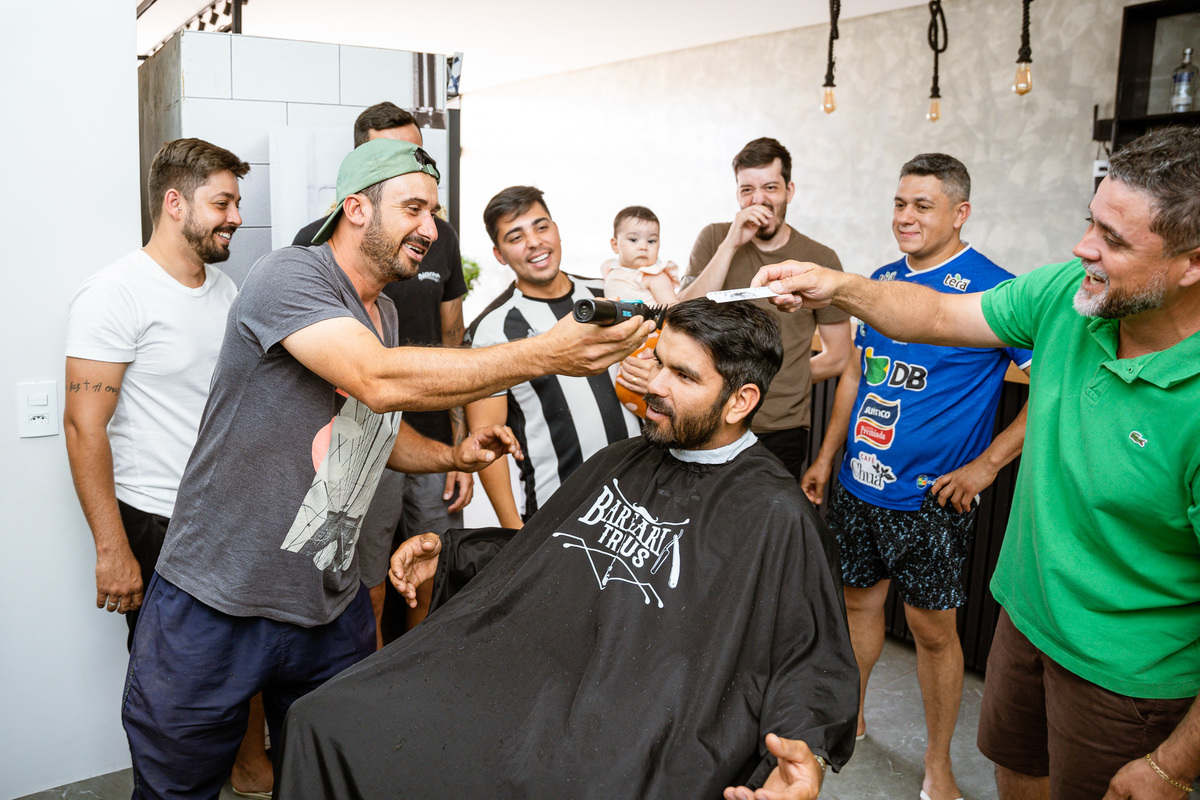 Uma história de amor com mais de 10 anos de duração, é para poucos. E assim, Bheatriz e Rayan decidiram oficializar a sua longa e longeva união perante Deus e as testemunhas. E eles escolheram sua cidade para ser o local onde finalmente o sim eterno seria dito para sempre. Começamos o trabalho na cidade de Presidente Olegário - MG onde o noivo, juntamente com alguns padrinhos, realizaram o making of. Rayan foi extremamente incentivado pelos padrinhos, que fizeram uma algazarra imensa no salão. Aproveitaram o momento de descuido do noivo e pegaram os instrumentos de trabalho do barbeiro. Com o noivo deitado, pronto para começar todo o processo de corte de cabelo e barba, os padrinhos pintaram e bordaram com ele. Molharam com a água de jogar no cabelo, ameaçaram ele com as navalhas e tesoura no cabelo, foi uma festa.