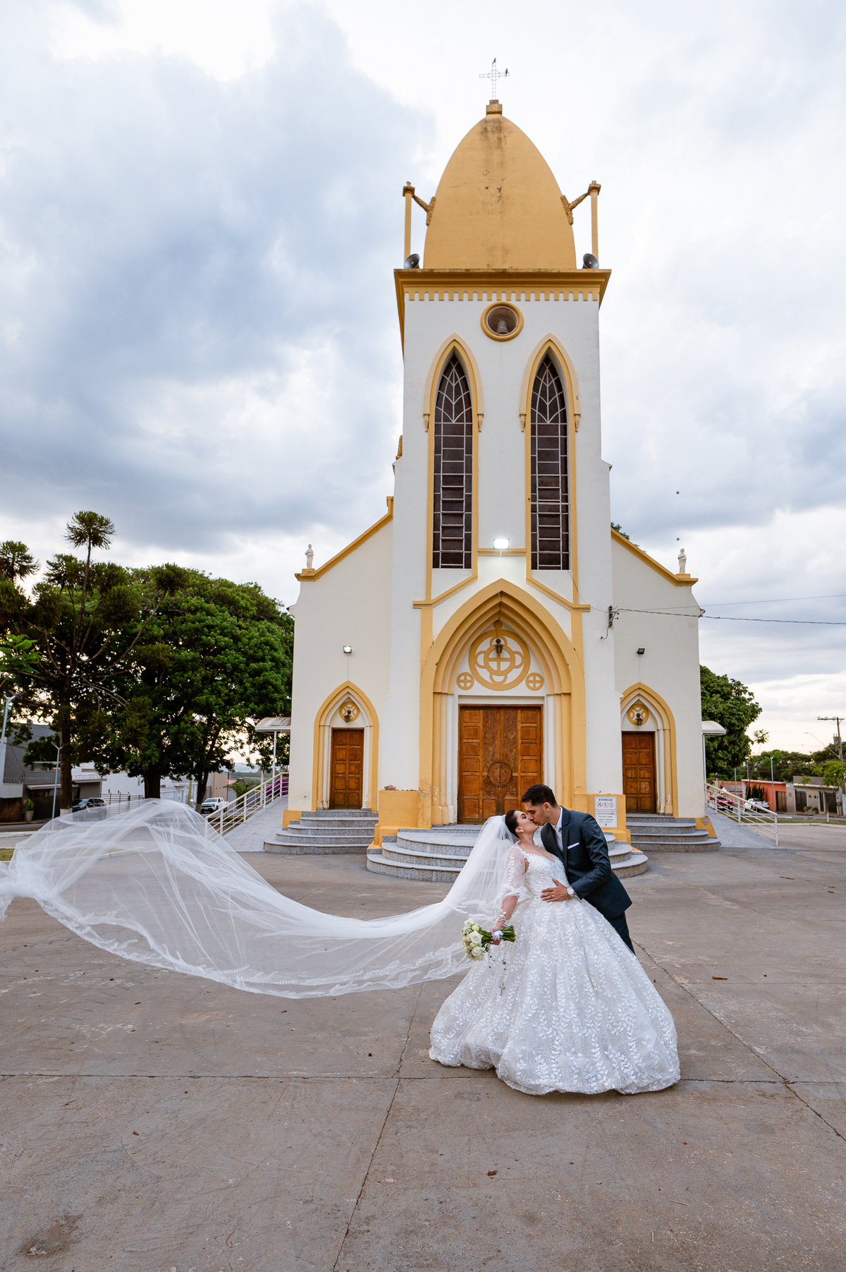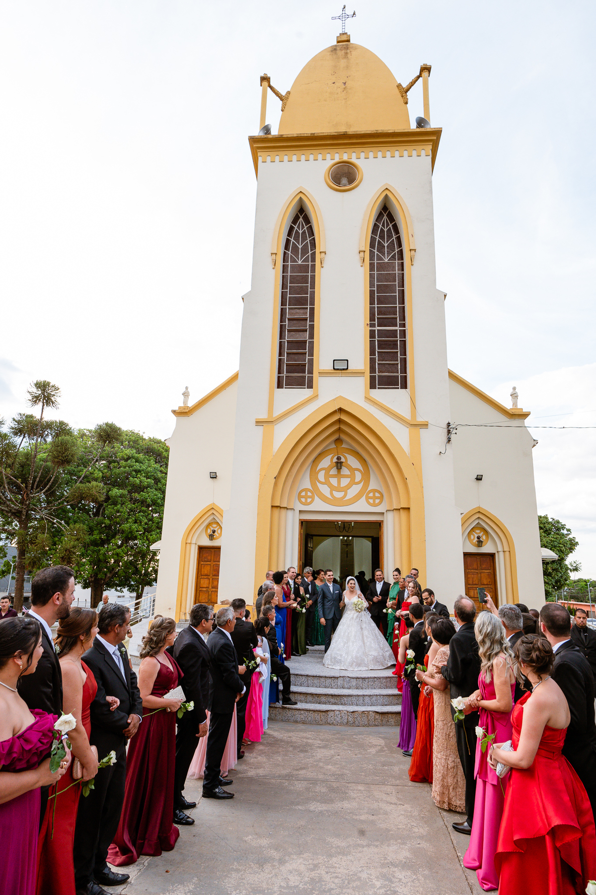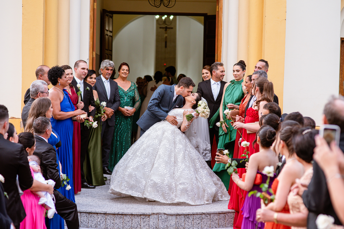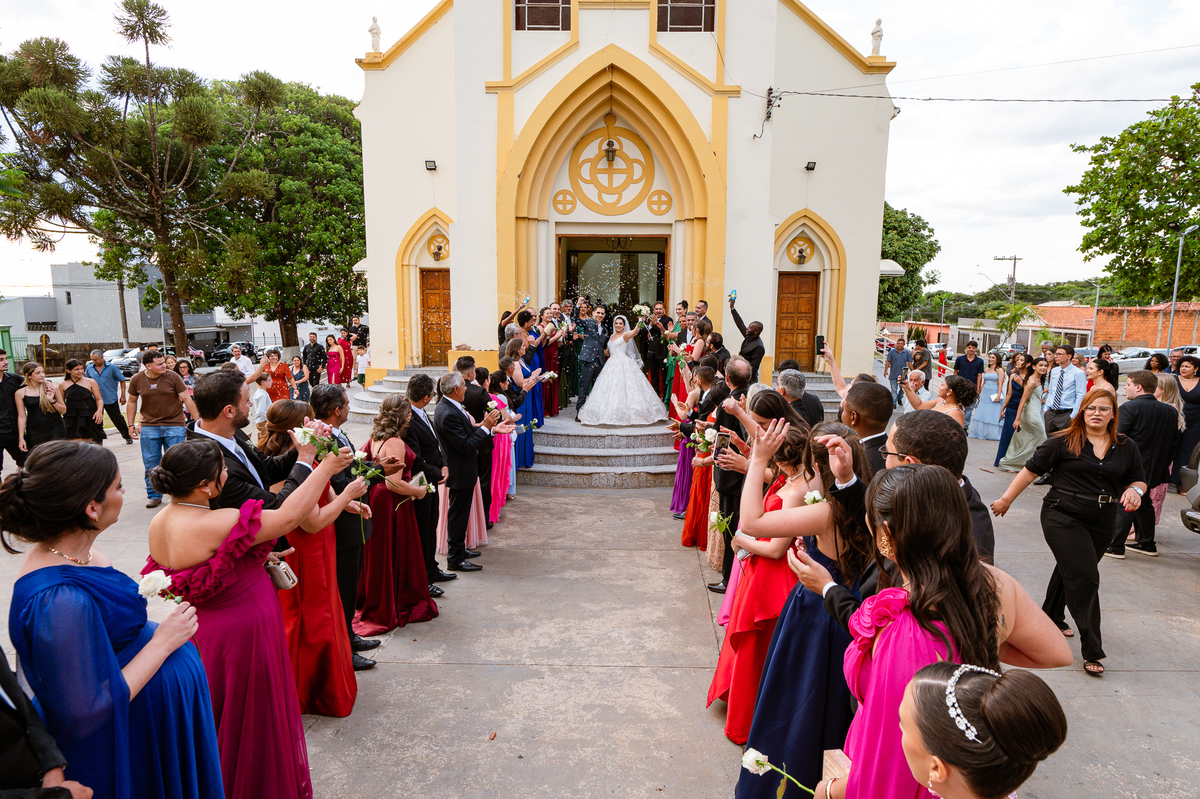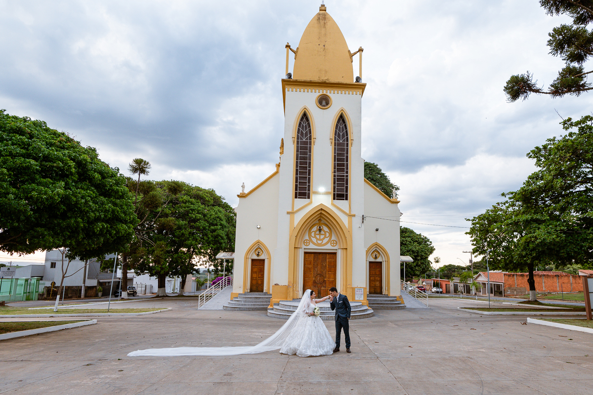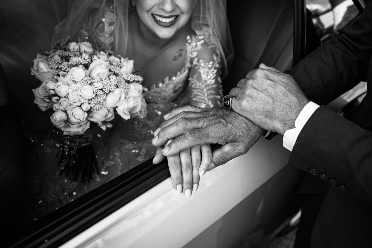 As entradas aconteceram lindamente, super organizadas. A florista, os pais dos noivos, padrinhos e o noivo entraram desfilando toda sua beleza. O dia estava lindo, o sol brilhava entre as nuvens e um céu azul contrastava com o amarelo da Igreja Matriz. DO lado de fora, toda a ansiedade de um dia de noiva. Amanda estava lá, poucos minutos de dizer o sim eterno e os segundos passavam lentamente. Do lado de dentro, Murilo aguardava ansiosamente também pelo seu encontro final. Depois de todas as entradas, as portas da Igreja se fecharam e os olhares de todos se dividiam entre a reação do noivo e a entrada da noiva. Amanda estava ainda dentro do carro, quando seu pai foi chamado para fazer as fotos e ajudar ela a descer. Quando ele chegou e olhou nos olhos de sua filha, ele teve uma reação muito espontânea e caiu em lágrimas sem condições de segurar o choro. Ele apoiou no veículo ainda de mãos dadas com ela e desabou em lágrimas.