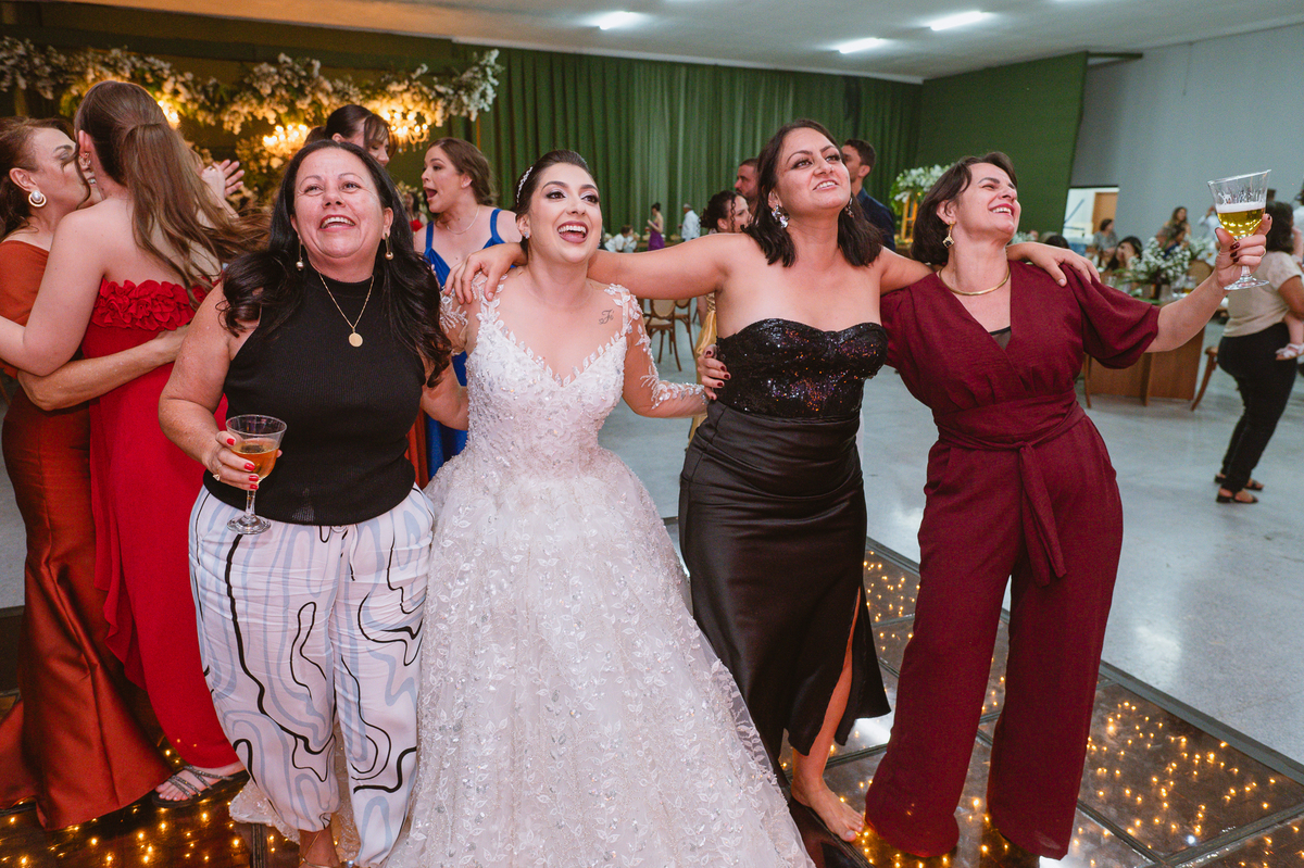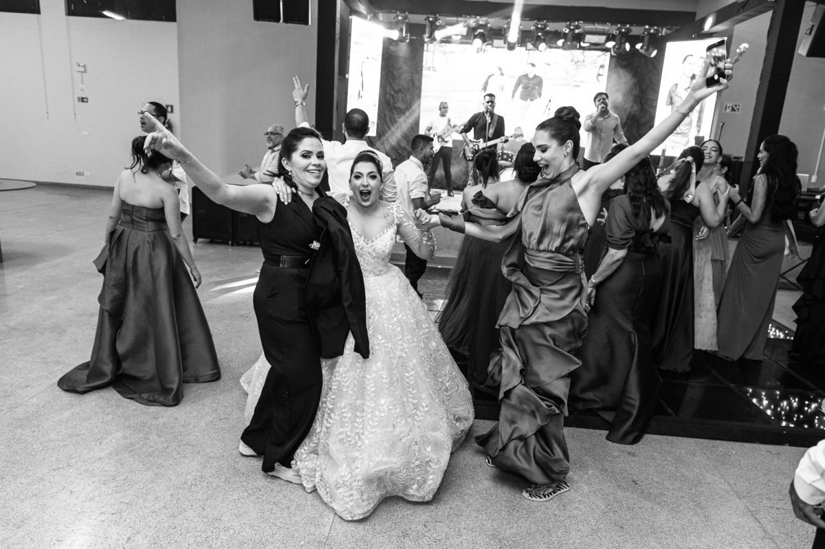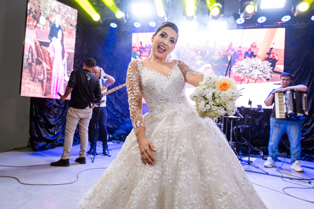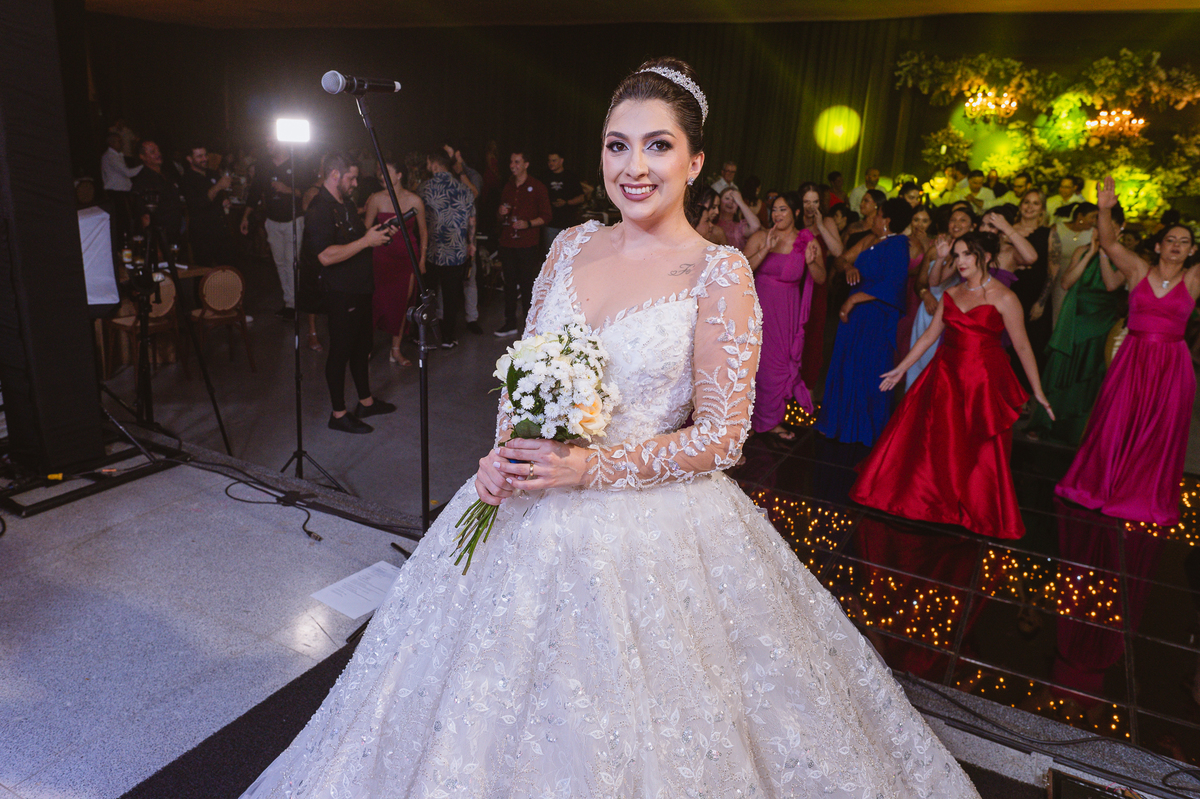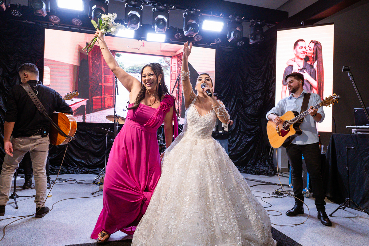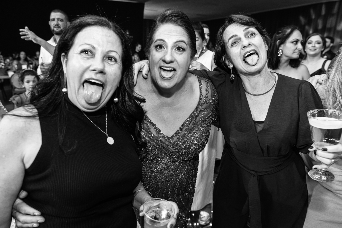 E chegou a hora de a noiva jogar o buquê pra próxima sortuda. Amanda fez questão de convidar todas as solteira, nome por nome no microfone. Depois de reunir todas elas, dançaram no palco e depois de algumas vezes simulando, Amanda jogou seu buquê. A sortuda pulou muito alto e agarrou com toda força, sem chance para as concorrentes do lado. Teve até um padrinho que tentou subir junto mas não teve êxito. Fizemos as fotos dela com a sortuda e partimos para fotografar a pista de dança. O pessoal estava muito animado. Teve convidada que puxou Amanda e dançou muito com ela. Além disso, os cantores chamaram os recém-casados para o palco e convidaram também as madrinhas e depois os padrinhos para dançarem juntos lá em cima. Foi uma farra que até os pais dos noivos participaram também. Depois de algumas horas fotografando, encerramos nossa participação com a certeza de termos efetuado mais um trabalho maravilhoso.