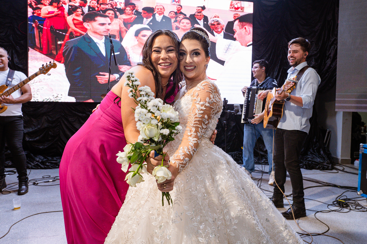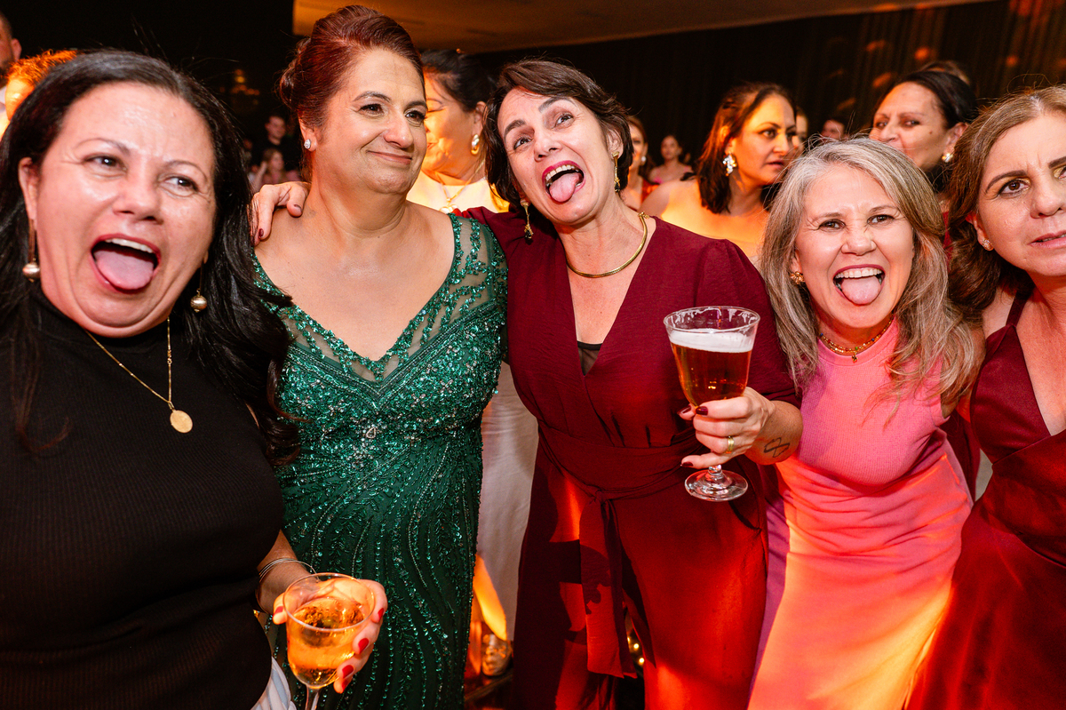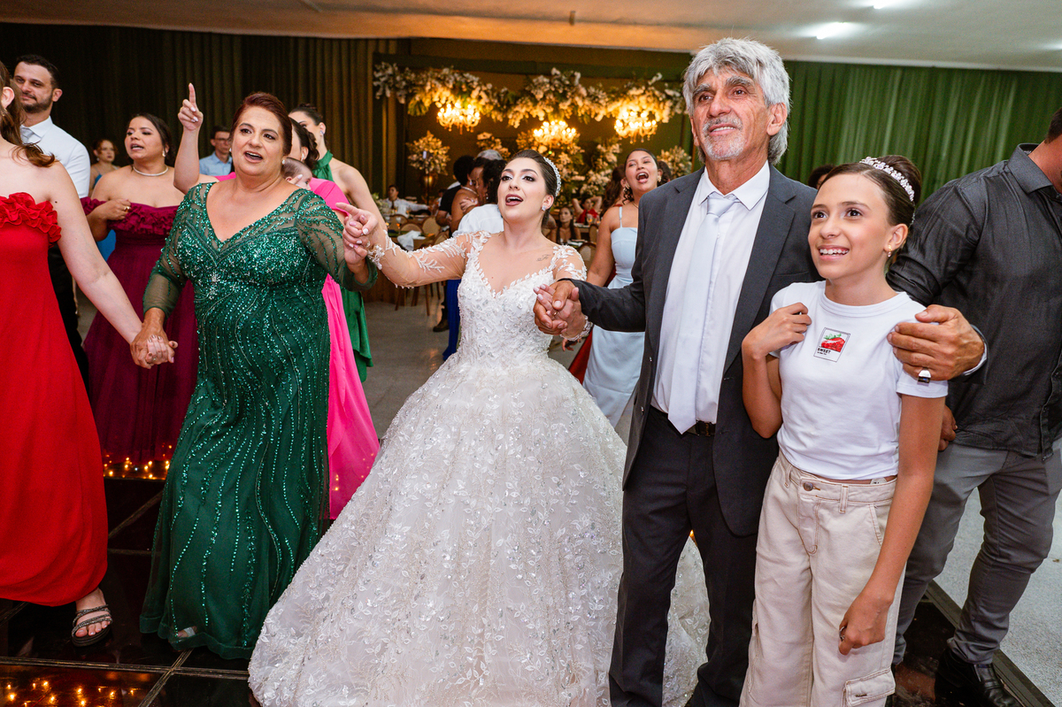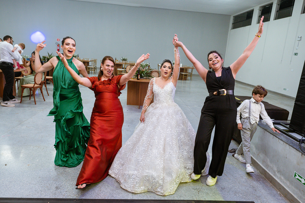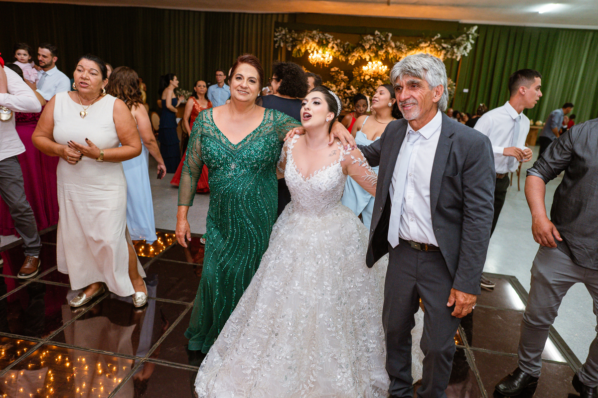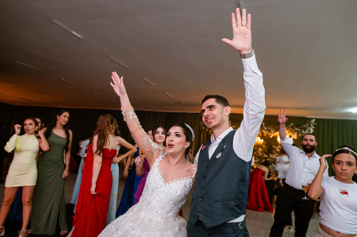 E chegou a hora de a noiva jogar o buquê pra próxima sortuda. Amanda fez questão de convidar todas as solteira, nome por nome no microfone. Depois de reunir todas elas, dançaram no palco e depois de algumas vezes simulando, Amanda jogou seu buquê. A sortuda pulou muito alto e agarrou com toda força, sem chance para as concorrentes do lado. Teve até um padrinho que tentou subir junto mas não teve êxito. Fizemos as fotos dela com a sortuda e partimos para fotografar a pista de dança. O pessoal estava muito animado. Teve convidada que puxou Amanda e dançou muito com ela. Além disso, os cantores chamaram os recém-casados para o palco e convidaram também as madrinhas e depois os padrinhos para dançarem juntos lá em cima. Foi uma farra que até os pais dos noivos participaram também. Depois de algumas horas fotografando, encerramos nossa participação com a certeza de termos efetuado mais um trabalho maravilhoso.