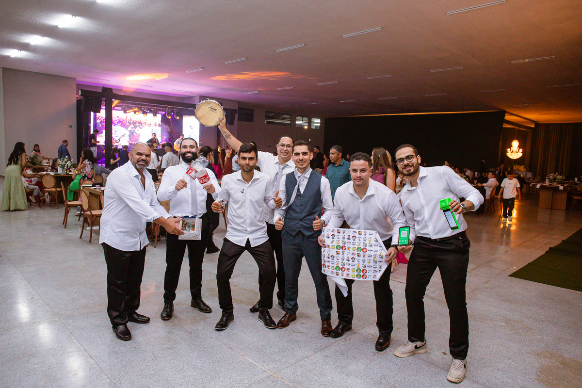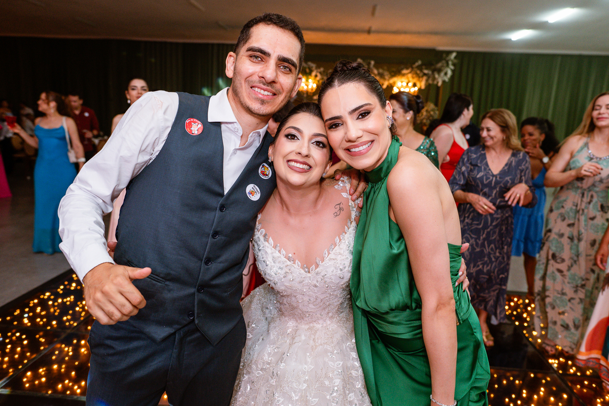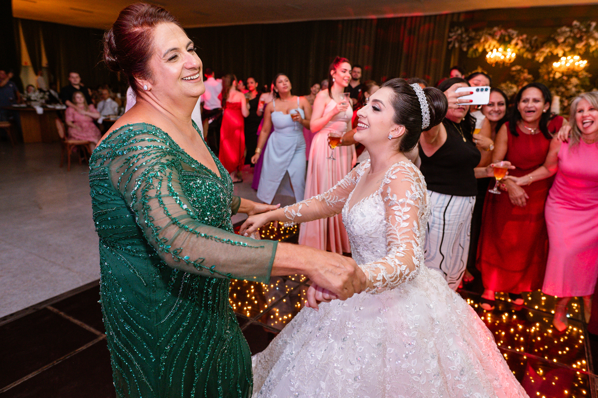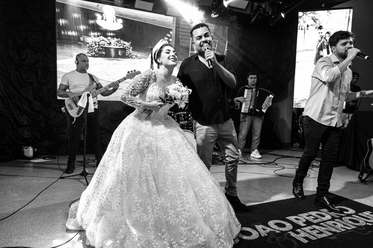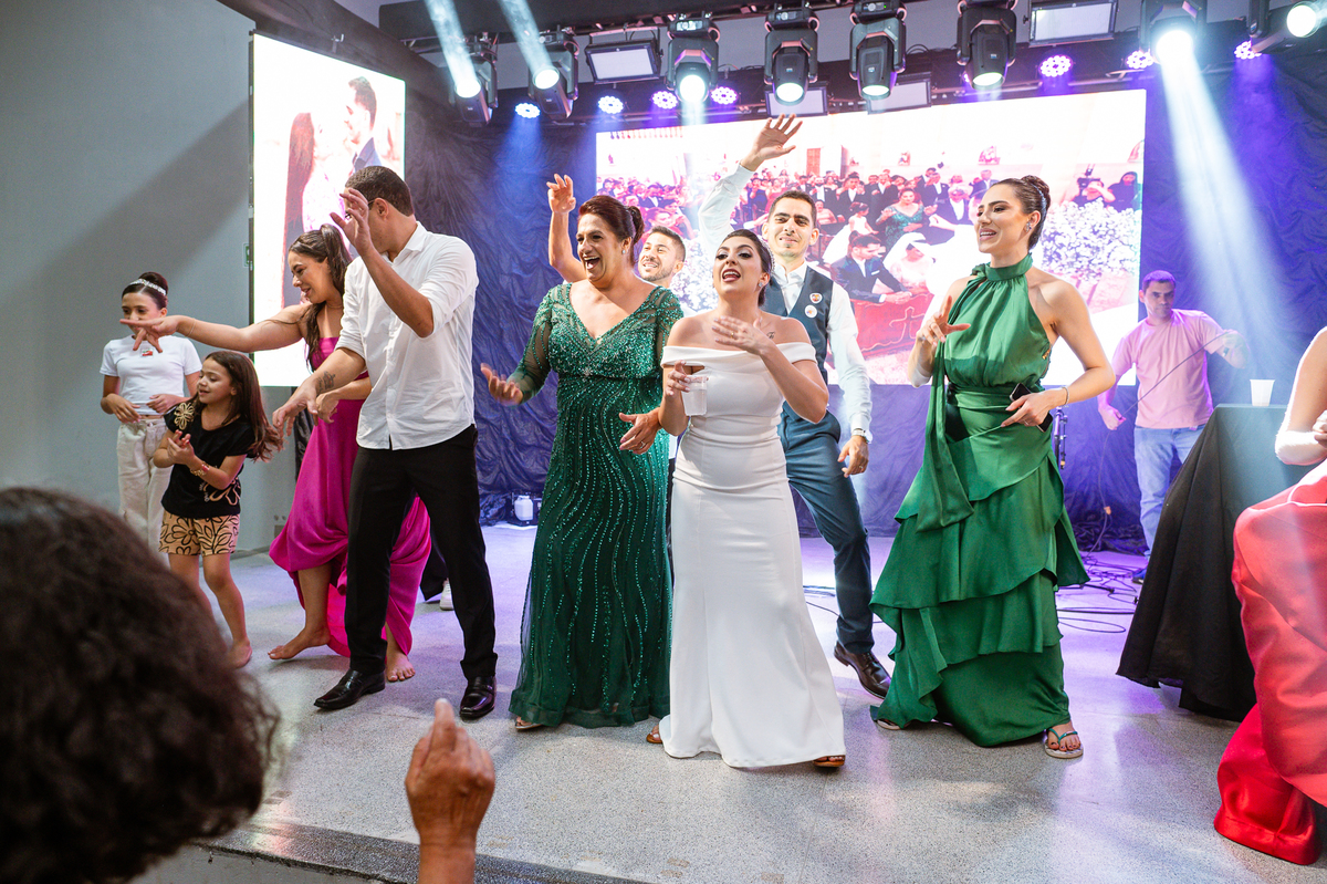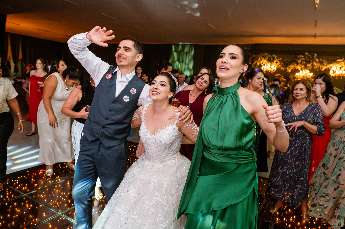 E chegou a hora de a noiva jogar o buquê pra próxima sortuda. Amanda fez questão de convidar todas as solteira, nome por nome no microfone. Depois de reunir todas elas, dançaram no palco e depois de algumas vezes simulando, Amanda jogou seu buquê. A sortuda pulou muito alto e agarrou com toda força, sem chance para as concorrentes do lado. Teve até um padrinho que tentou subir junto mas não teve êxito. Fizemos as fotos dela com a sortuda e partimos para fotografar a pista de dança. O pessoal estava muito animado. Teve convidada que puxou Amanda e dançou muito com ela. Além disso, os cantores chamaram os recém-casados para o palco e convidaram também as madrinhas e depois os padrinhos para dançarem juntos lá em cima. Foi uma farra que até os pais dos noivos participaram também. Depois de algumas horas fotografando, encerramos nossa participação com a certeza de termos efetuado mais um trabalho maravilhoso.