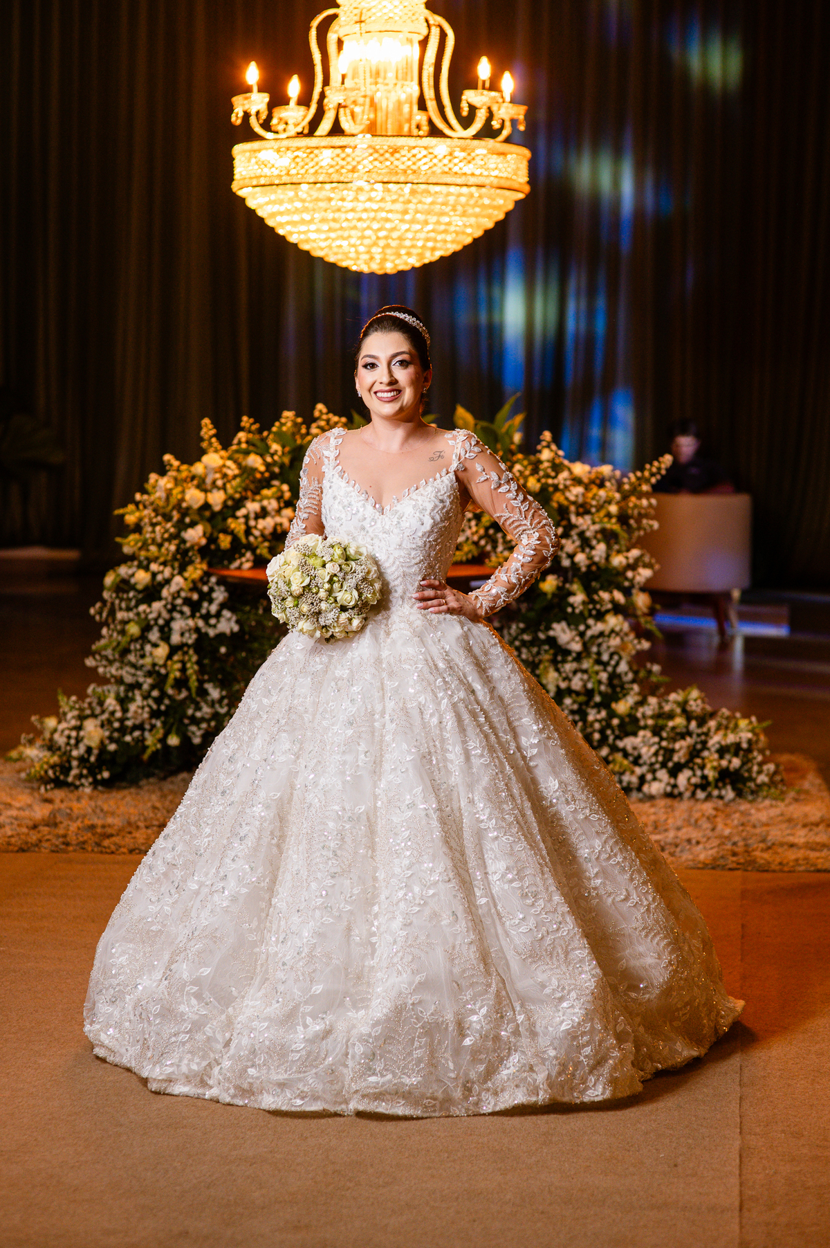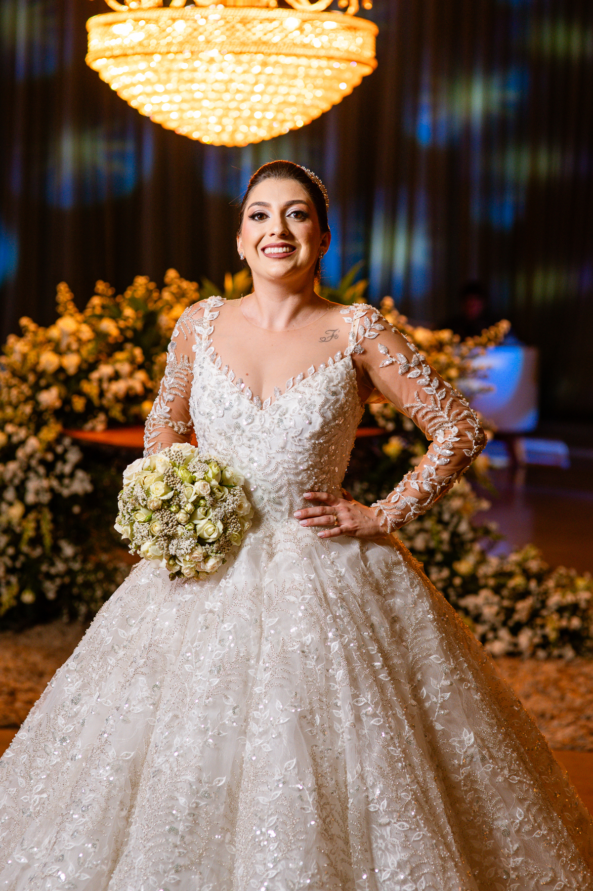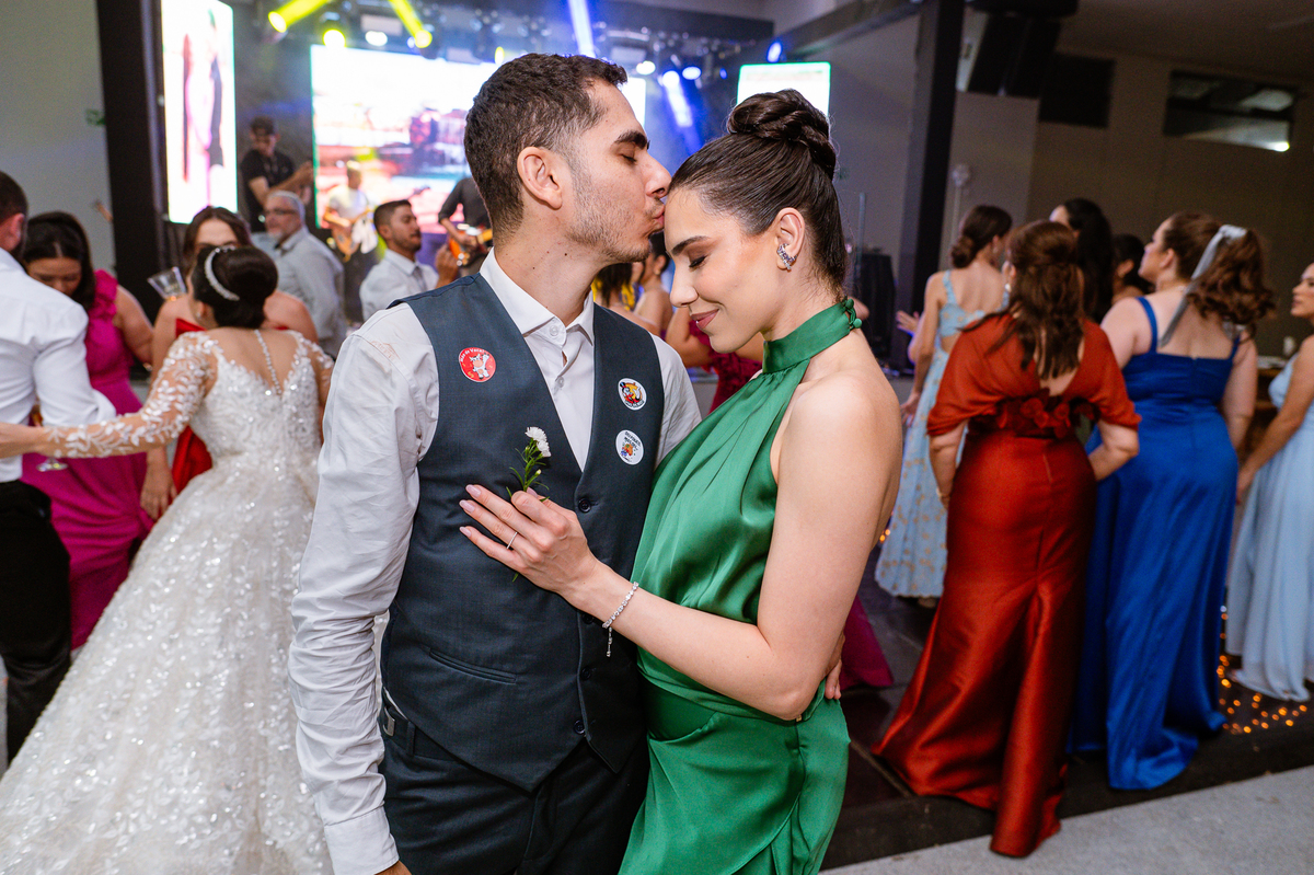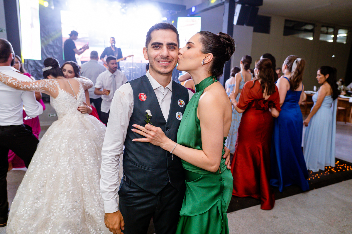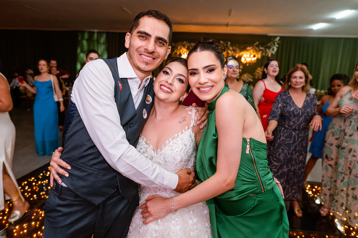E chegou a hora de a noiva jogar o buquê pra próxima sortuda. Amanda fez questão de convidar todas as solteira, nome por nome no microfone. Depois de reunir todas elas, dançaram no palco e depois de algumas vezes simulando, Amanda jogou seu buquê. A sortuda pulou muito alto e agarrou com toda força, sem chance para as concorrentes do lado. Teve até um padrinho que tentou subir junto mas não teve êxito. Fizemos as fotos dela com a sortuda e partimos para fotografar a pista de dança. O pessoal estava muito animado. Teve convidada que puxou Amanda e dançou muito com ela. Além disso, os cantores chamaram os recém-casados para o palco e convidaram também as madrinhas e depois os padrinhos para dançarem juntos lá em cima. Foi uma farra que até os pais dos noivos participaram também. Depois de algumas horas fotografando, encerramos nossa participação com a certeza de termos efetuado mais um trabalho maravilhoso.