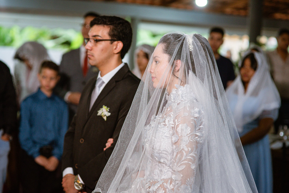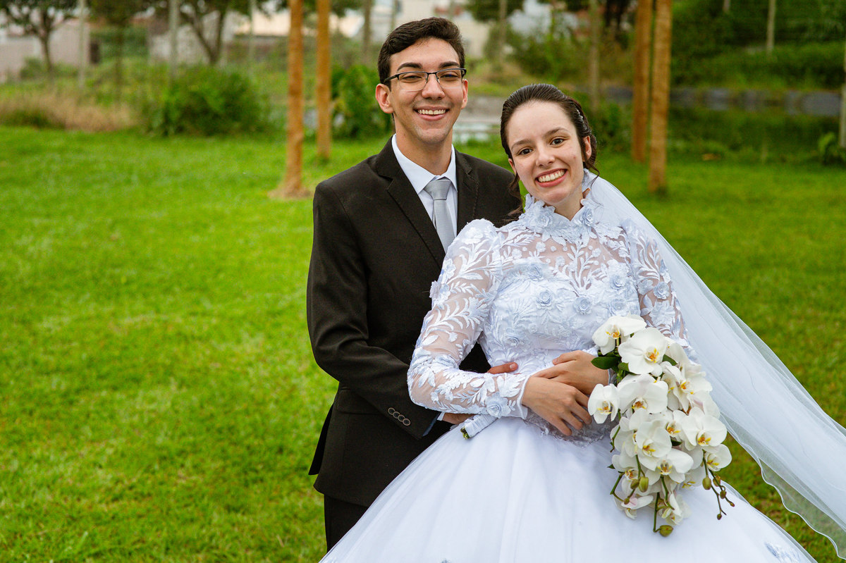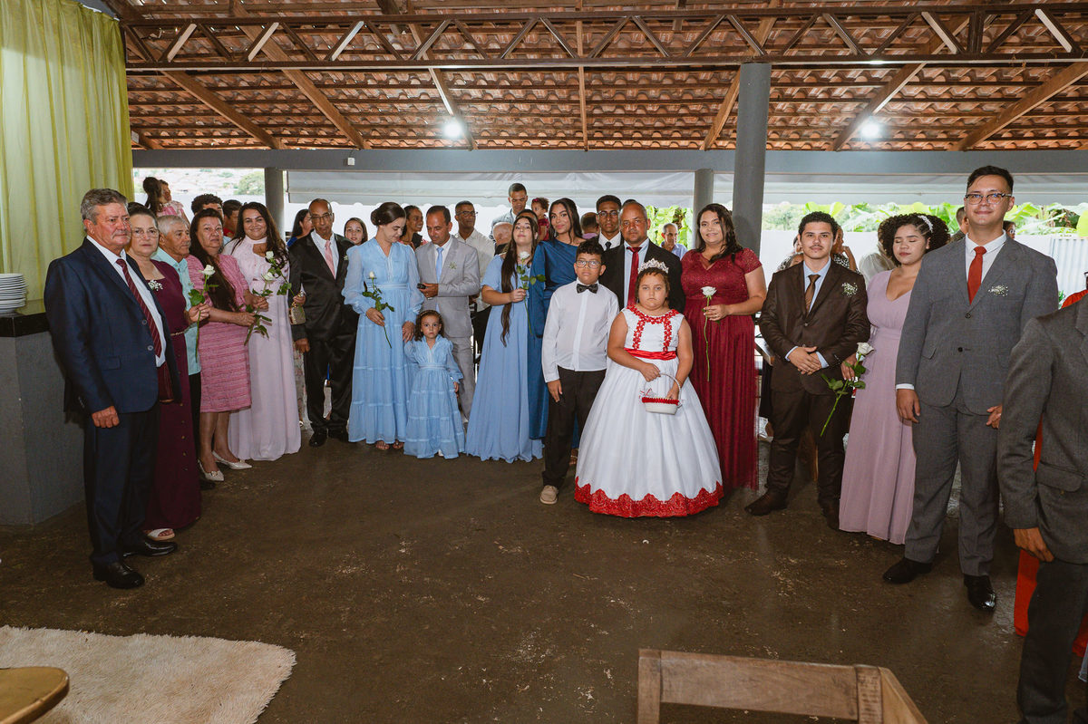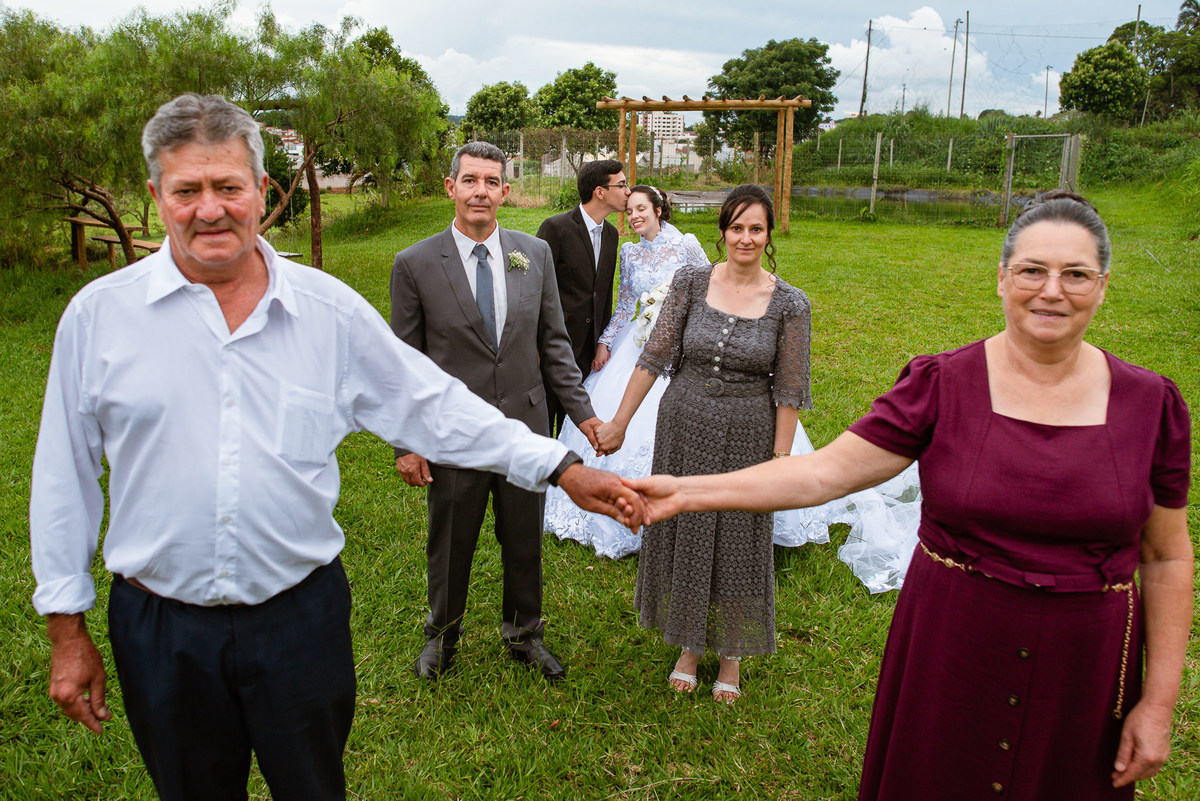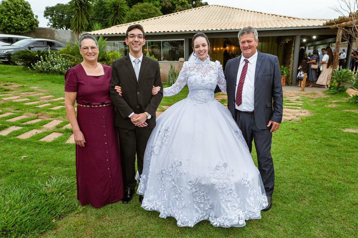 Eles receberam a bênção sobre suas vidas através do ancião, que realizou uma oração maravilhosa, convocando as mais ricas bênçãos de Deus sobre a vida do casal. Esse momento emocionou muita gente. Fizemos também todas as fotografias protocolares e deixamos os recém-casados à vontade para fazer conforme quiseram. Eduarda nos solicitou que durante a sessão de fotos deles, fizéssemos uma foto com os seus pais e avós. Depois, fizemos a sessão somente dos dois.
