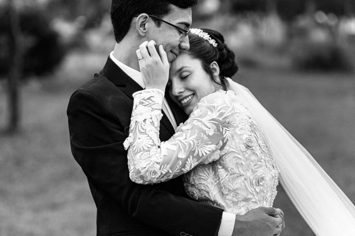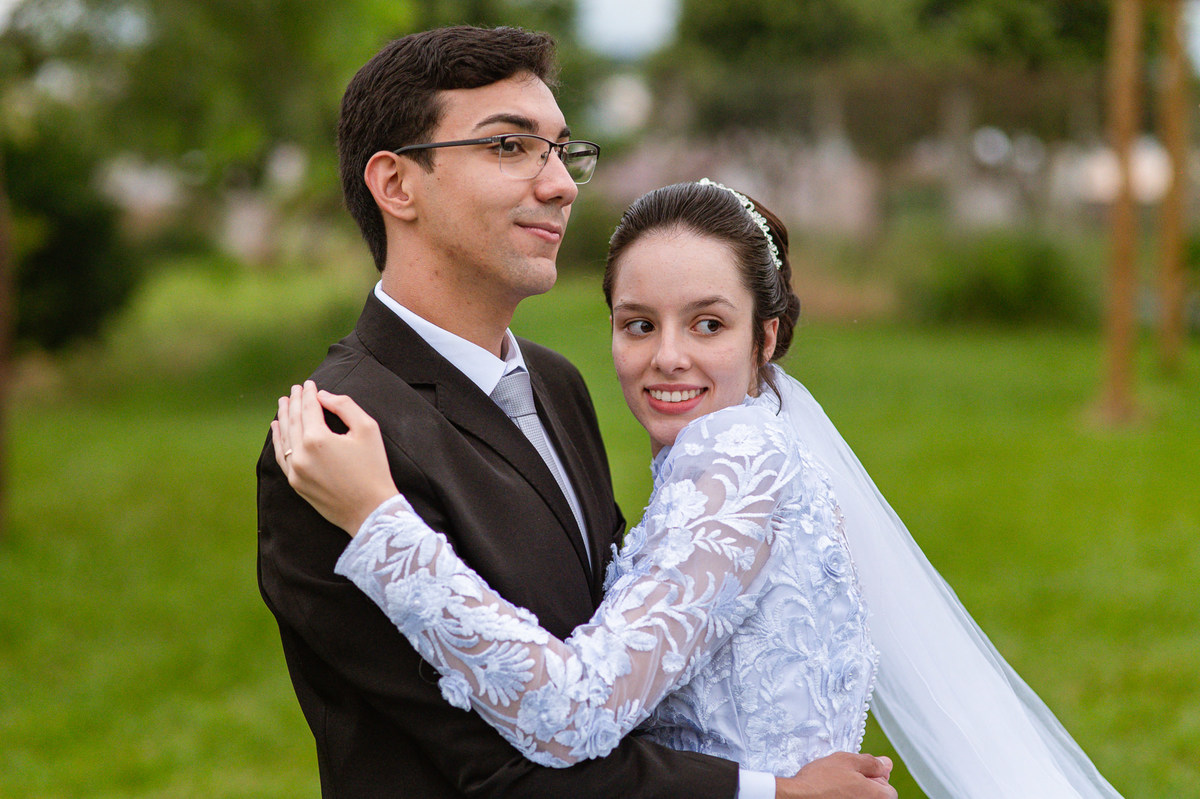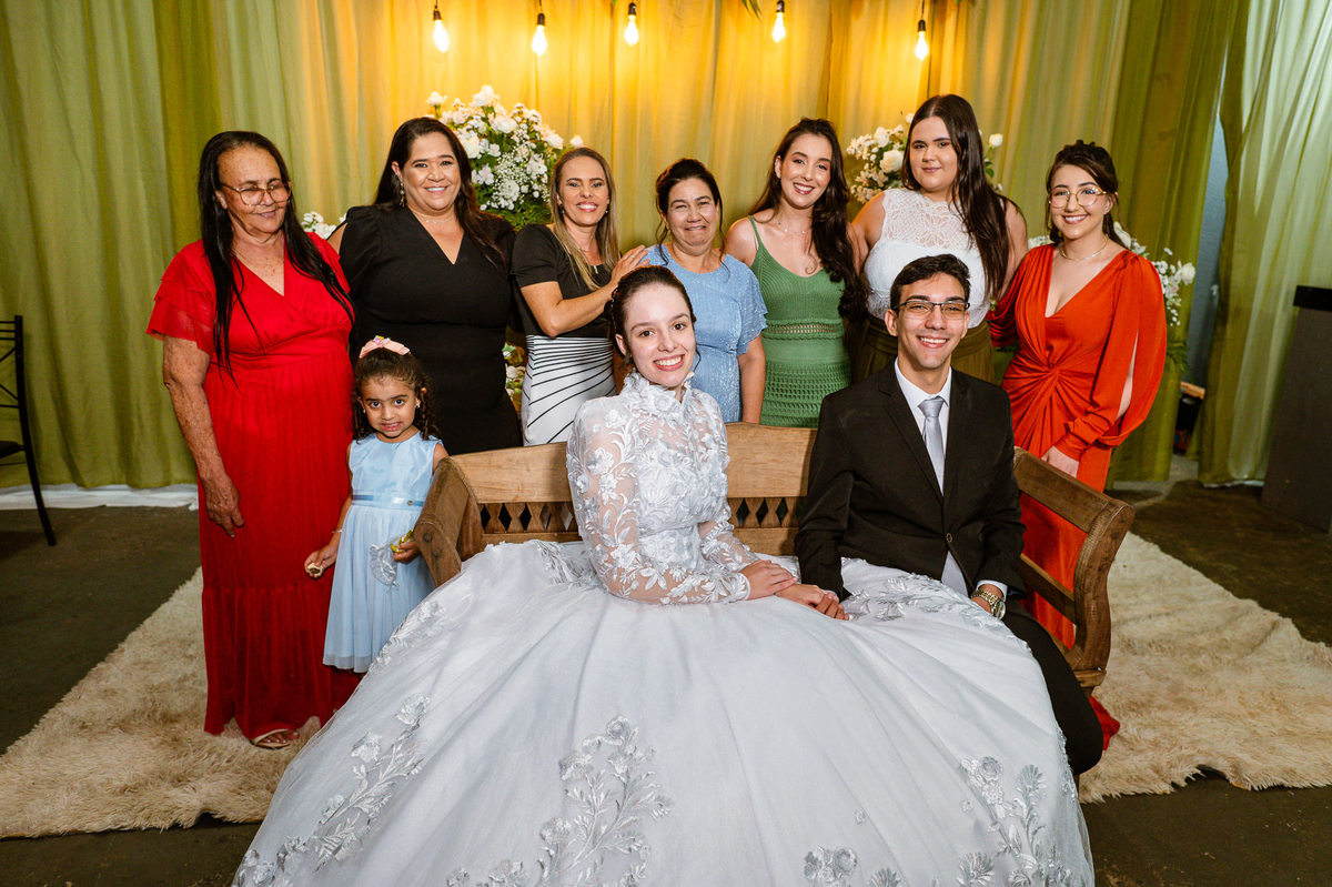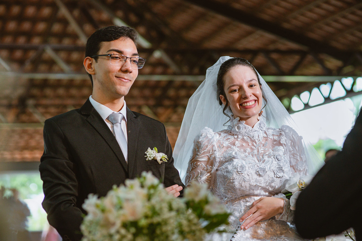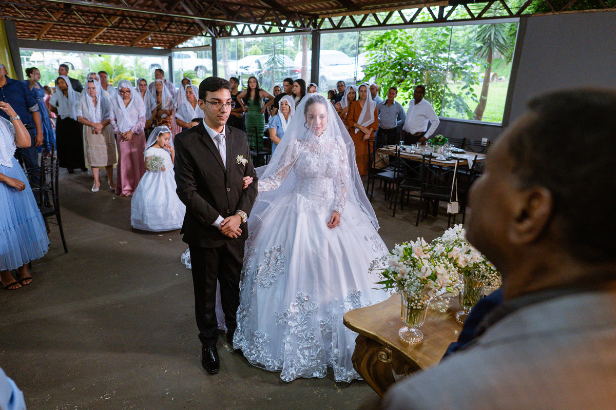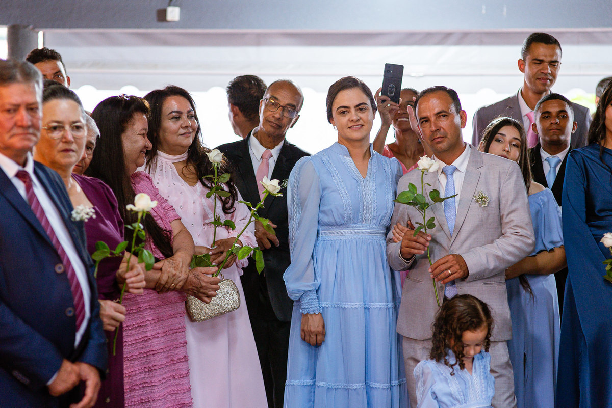 Eles receberam a bênção sobre suas vidas através do ancião, que realizou uma oração maravilhosa, convocando as mais ricas bênçãos de Deus sobre a vida do casal. Esse momento emocionou muita gente. Fizemos também todas as fotografias protocolares e deixamos os recém-casados à vontade para fazer conforme quiseram. Eduarda nos solicitou que durante a sessão de fotos deles, fizéssemos uma foto com os seus pais e avós. Depois, fizemos a sessão somente dos dois.