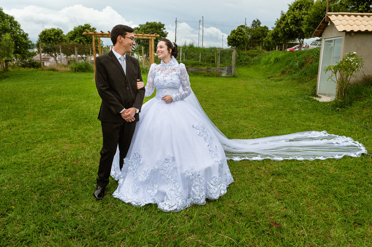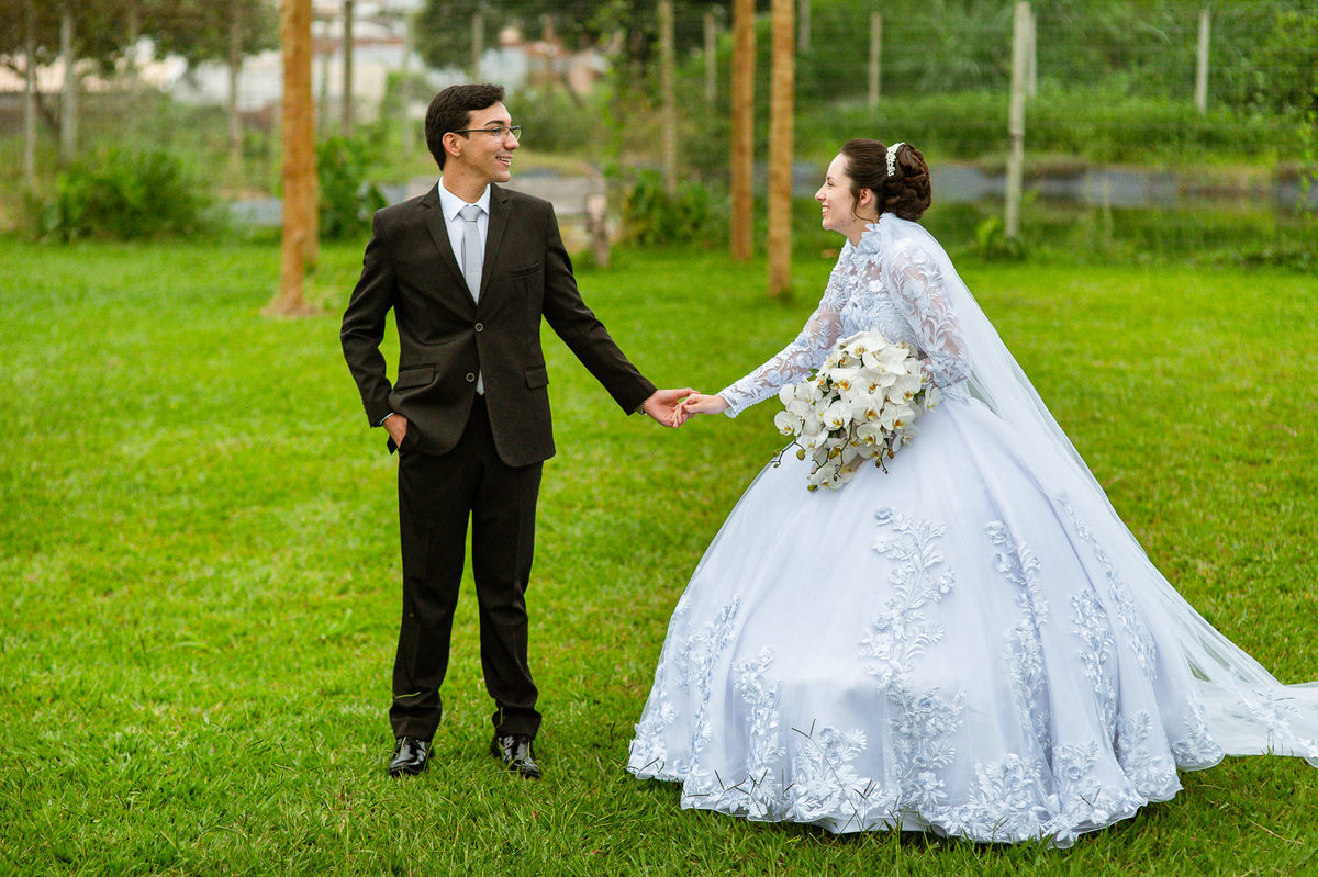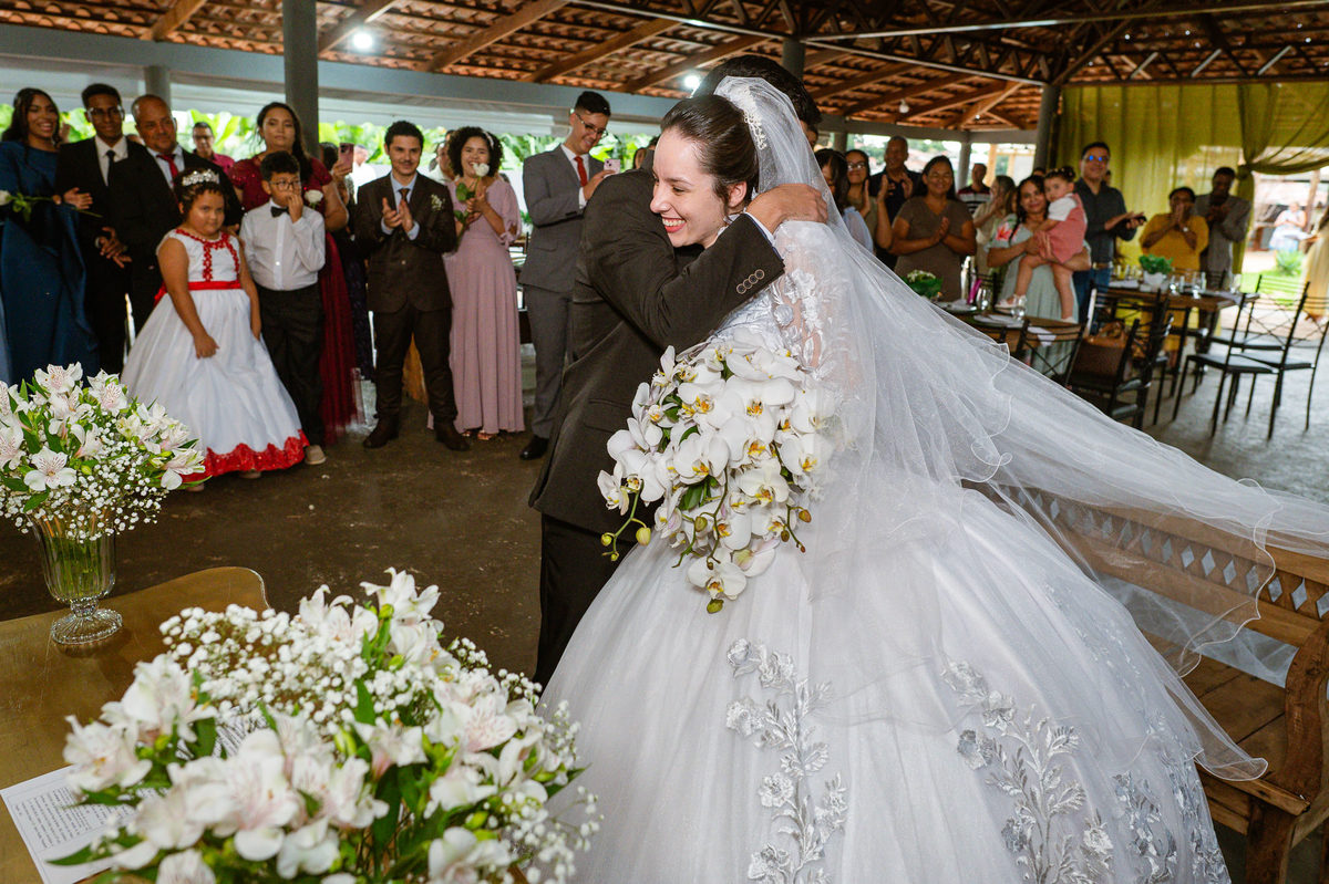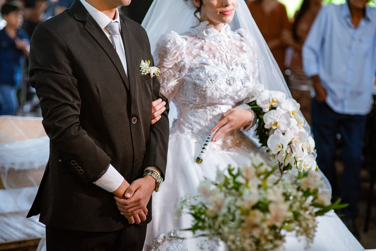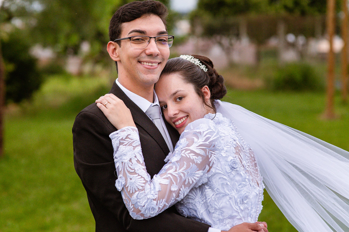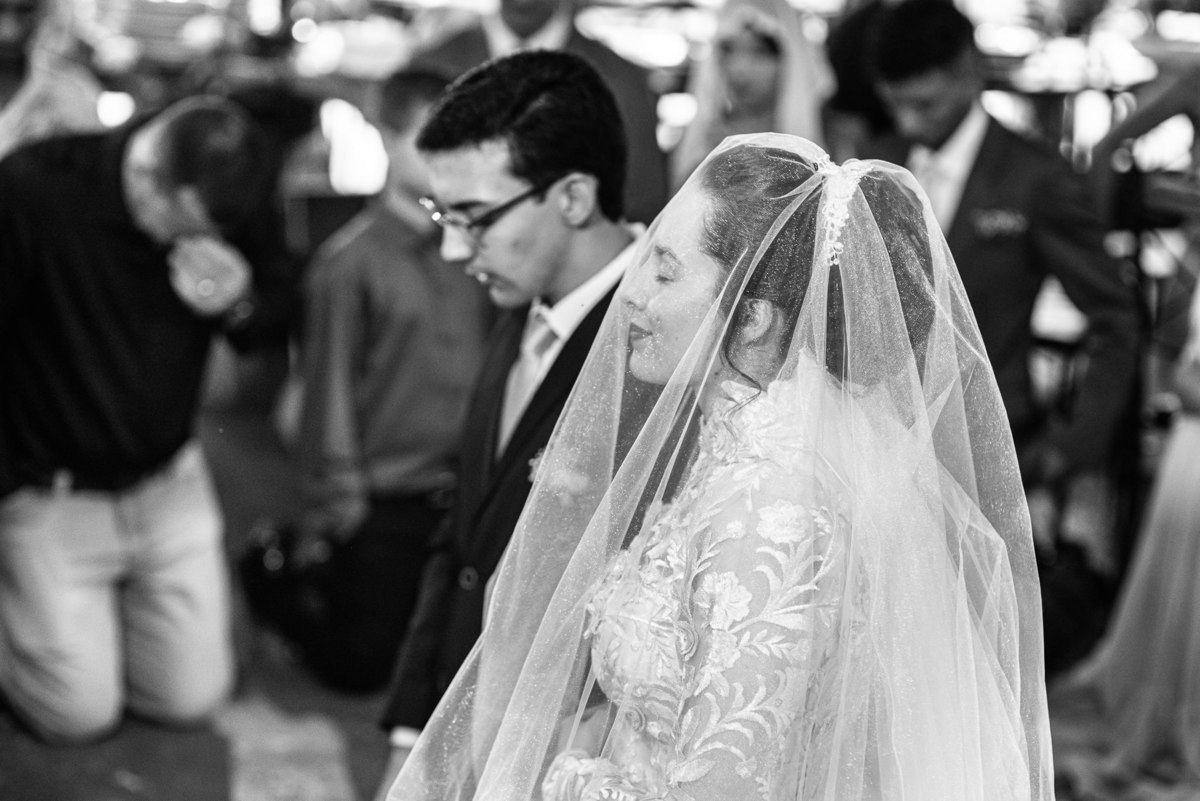 Eles receberam a bênção sobre suas vidas através do ancião, que realizou uma oração maravilhosa, convocando as mais ricas bênçãos de Deus sobre a vida do casal. Esse momento emocionou muita gente. Fizemos também todas as fotografias protocolares e deixamos os recém-casados à vontade para fazer conforme quiseram. Eduarda nos solicitou que durante a sessão de fotos deles, fizéssemos uma foto com os seus pais e avós. Depois, fizemos a sessão somente dos dois.