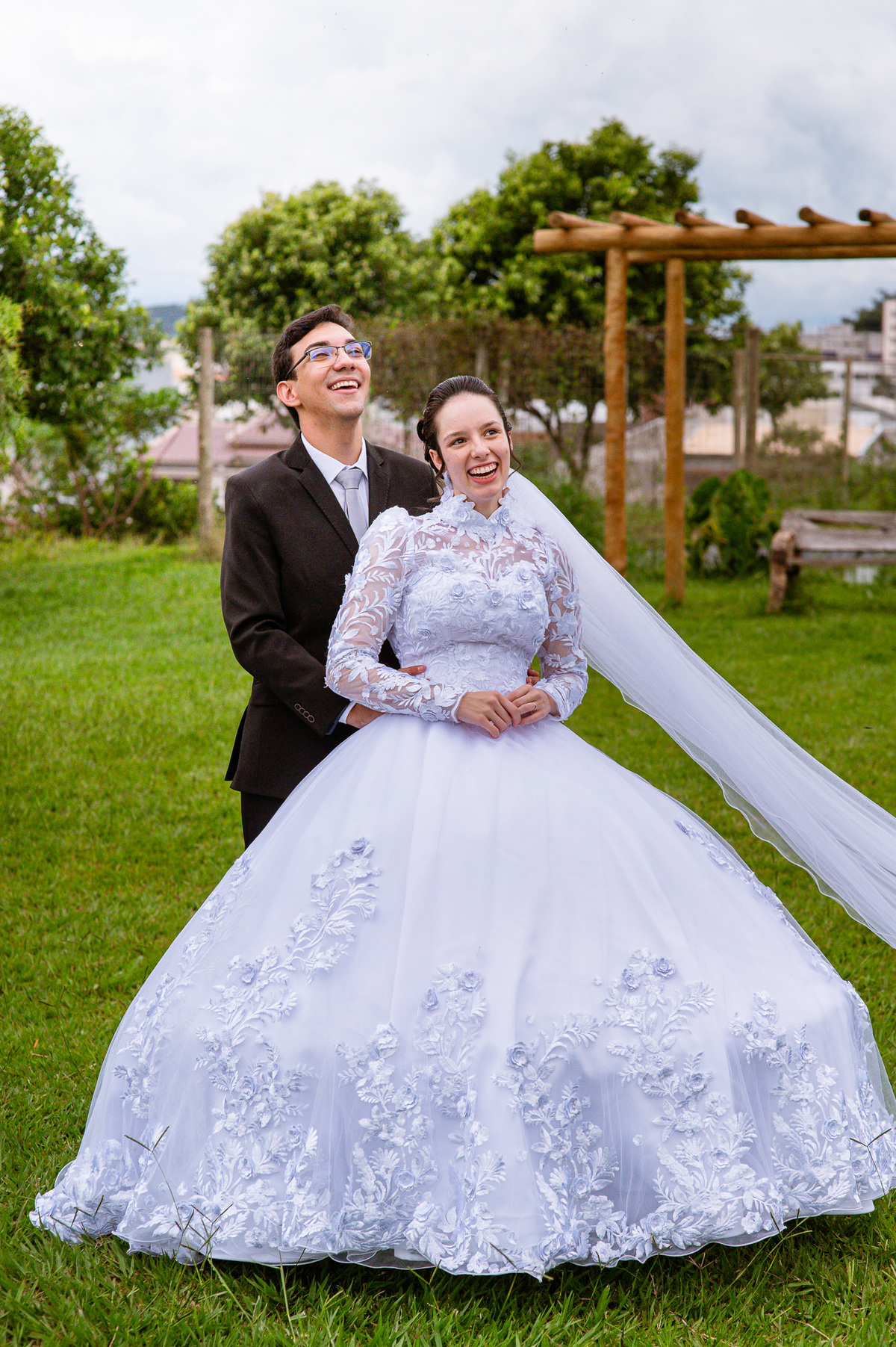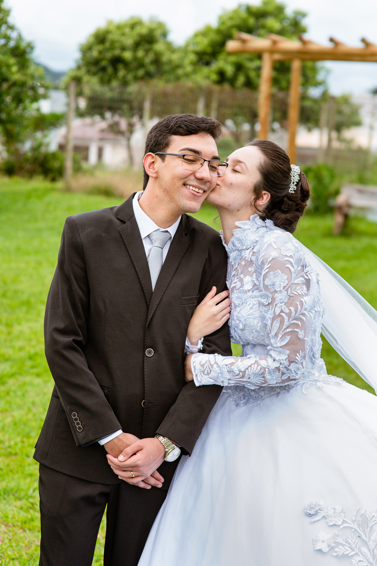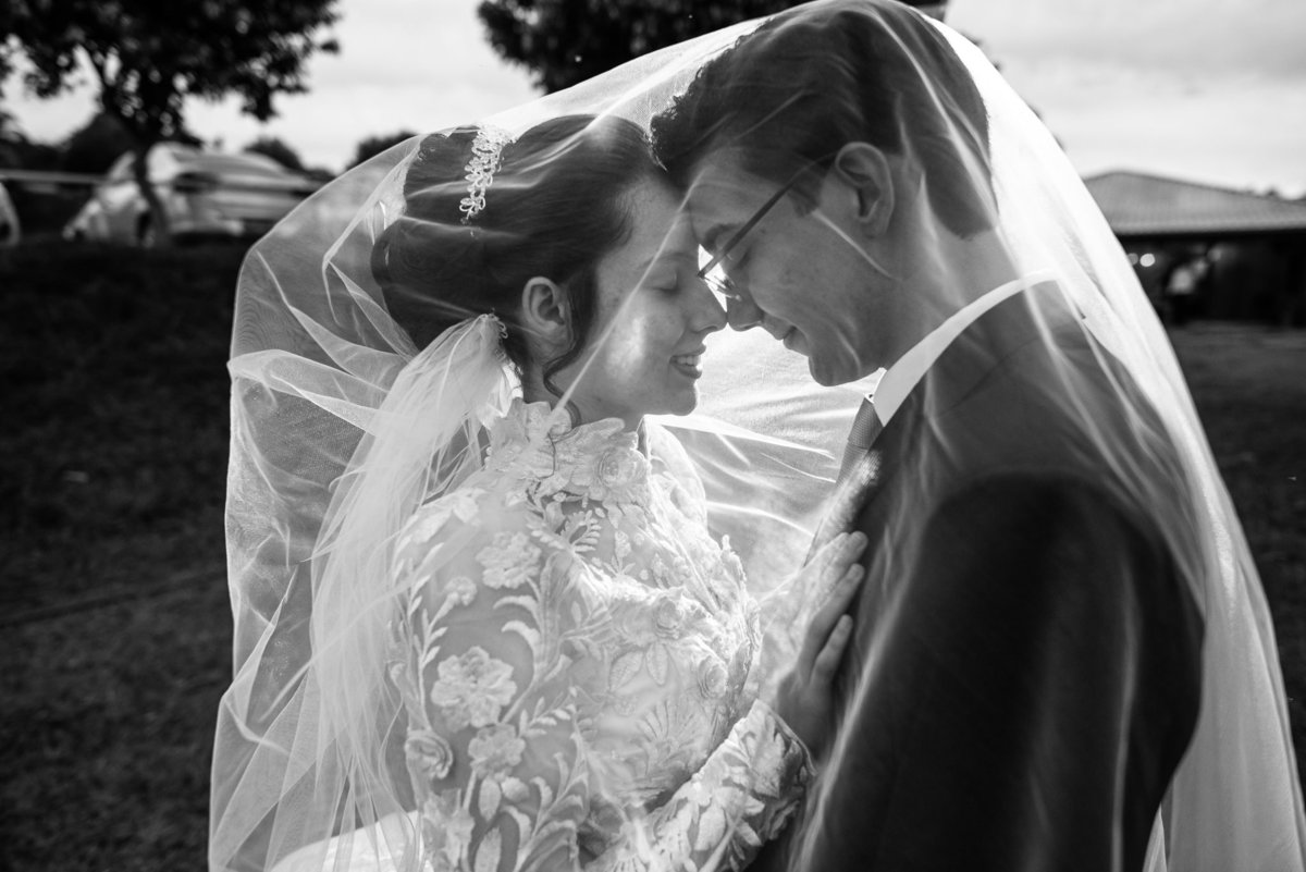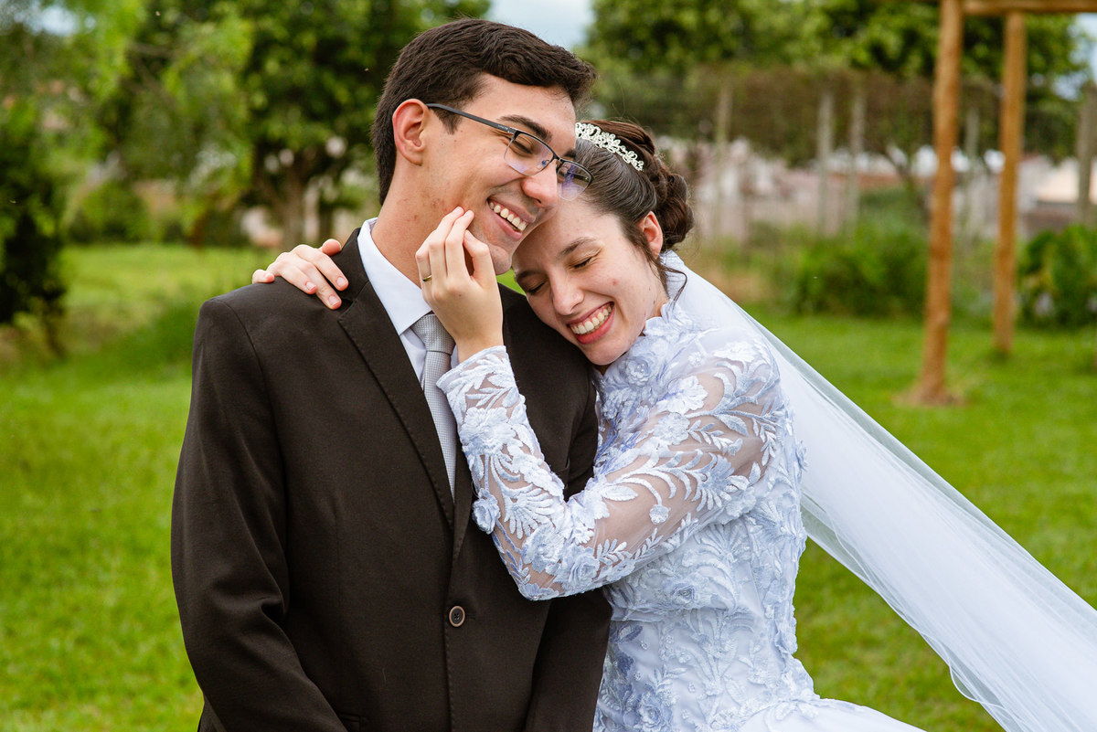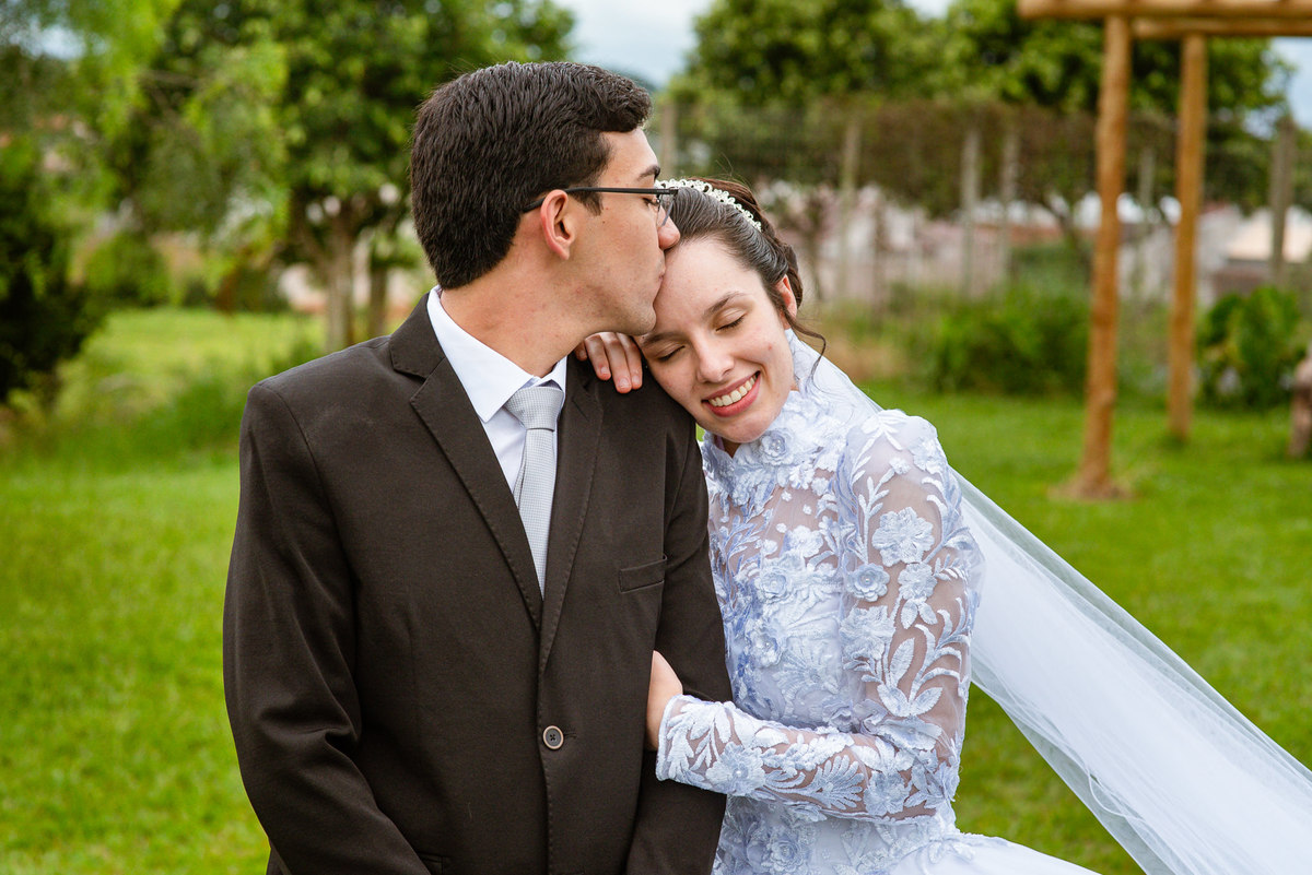 Eles receberam a bênção sobre suas vidas através do ancião, que realizou uma oração maravilhosa, convocando as mais ricas bênçãos de Deus sobre a vida do casal. Esse momento emocionou muita gente. Fizemos também todas as fotografias protocolares e deixamos os recém-casados à vontade para fazer conforme quiseram. Eduarda nos solicitou que durante a sessão de fotos deles, fizéssemos uma foto com os seus pais e avós. Depois, fizemos a sessão somente dos dois.
