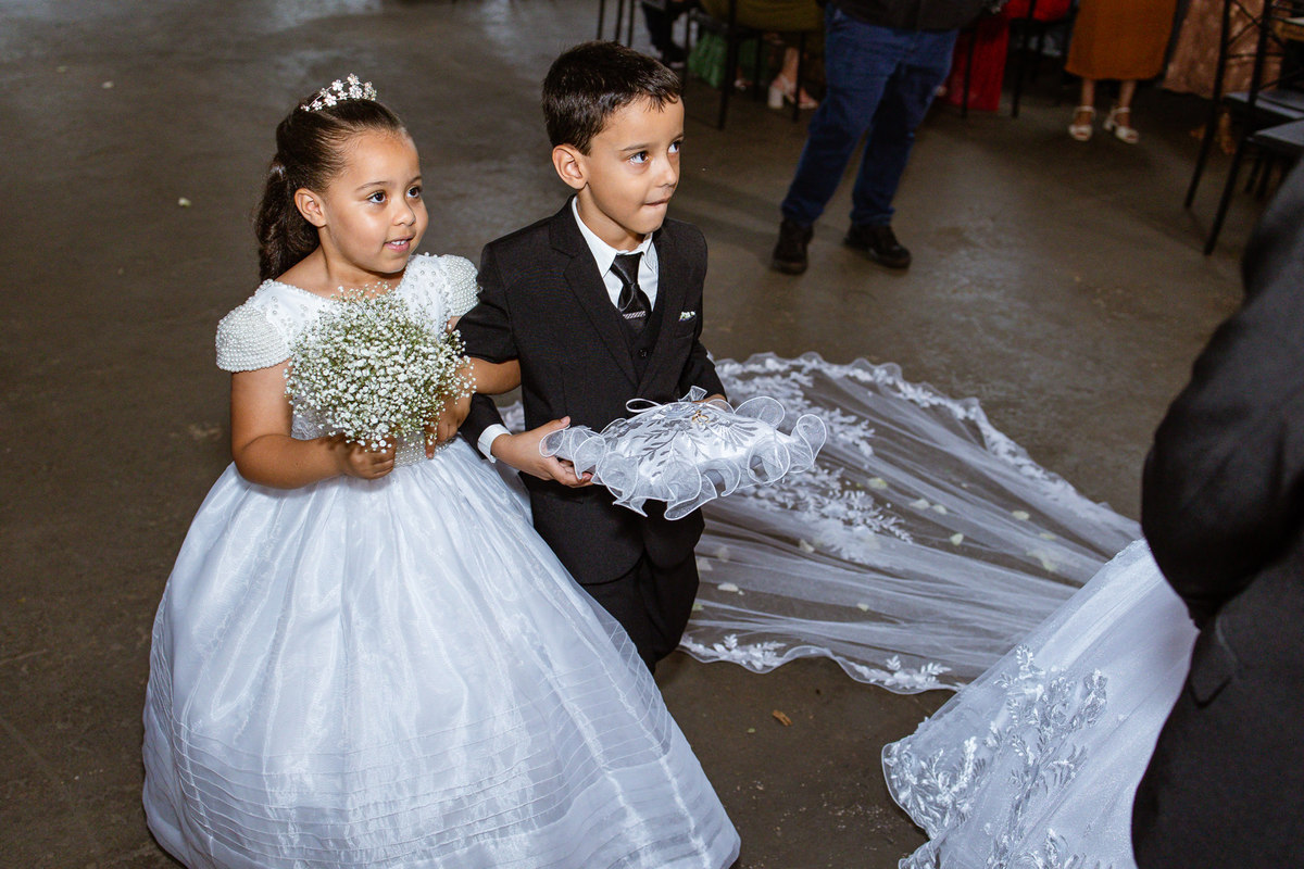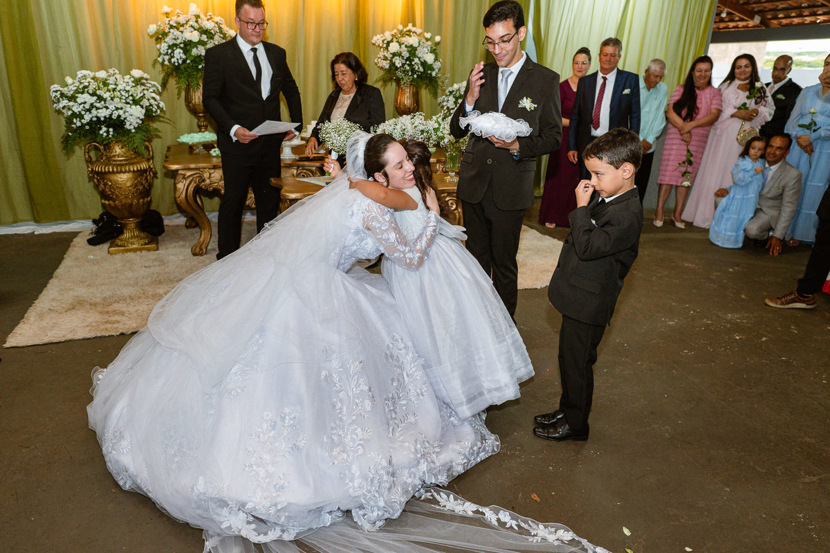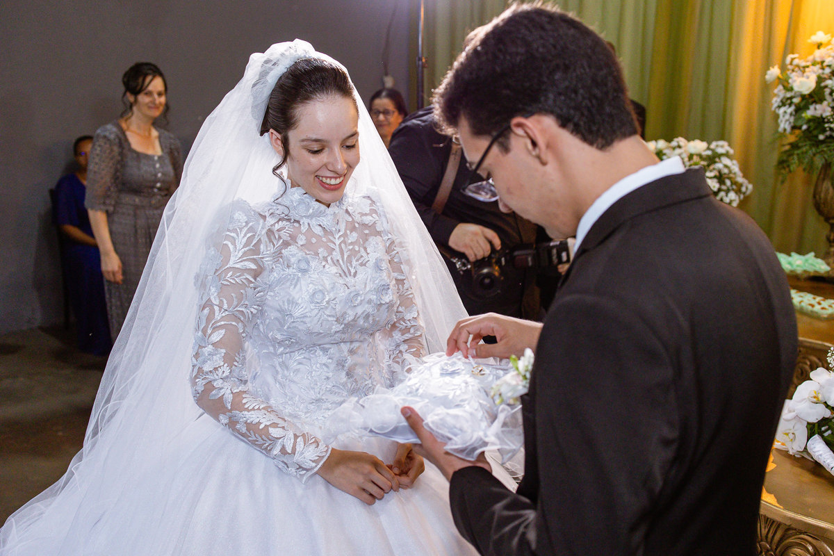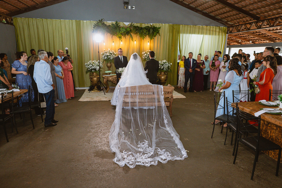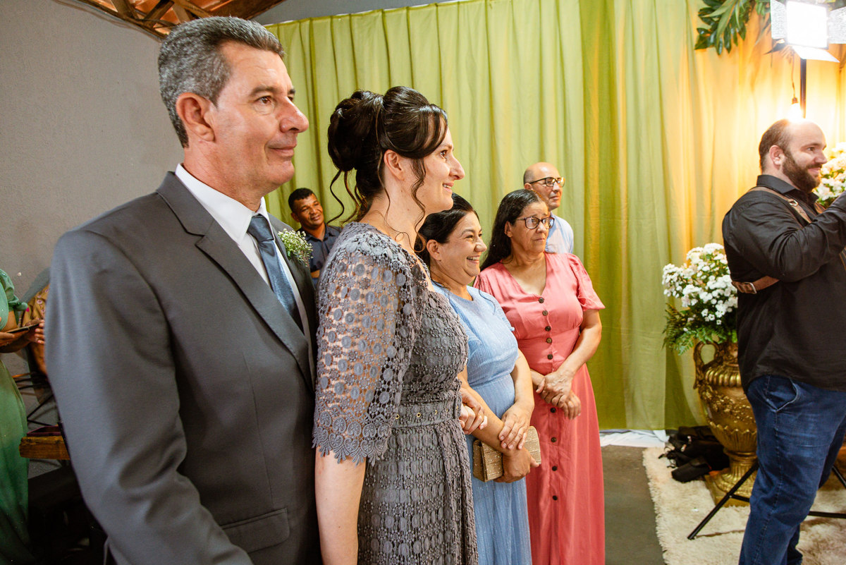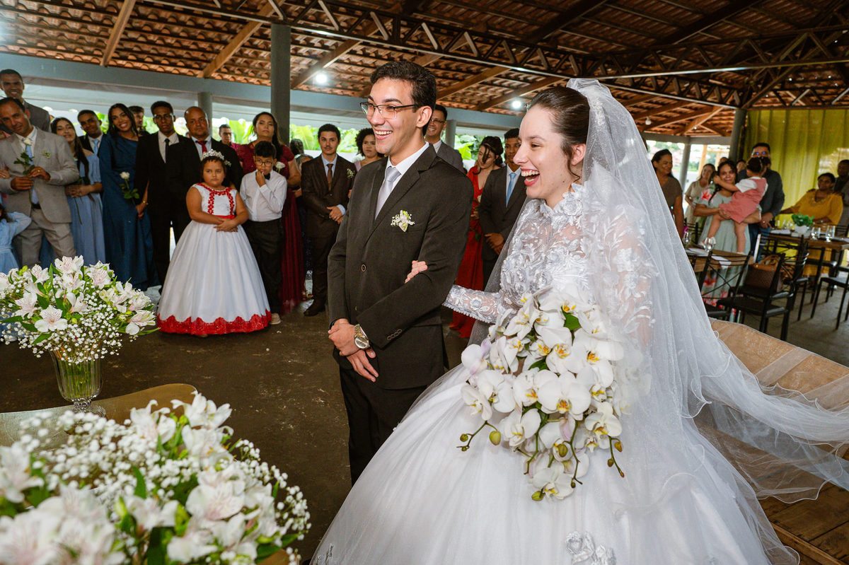 Foi um momento muito forte. Todos acompanhavam com muita felicidade. A juíza os recebeu e iniciou a celebração do casamento. E mesmo não sendo celebrante, ela nos trouxe uma palavra muito cativante. Parabenizou os dois pela atitude e destacou a importância do casamento nos dias atuais. Posteriormente, confirmou os votos de casamento dos dois que prontamente afirmaram em alto e bom som. Depois, as alianças foram trazidas por um casal de pajens que trouxe mais leveza ainda para esse momento. Adriel e Eduarda trocaram as alianças e prometeram amor e fidelidade um ao outro para sempre, fechando aquele instante com um beijo da aliança um do outro. Por fim, eles foram declarados casados e prosseguimos com a assinatura dos documentos.