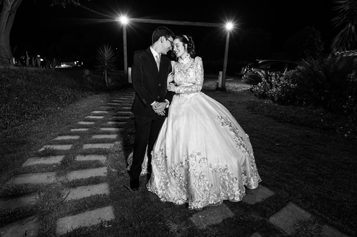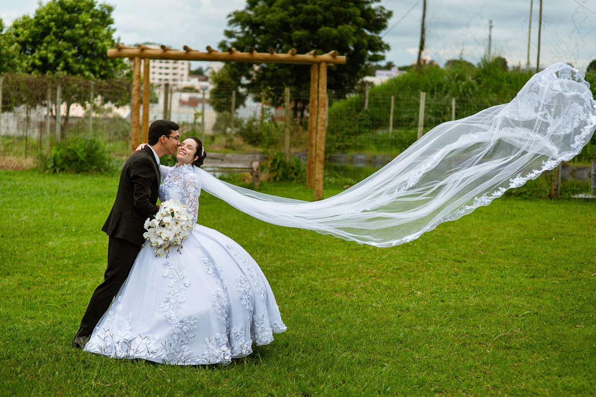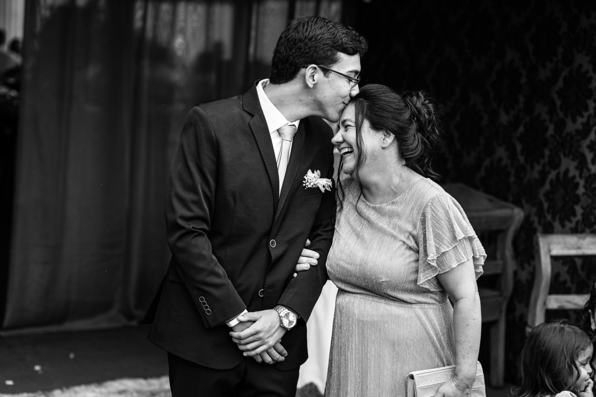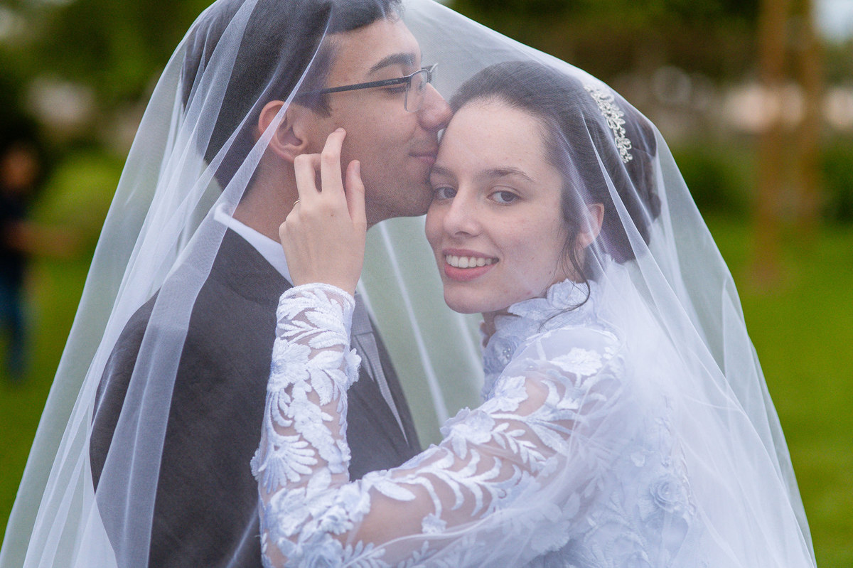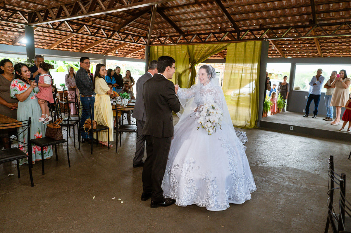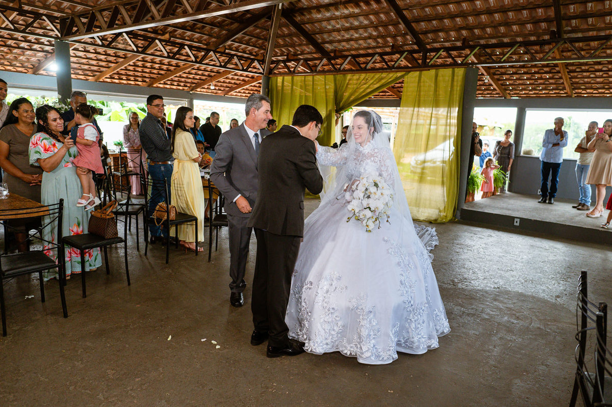 Até esse momento, o casal não havia se beijado, desde que se conheceram até o momento do casamento. Esse era um voto dos dois até aquele momento. Depois de fazermos todas as nossas fotos, bem no finalzinho do casamento, Eduarda me pediu que registrasse esse feito. Eles decidiram que ali seria realizado o primeiro beijo do casal. Mesmo acanhados com a presença dos pais na festa, olhando de longe, eles finalmente deram seu primeiro beijo depois de tantos anos de espera e comprometimento. Cada casal tem suas particularidade e nos dias atuais um ato como esse é quase inacreditável, mas pela fé e compromisso dos dois, eles conseguiram realizar e só se beijaram no final da festa, conforme seus corações quiseram. Assim, nós encerramos nossa participação no casamento dos dois e nos despedimos com a certeza de ter realizado um trabalho muito dedicado e com o coração em cada fotografia registrada.