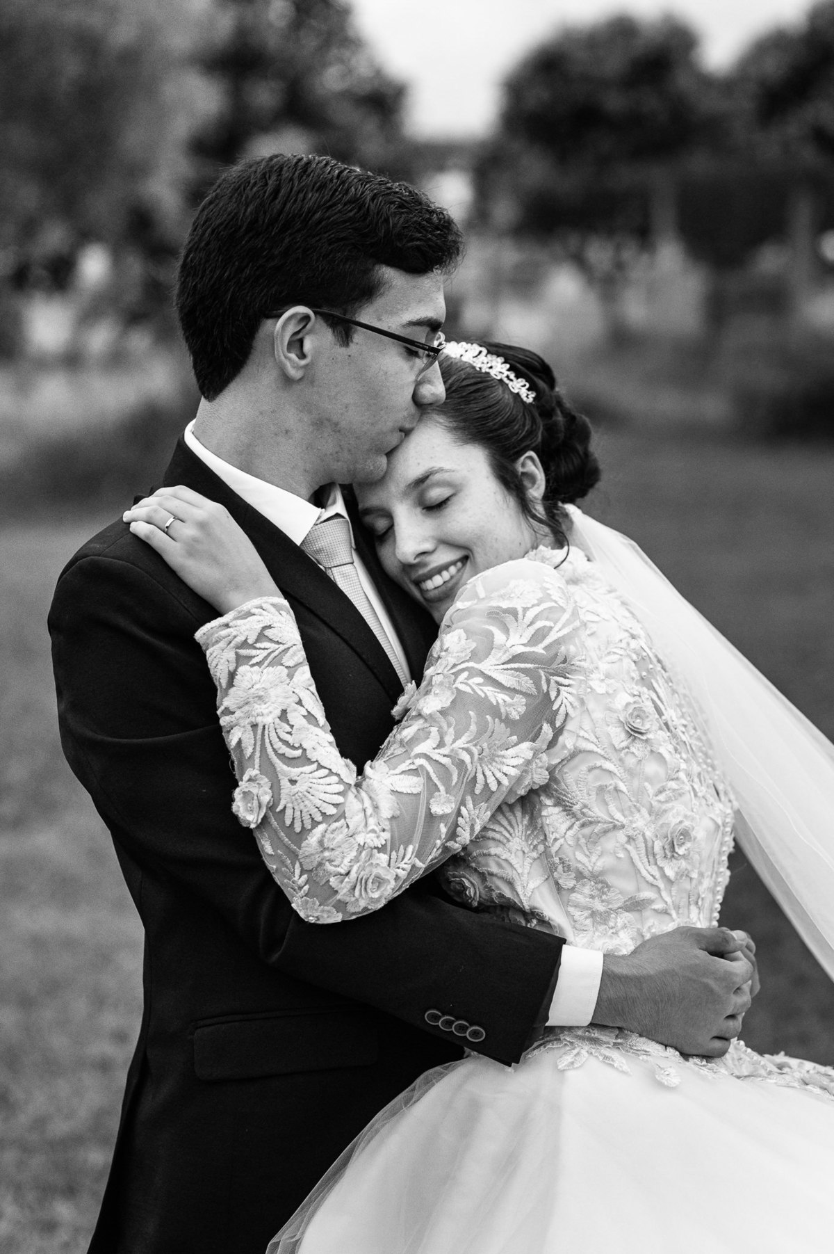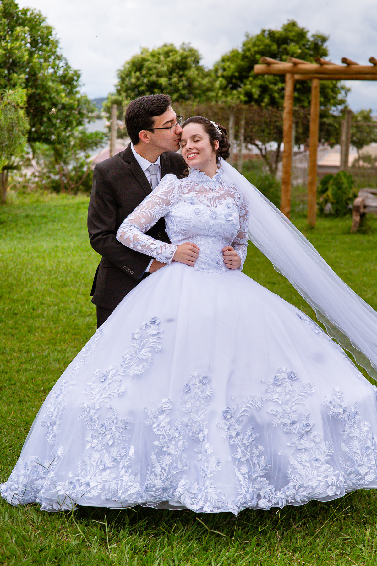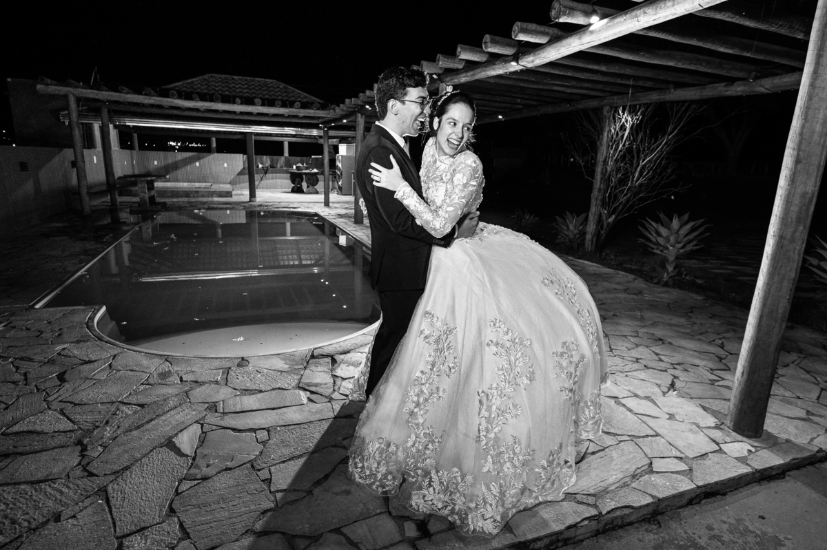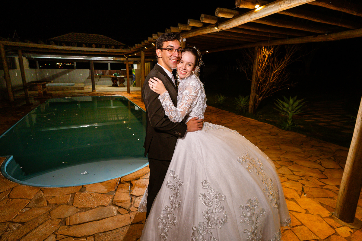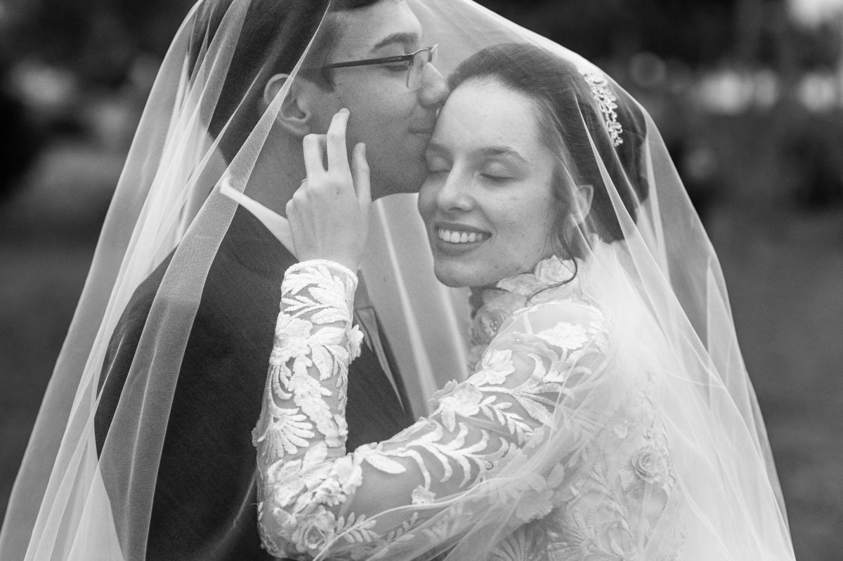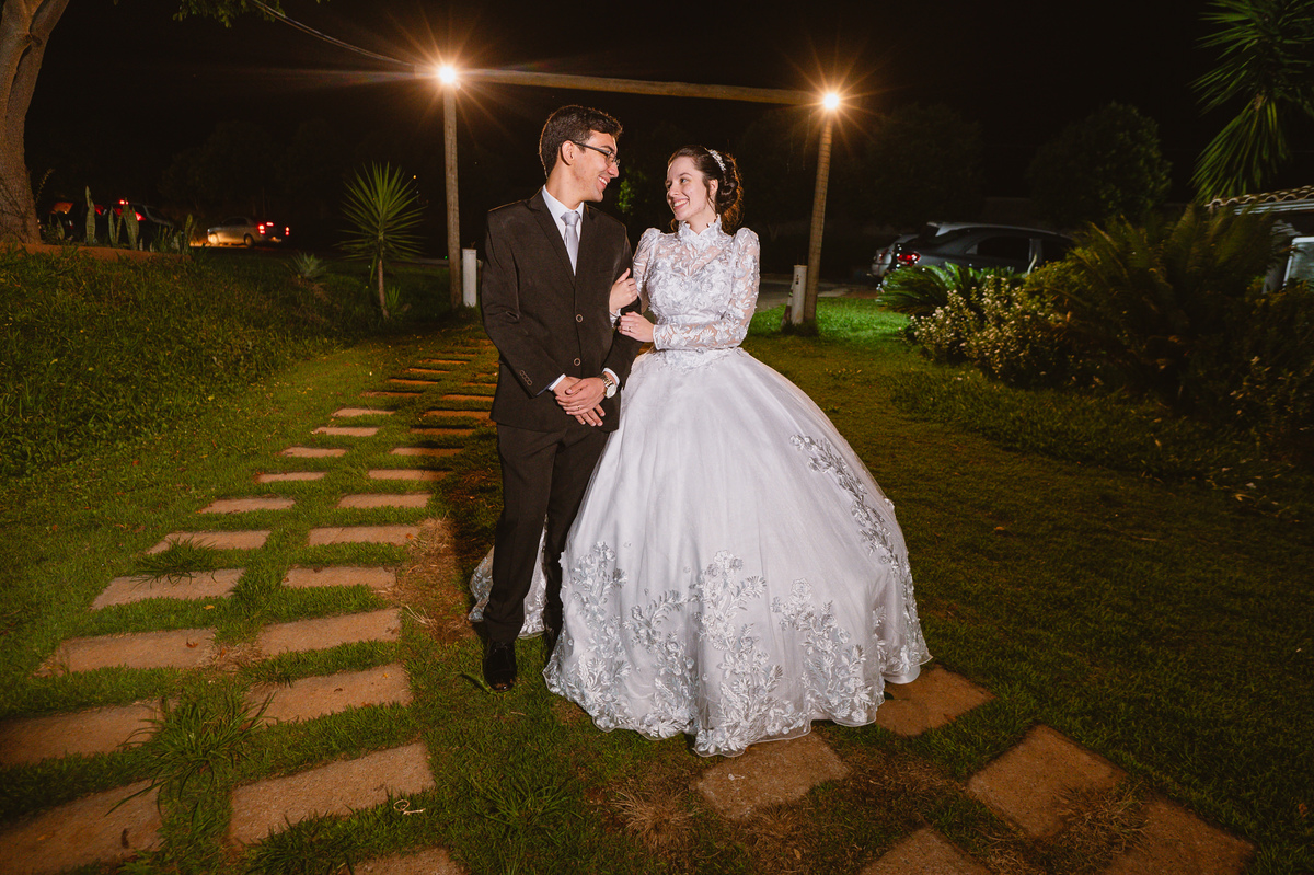 Até esse momento, o casal não havia se beijado, desde que se conheceram até o momento do casamento. Esse era um voto dos dois até aquele momento. Depois de fazermos todas as nossas fotos, bem no finalzinho do casamento, Eduarda me pediu que registrasse esse feito. Eles decidiram que ali seria realizado o primeiro beijo do casal. Mesmo acanhados com a presença dos pais na festa, olhando de longe, eles finalmente deram seu primeiro beijo depois de tantos anos de espera e comprometimento. Cada casal tem suas particularidade e nos dias atuais um ato como esse é quase inacreditável, mas pela fé e compromisso dos dois, eles conseguiram realizar e só se beijaram no final da festa, conforme seus corações quiseram. Assim, nós encerramos nossa participação no casamento dos dois e nos despedimos com a certeza de ter realizado um trabalho muito dedicado e com o coração em cada fotografia registrada.