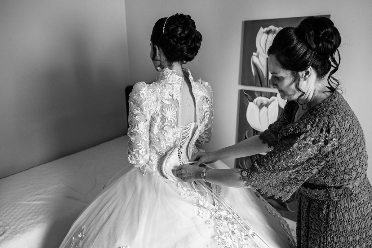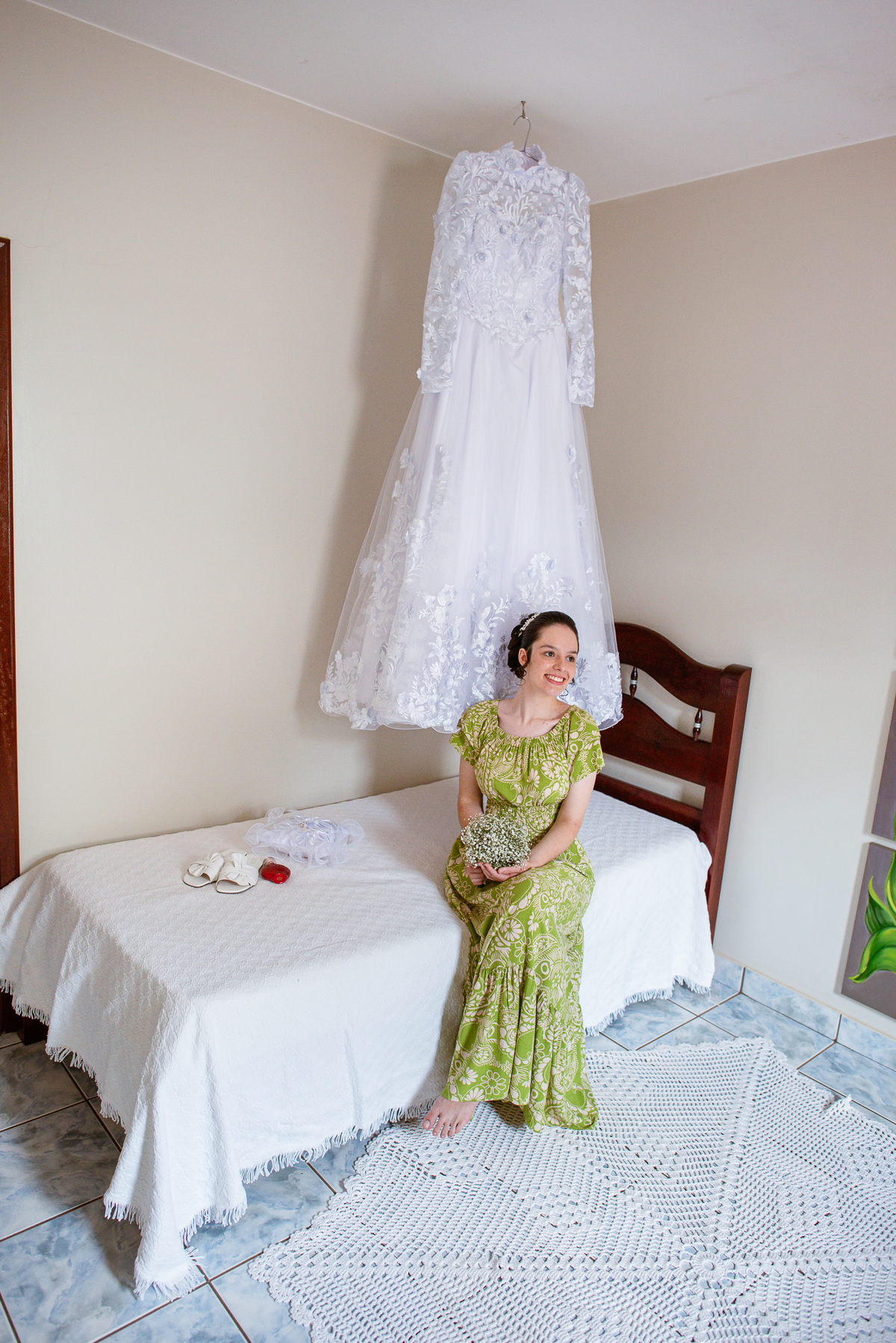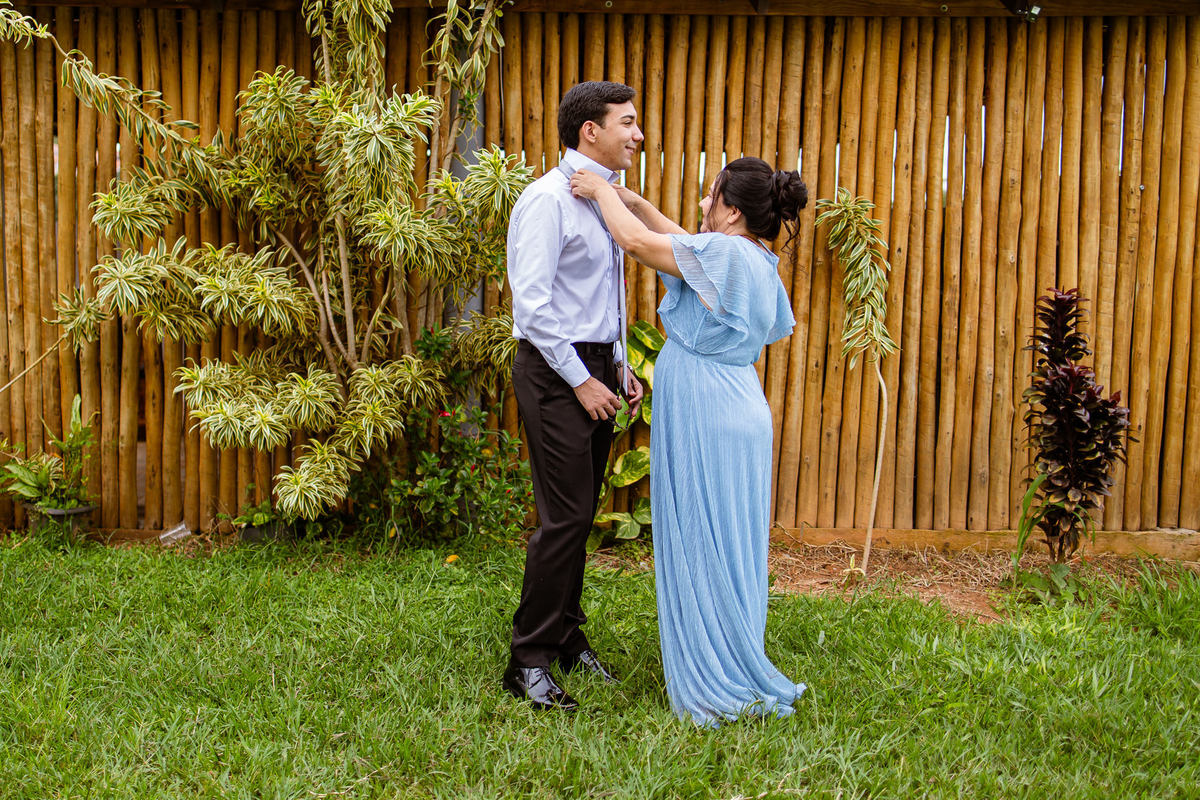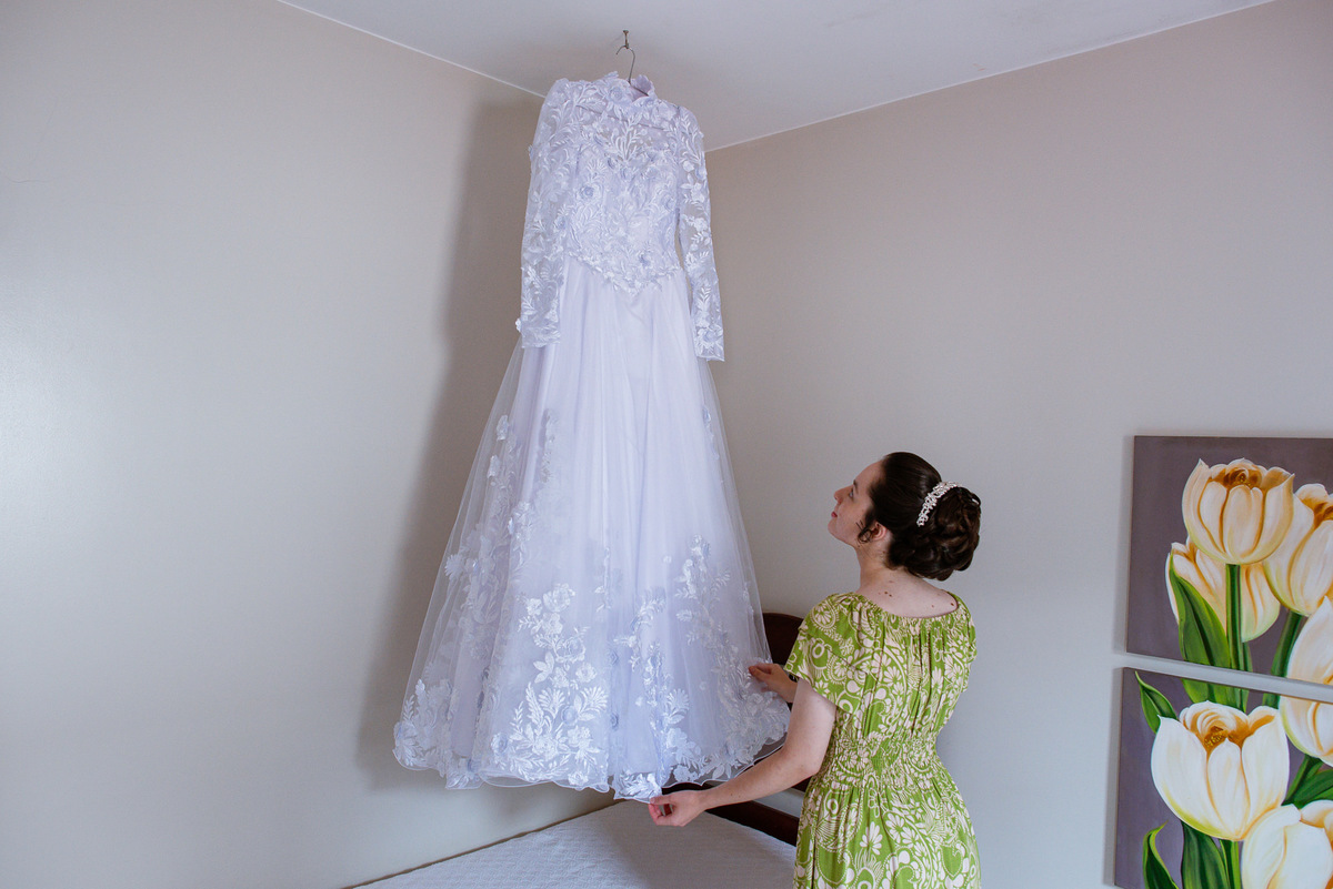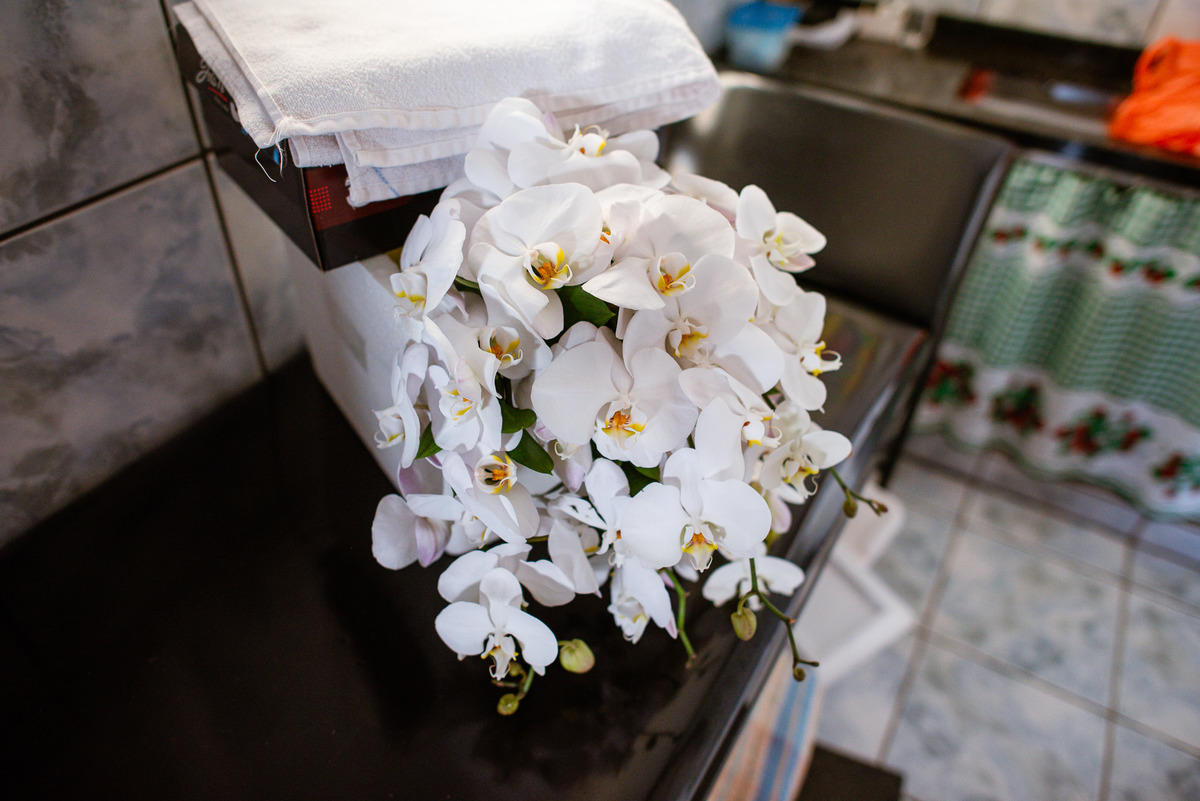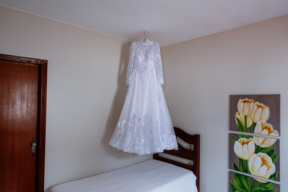 Me lembro de que nesse mesmo dia, Eduarda entrou em contato comigo me perguntando se haveria problemas em ela realizar seu dia de noiva em casa. Prontamente, disse à ela que não teria problema algum e que eu sempre indico para que as noivas façam seu dia de acordo com seu sonho, onde esse lugar for. Assim, alteramos o roteiro e partimos para a casa dela. O dia estava radiante e ao chegar lá encontramos uma noivinha muito feliz e animada com seu dia. Ela havia preparado todos os detalhes que gostaria que fotografássemos e também com as pessoas especiais que ela gostaria que participassem. Então, mais que depressa iniciamos o making of por lá. Ao adentrar pela casa, nos deparamos com um órgão digital lindíssimo bem na sala. Perguntei para ela o que seria aquele instrumento e quem sabia tocar. Nessa hora os olhinhos dela mais que brilharam. Ela nos contou que ensina os membros da Igreja que ela faz parte a tocarem e que aprendeu tudo desde muito pequena, ensinamentos vindos de sua mãe.